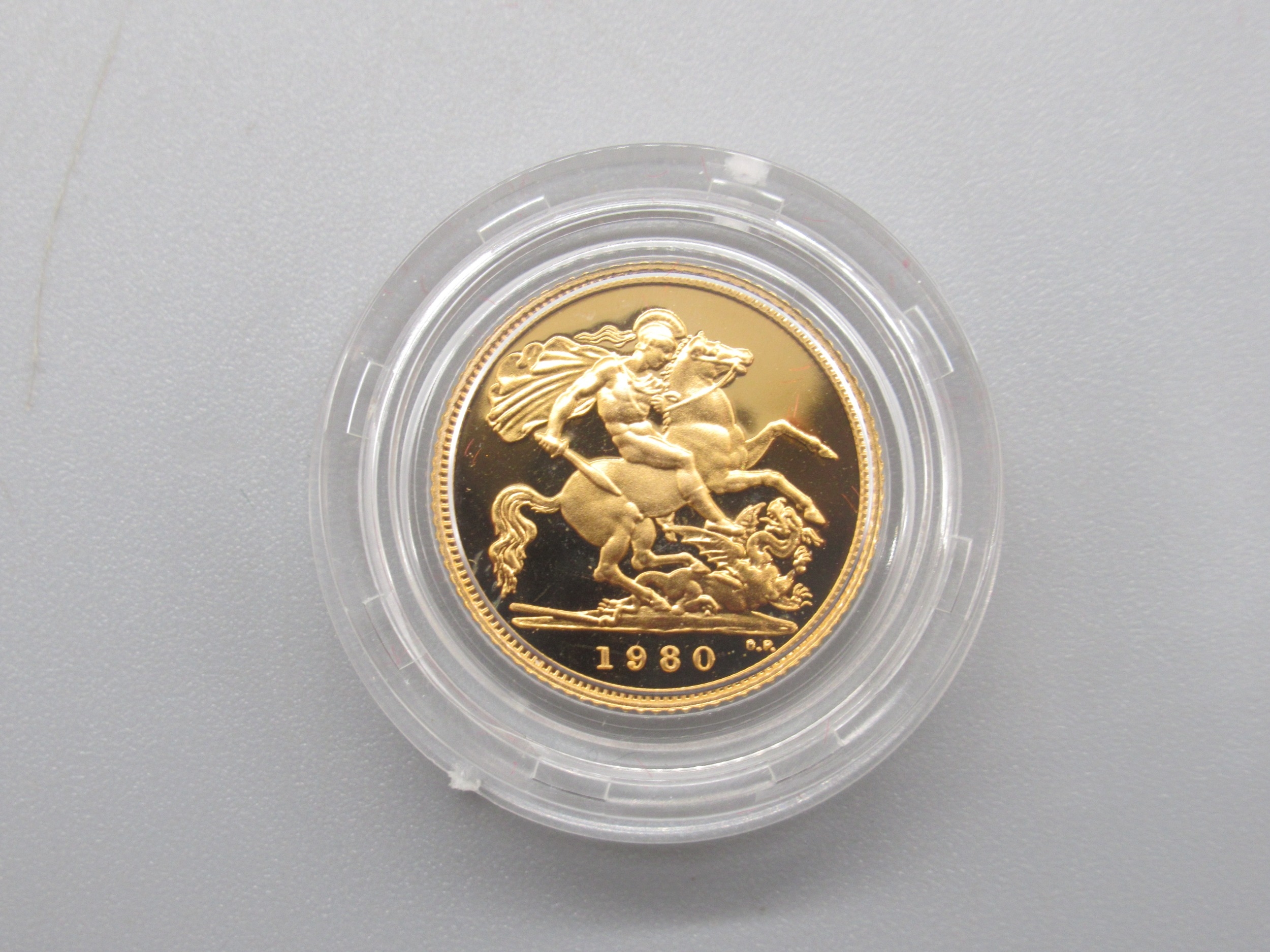 Royal Mint - Queen Elizabeth II 1980 Proof Half-Sovereign encapsulated in case with COA