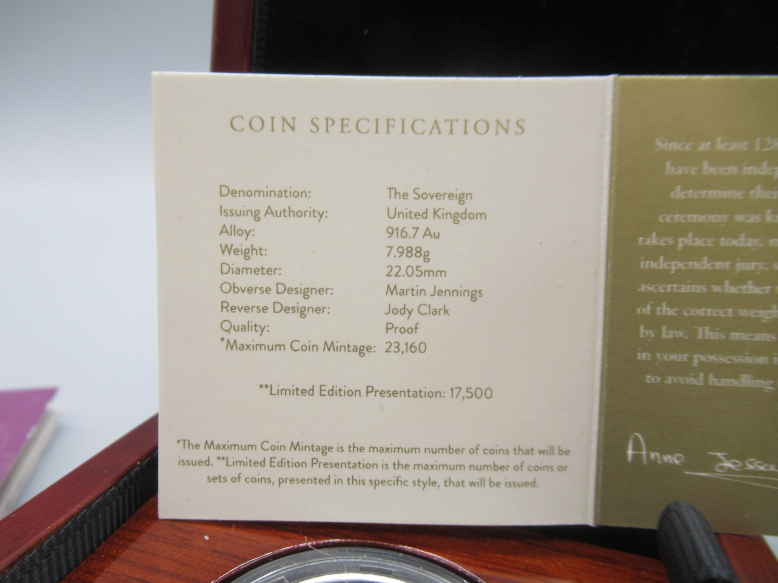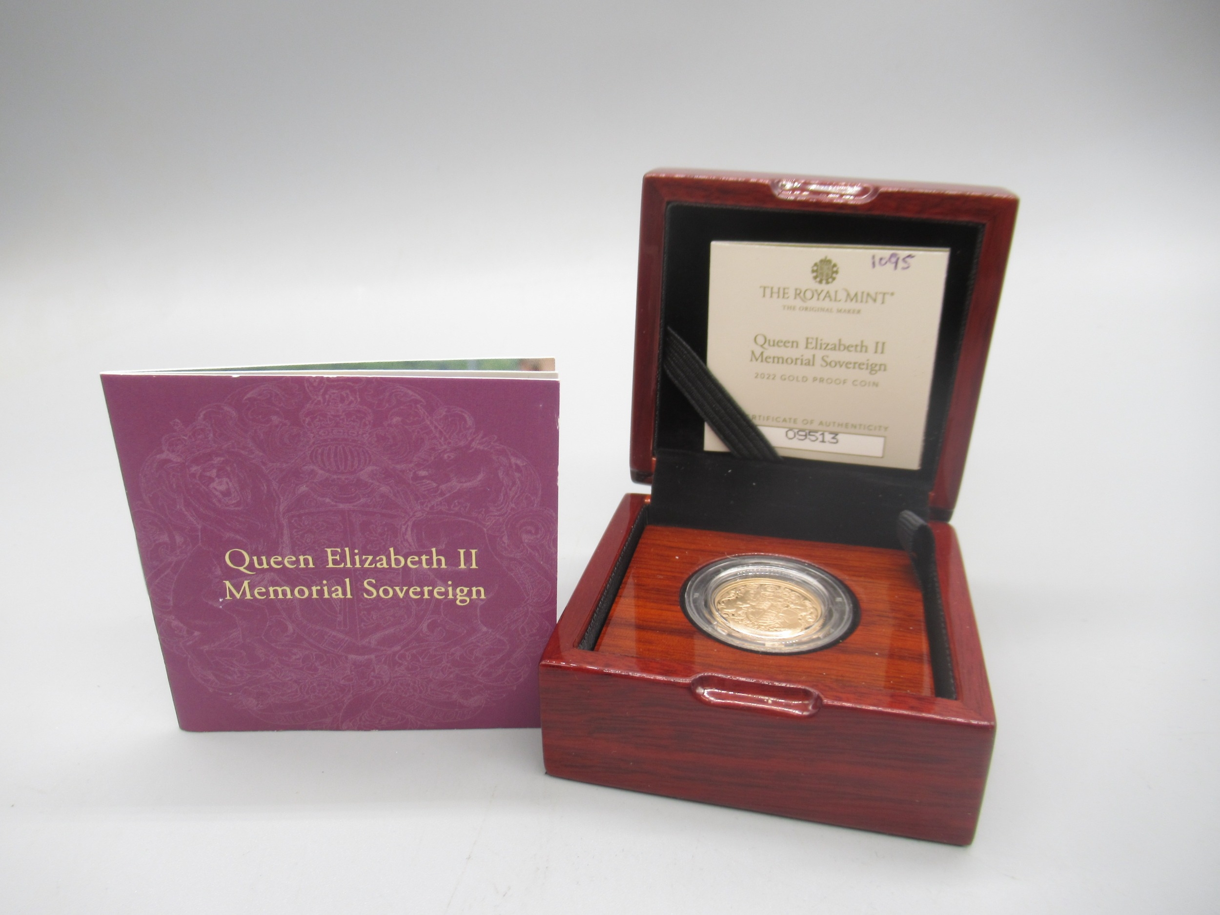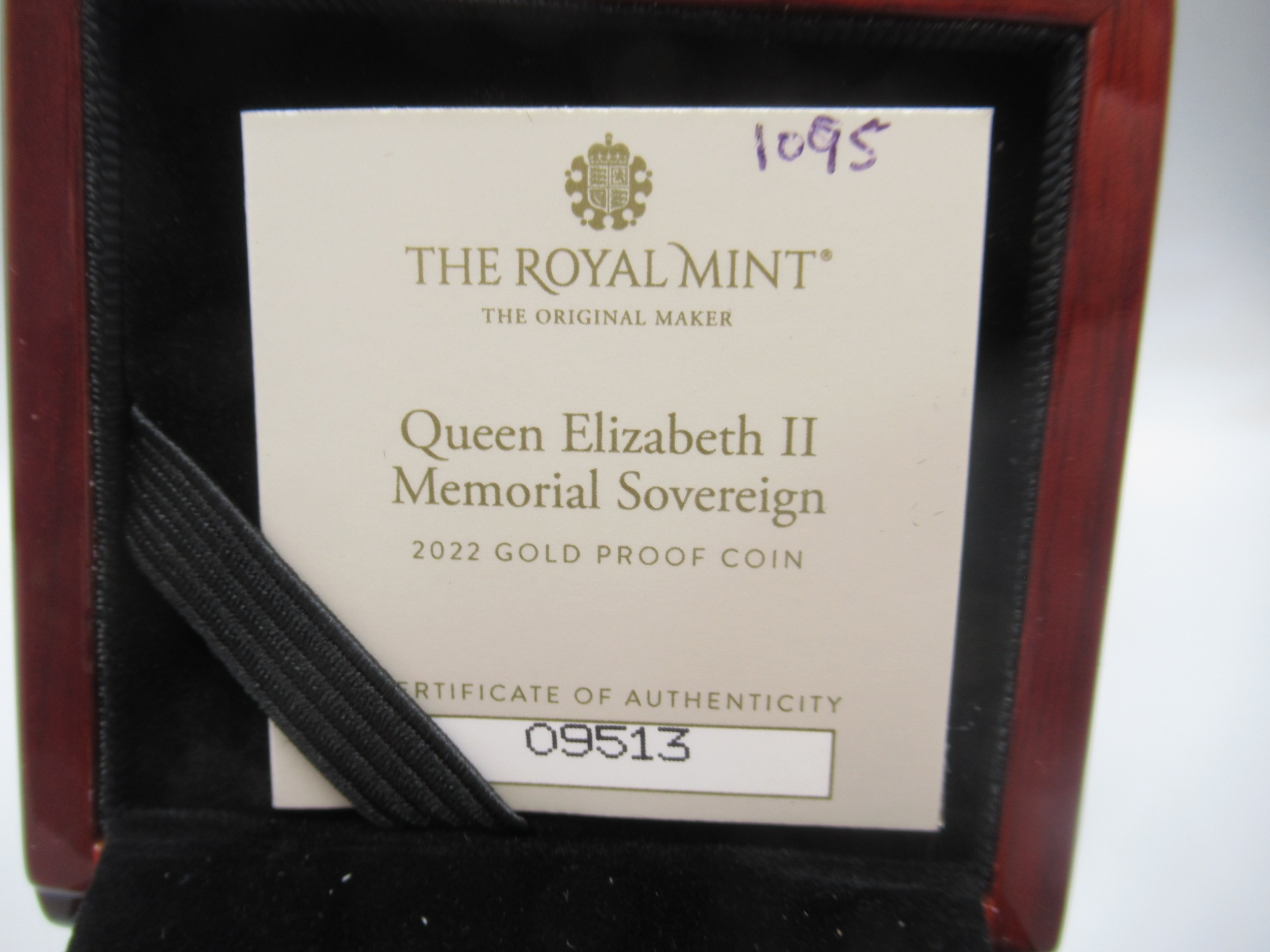 The Royal Mint - Queen Elizabeth II Memorial Sovereign 2022 Gold Proof Coin encapsulated in case with COA No.09513/17500