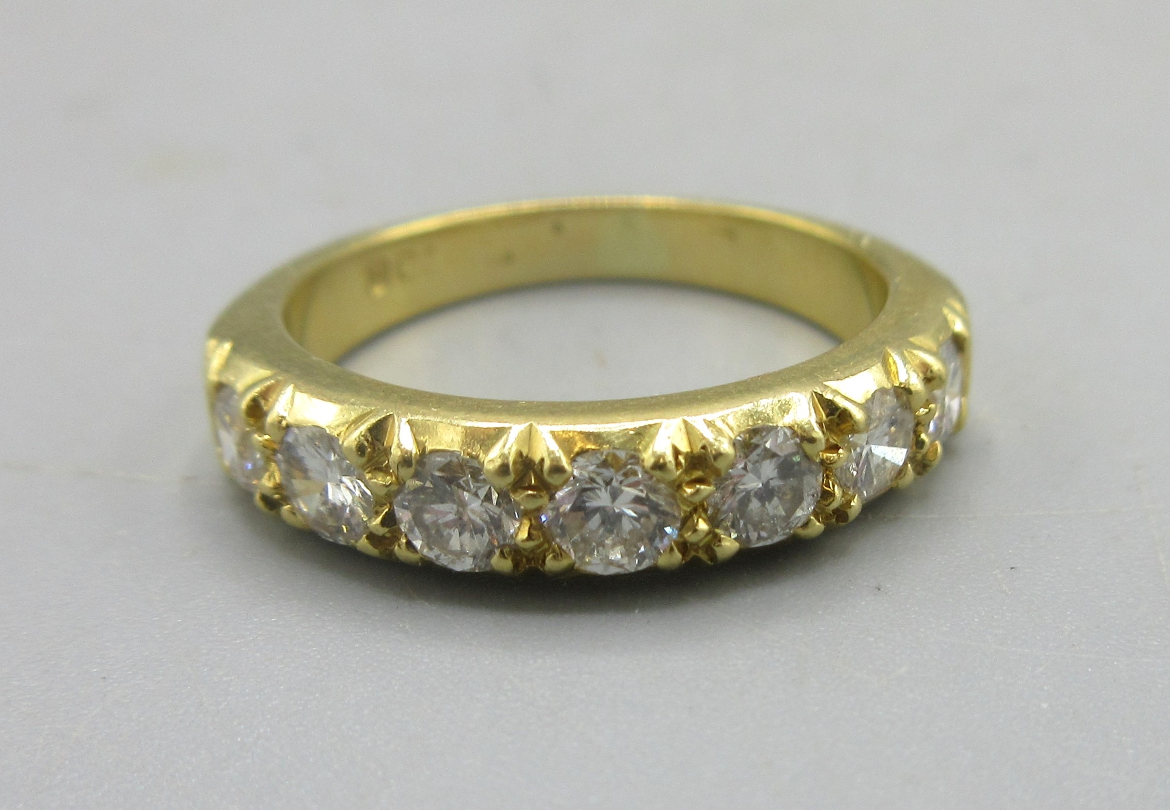 Yellow gold half eternity ring set with seven brilliant cut diamonds, approx. 1.5cts, hallmarked faded, 4.77g