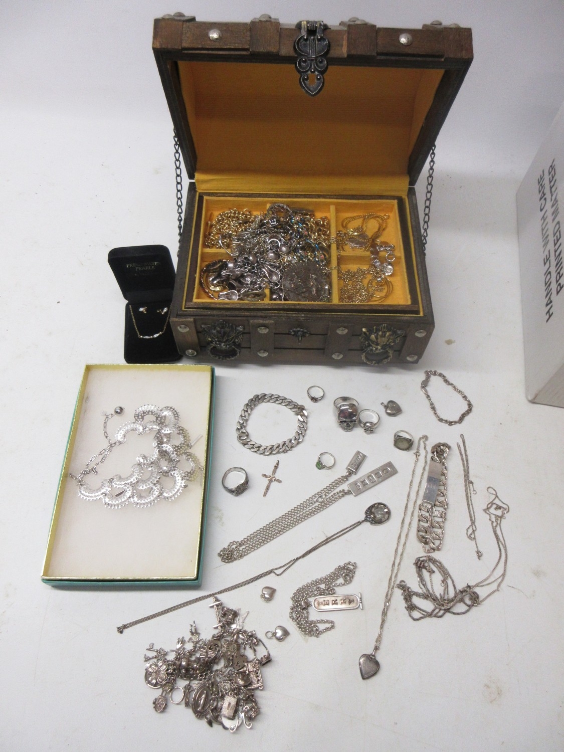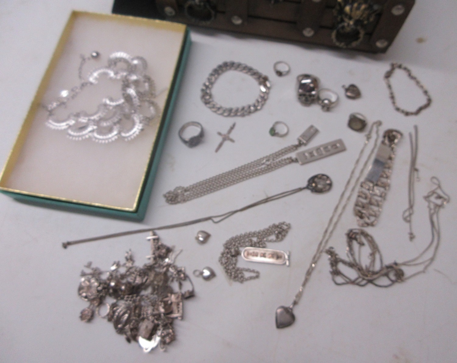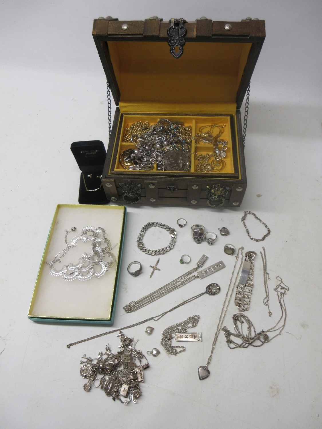 Collection of Sterling silver jewellery including rings, bracelets etc. approx 9.47ozt, and a quantity of unmarked modern costume jewellery