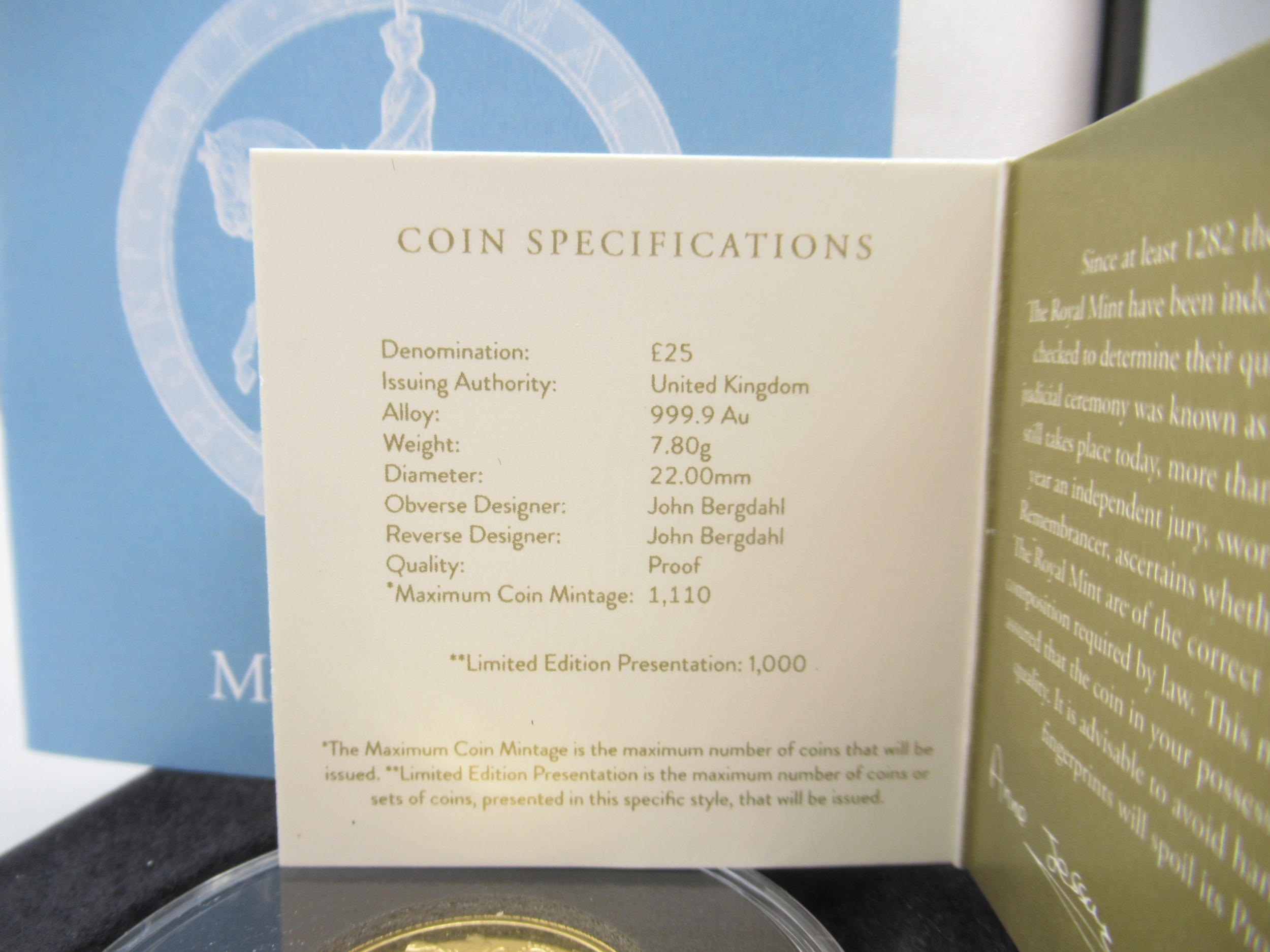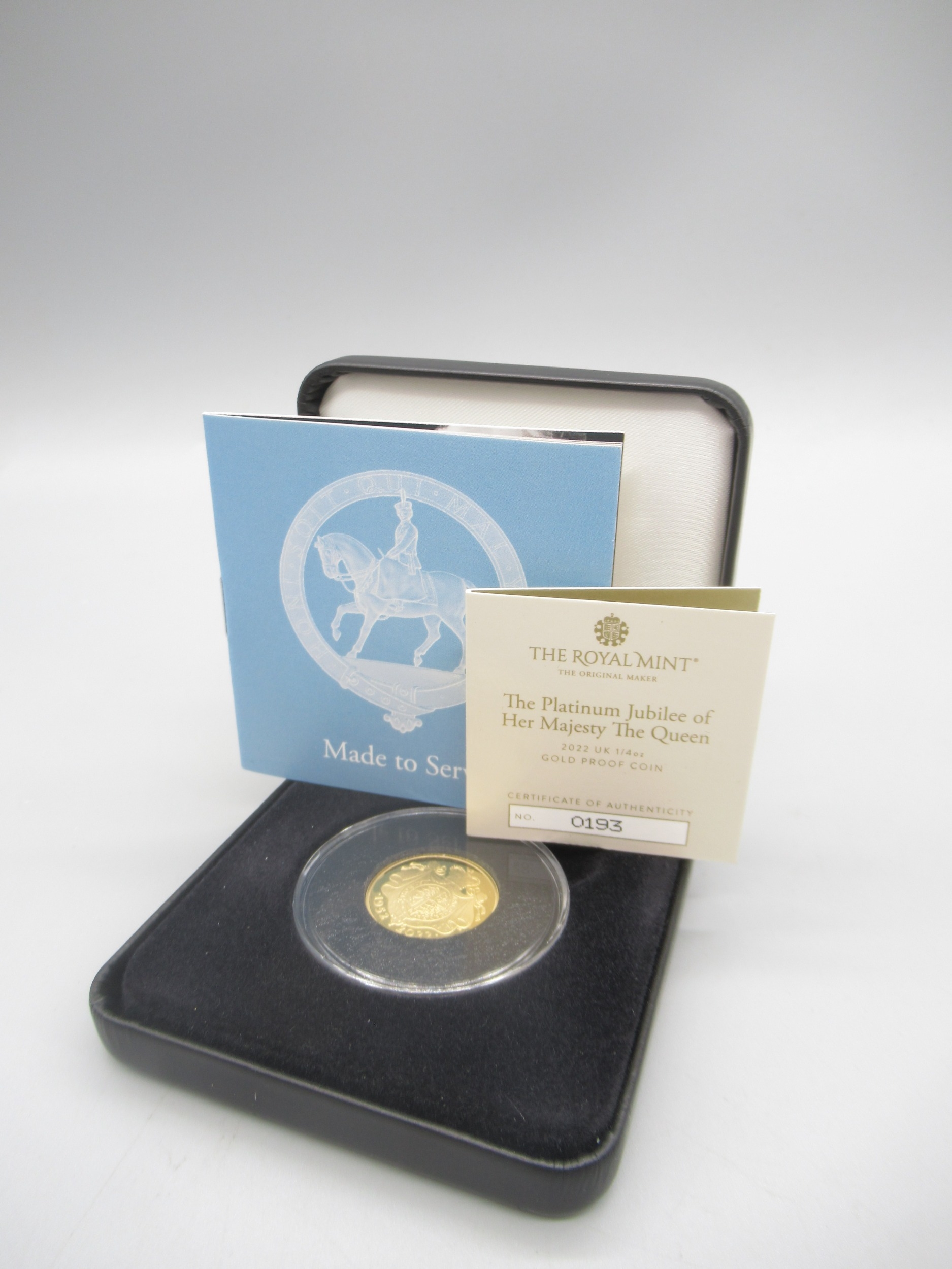 The Royal Mint - The Platinum Jubilee of Her Majesty The Queen 2022 UK 1/4oz Gold Proof coin encapsulated in case with COA No.0193/1000