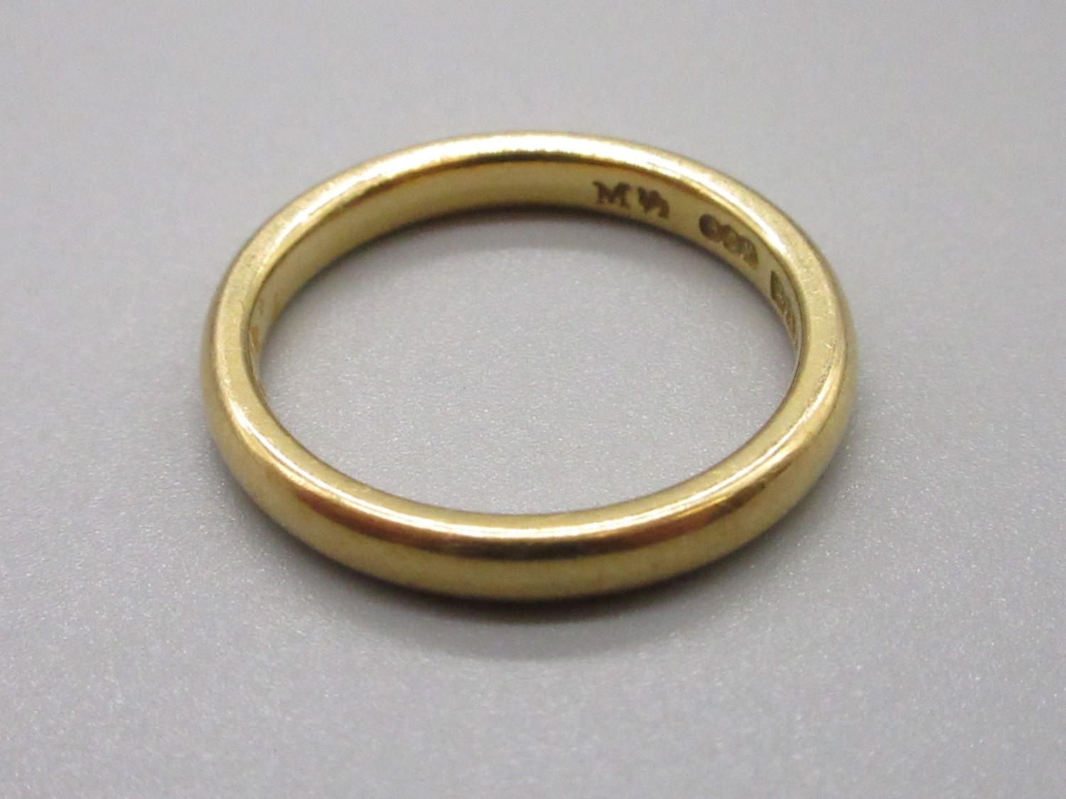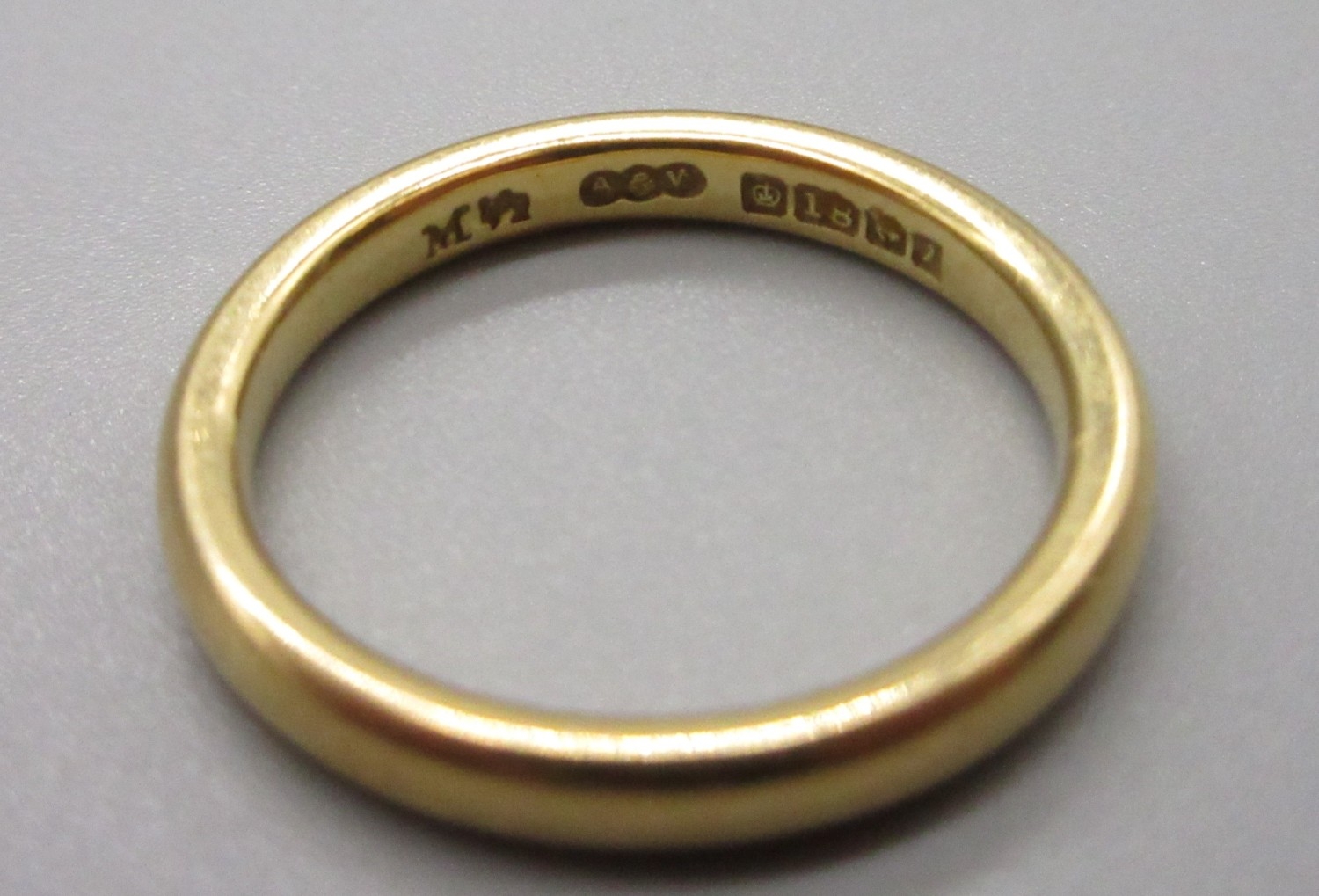 18ct hallmarked wedding band by A & W Birmingham 1958-59, size M 1/2 (4.2g)