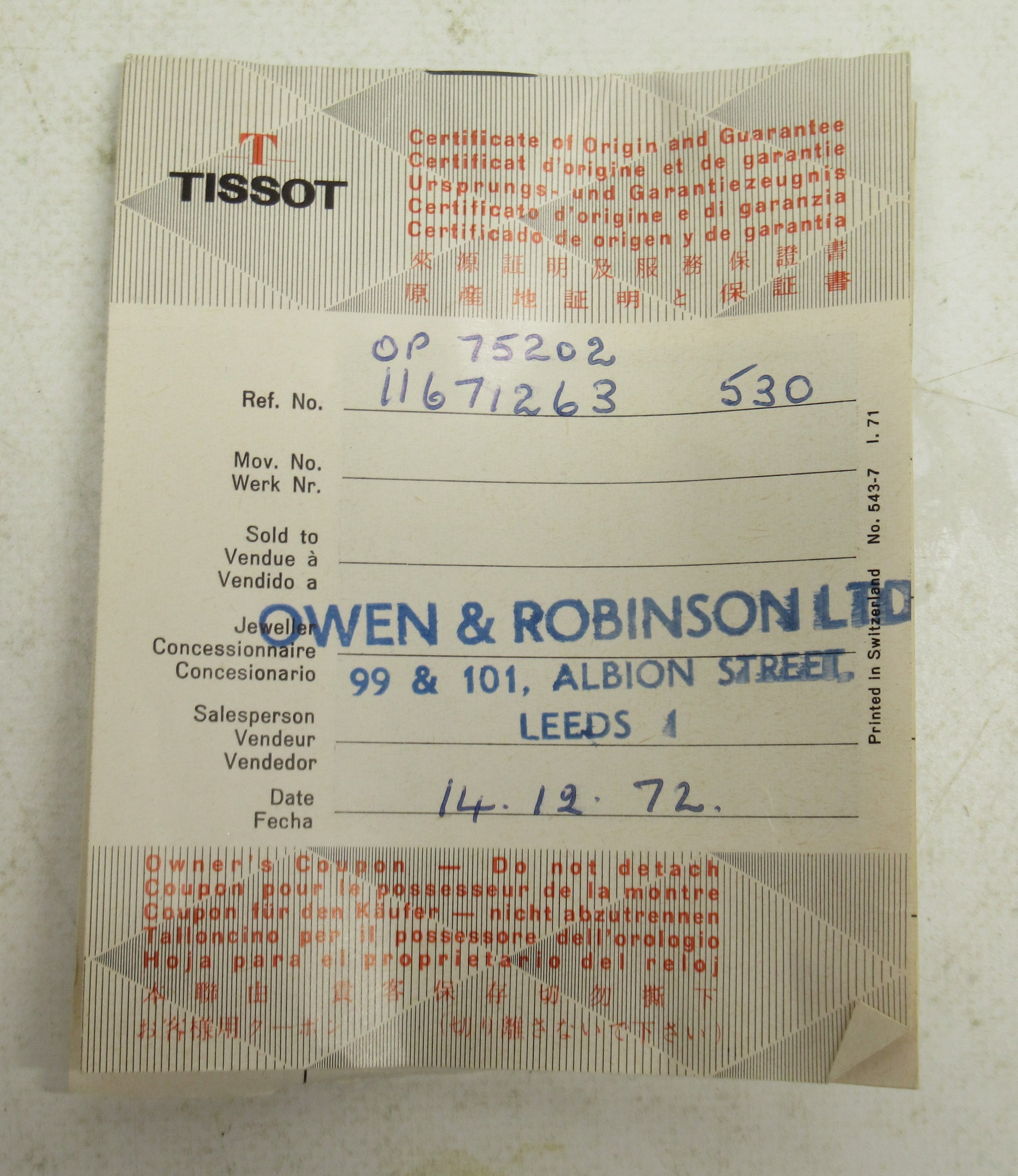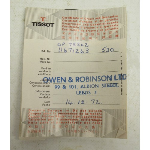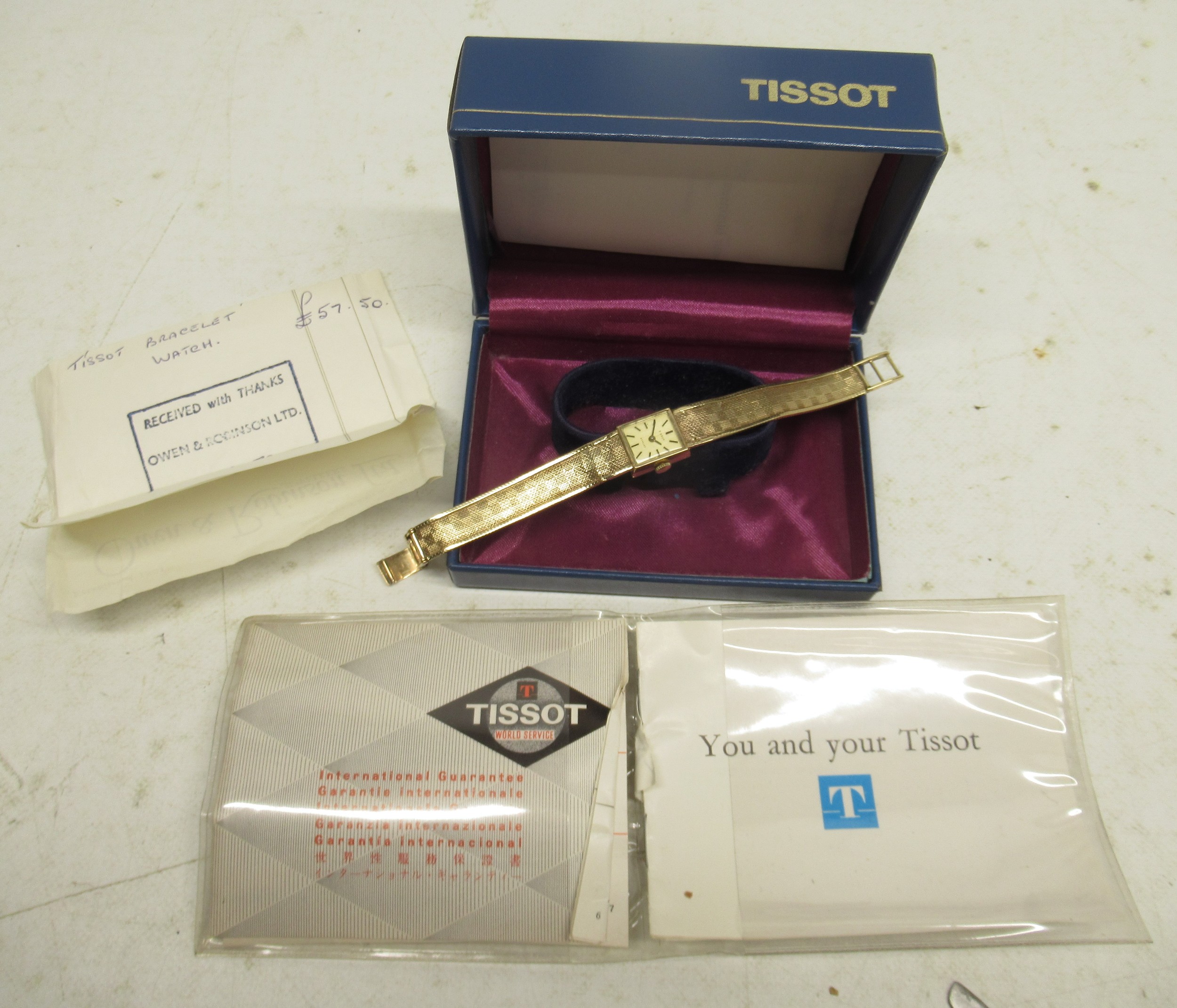 Watch running, bracelet twisted and repaired, other age related wear, with box and paperwork.