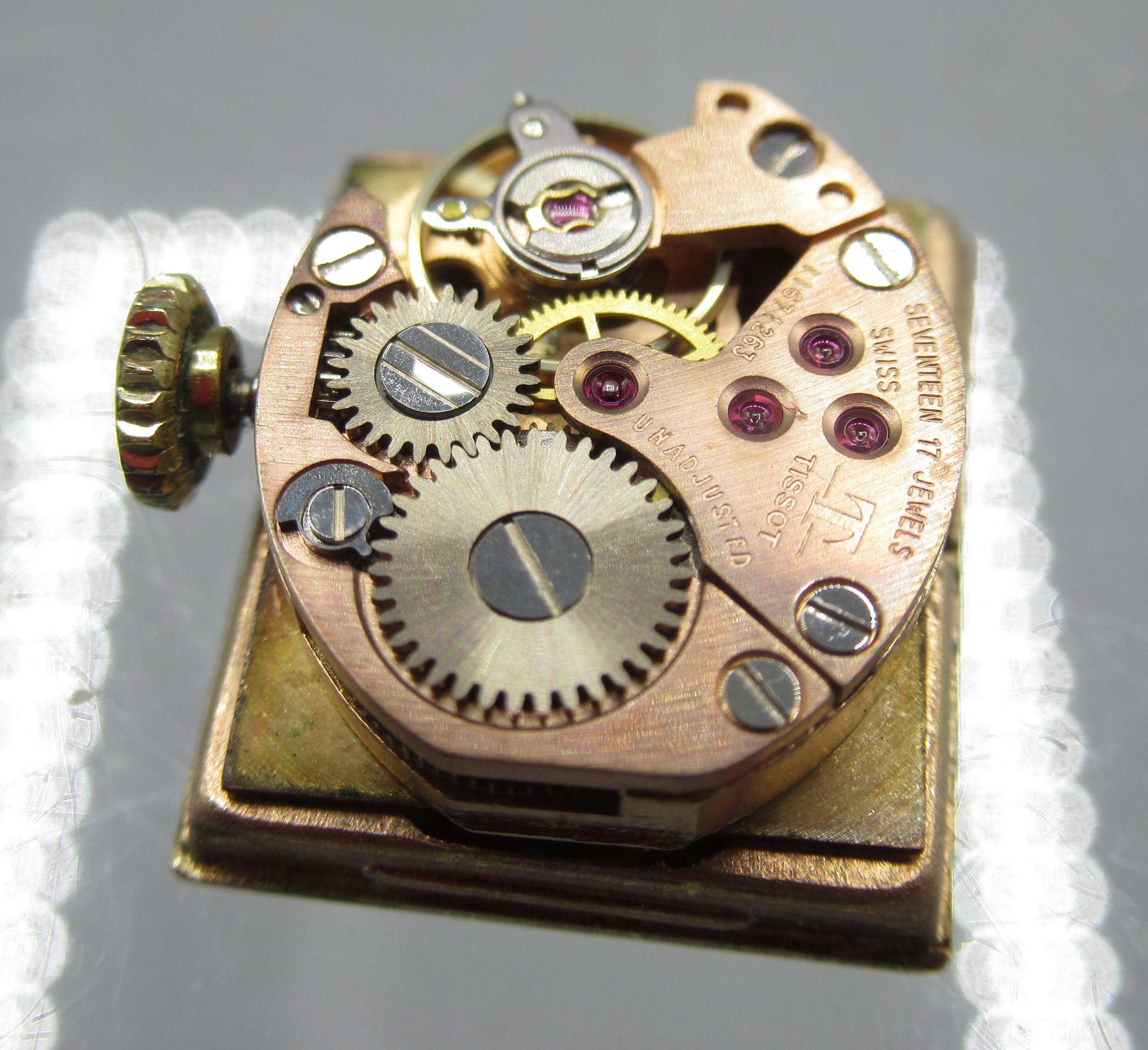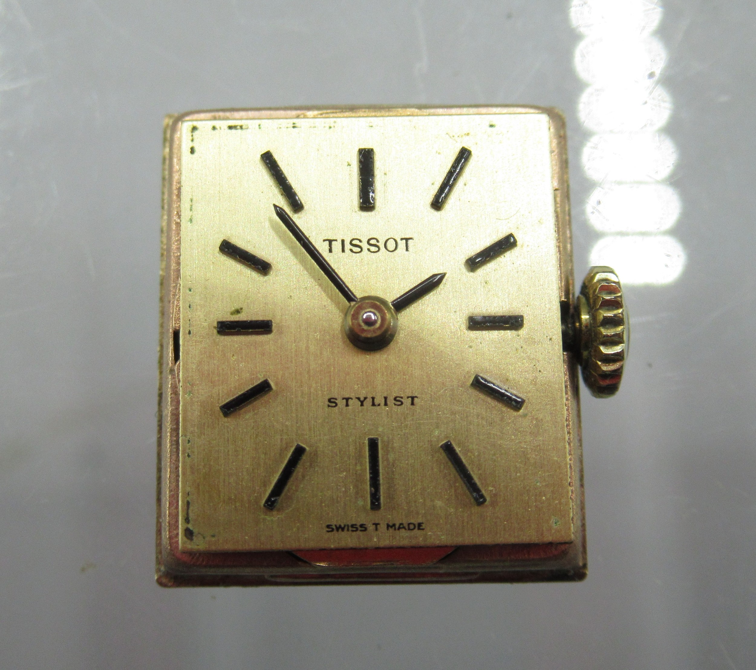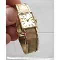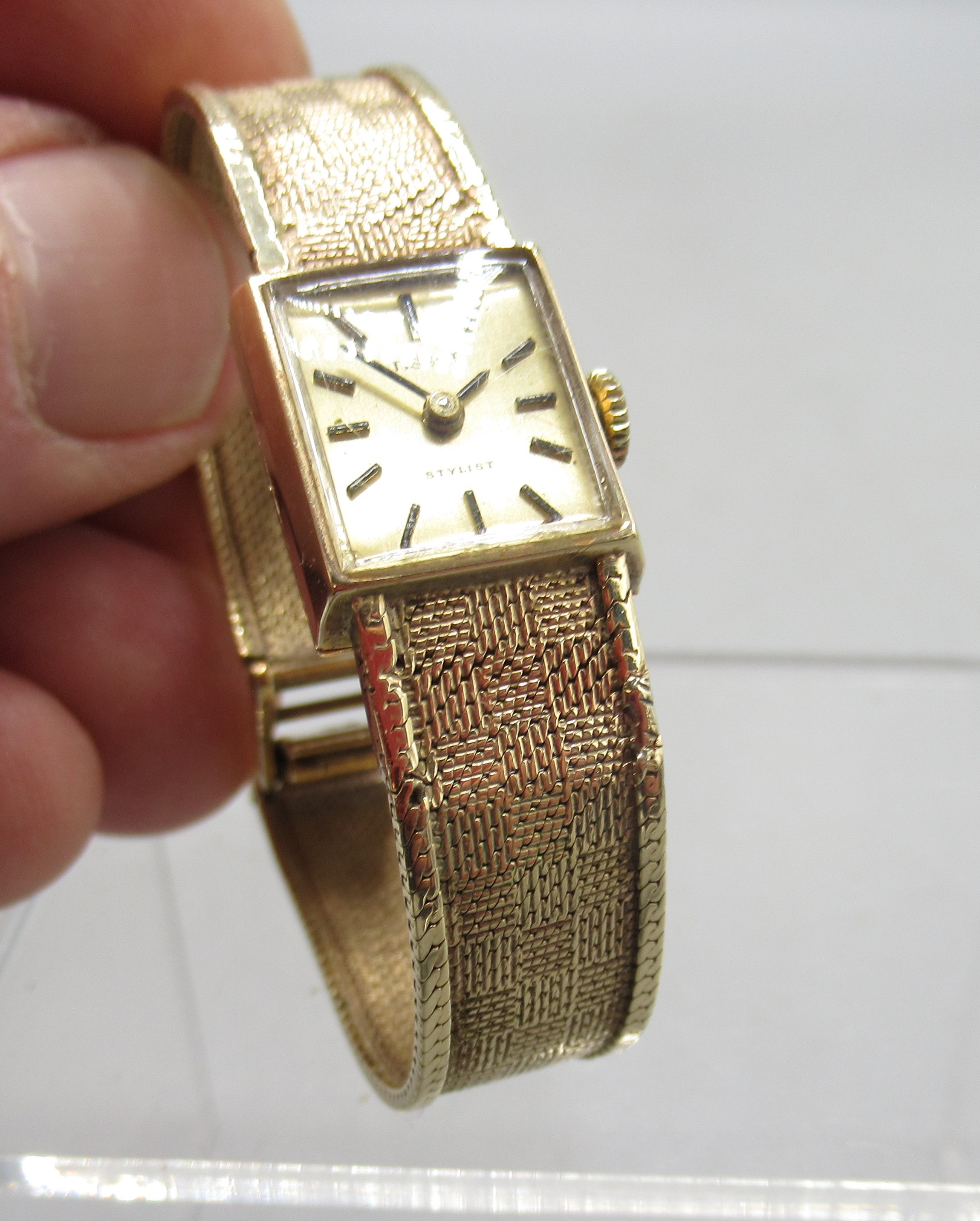 Tissot Stylist ladies 9ct gold wristwatch on integrated fine mesh bracelet, stamped .375, signed champagne dial with baton indices, signed snap on case back no. 1061/75202, Birmingham 1970, Tissot 17 jewel unadjusted movement, no. 11671263, gross weight 19.6g, D14.3mm