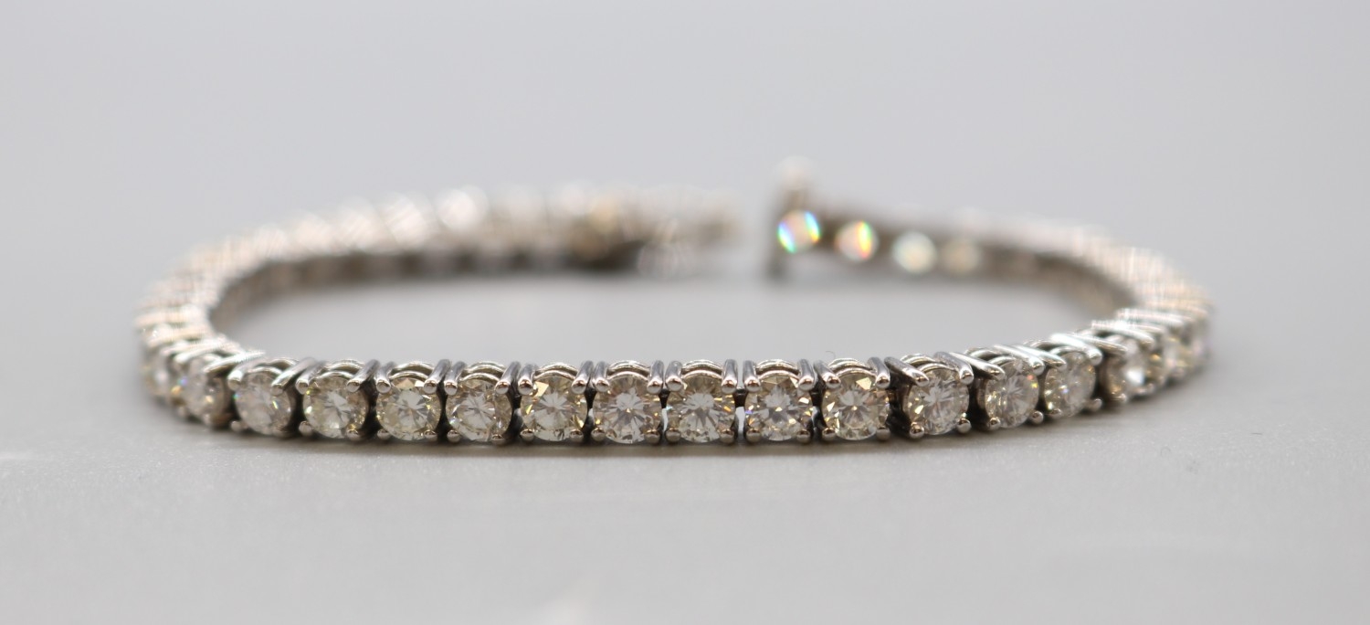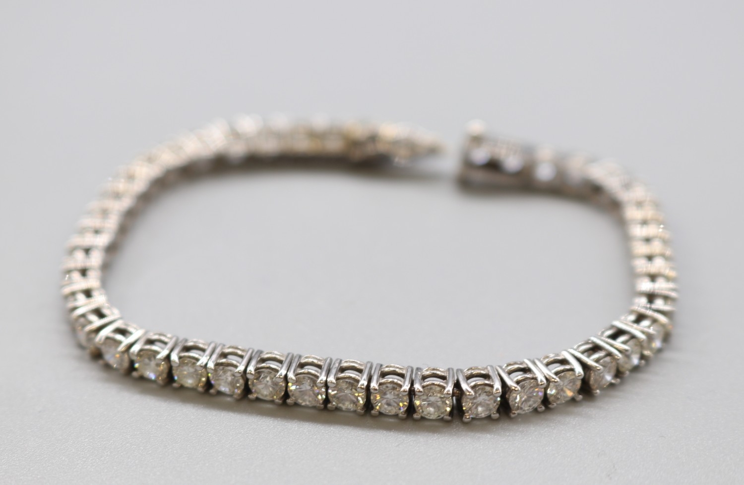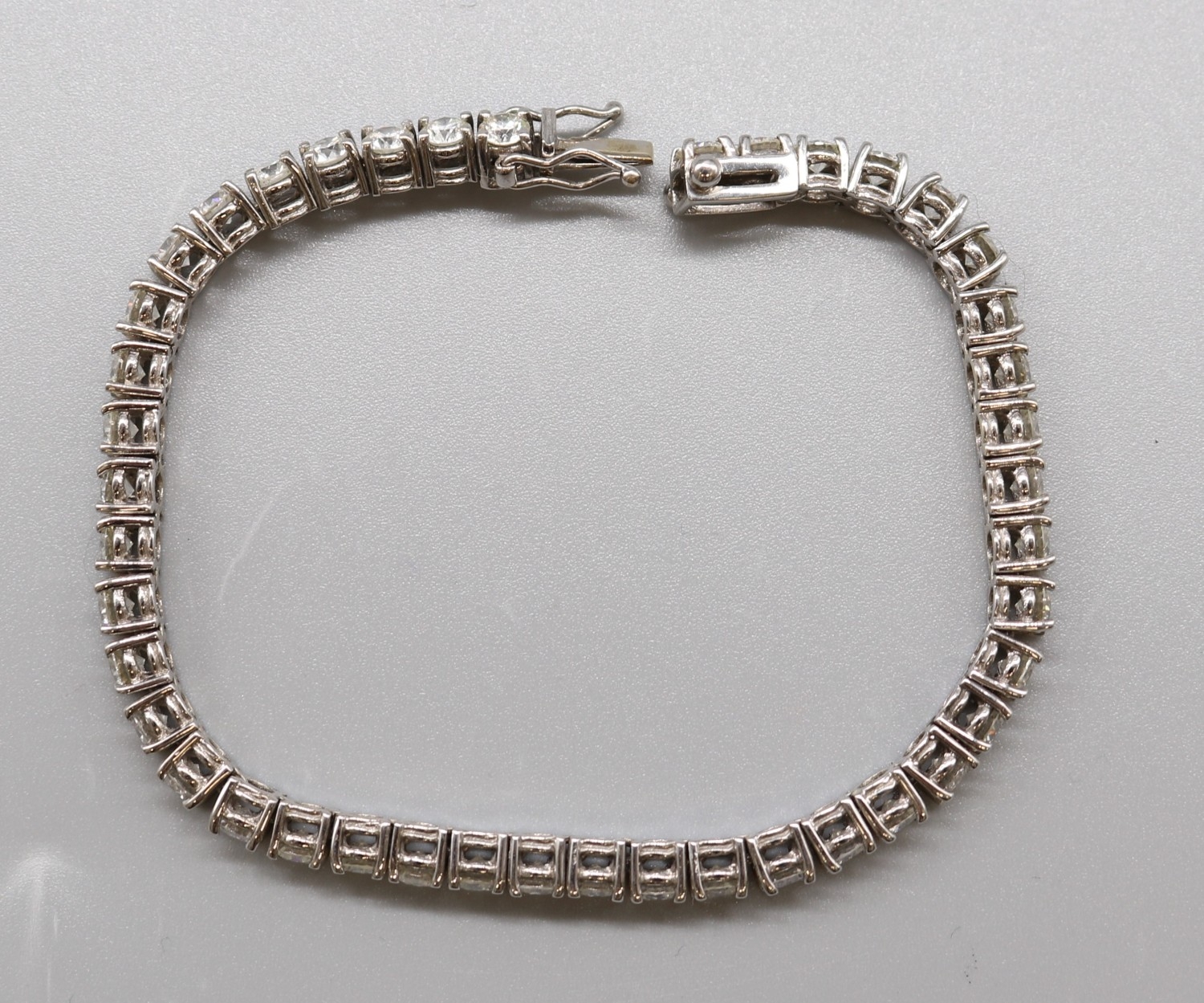 Multi-stone diamond white metal tennis bracelet, L 16.5cm