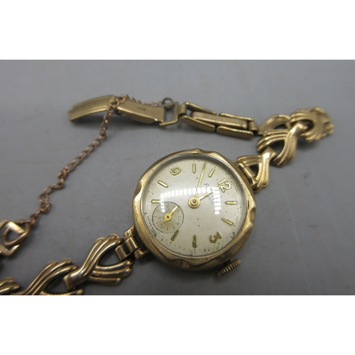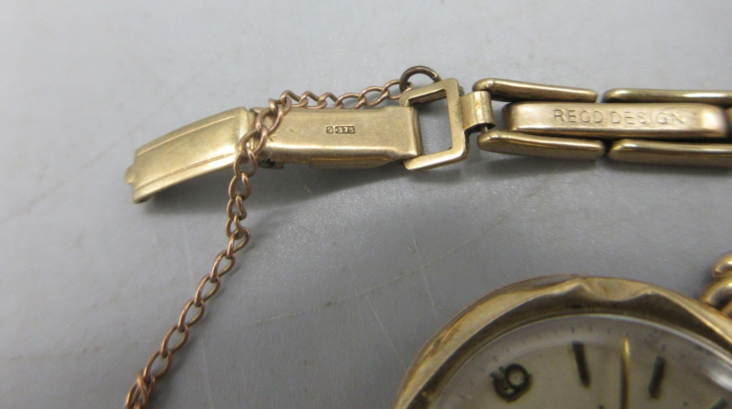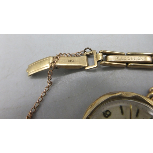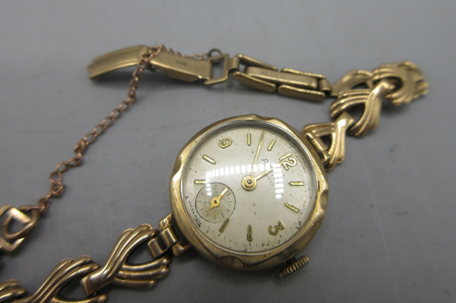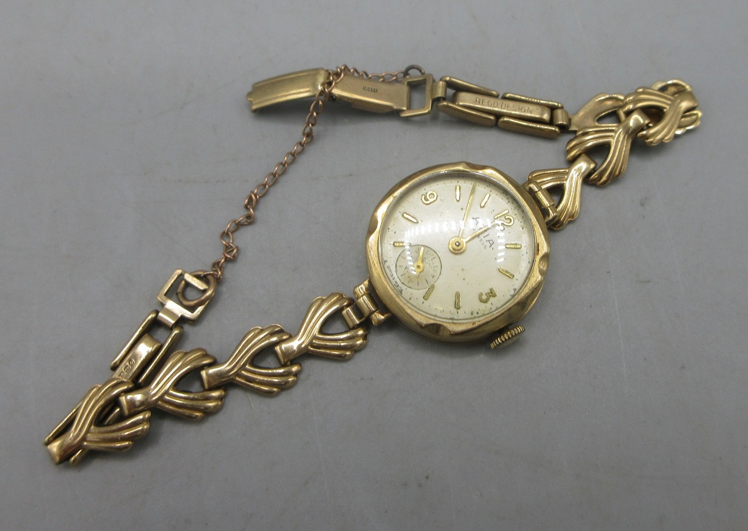 Ladies 9ct yellow gold Avia wristwatch on 9ct yellow gold bracelet, stamped 375, 14.80g