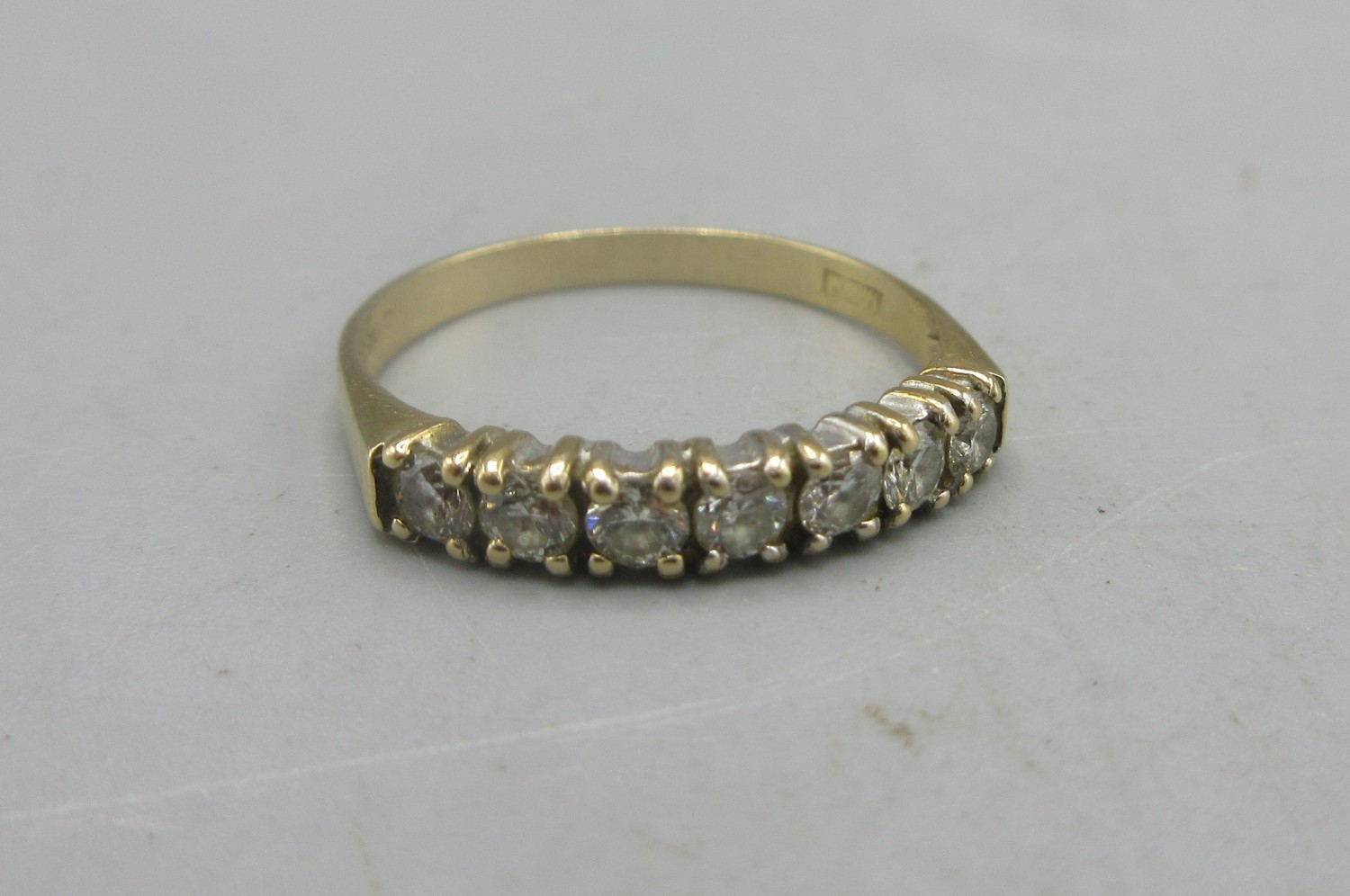 9ct yellow gold half eternity set with diamonds, stamped 375, size O, 1.54g