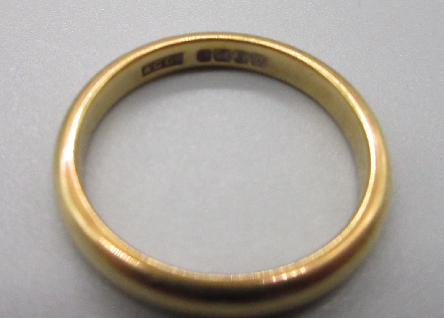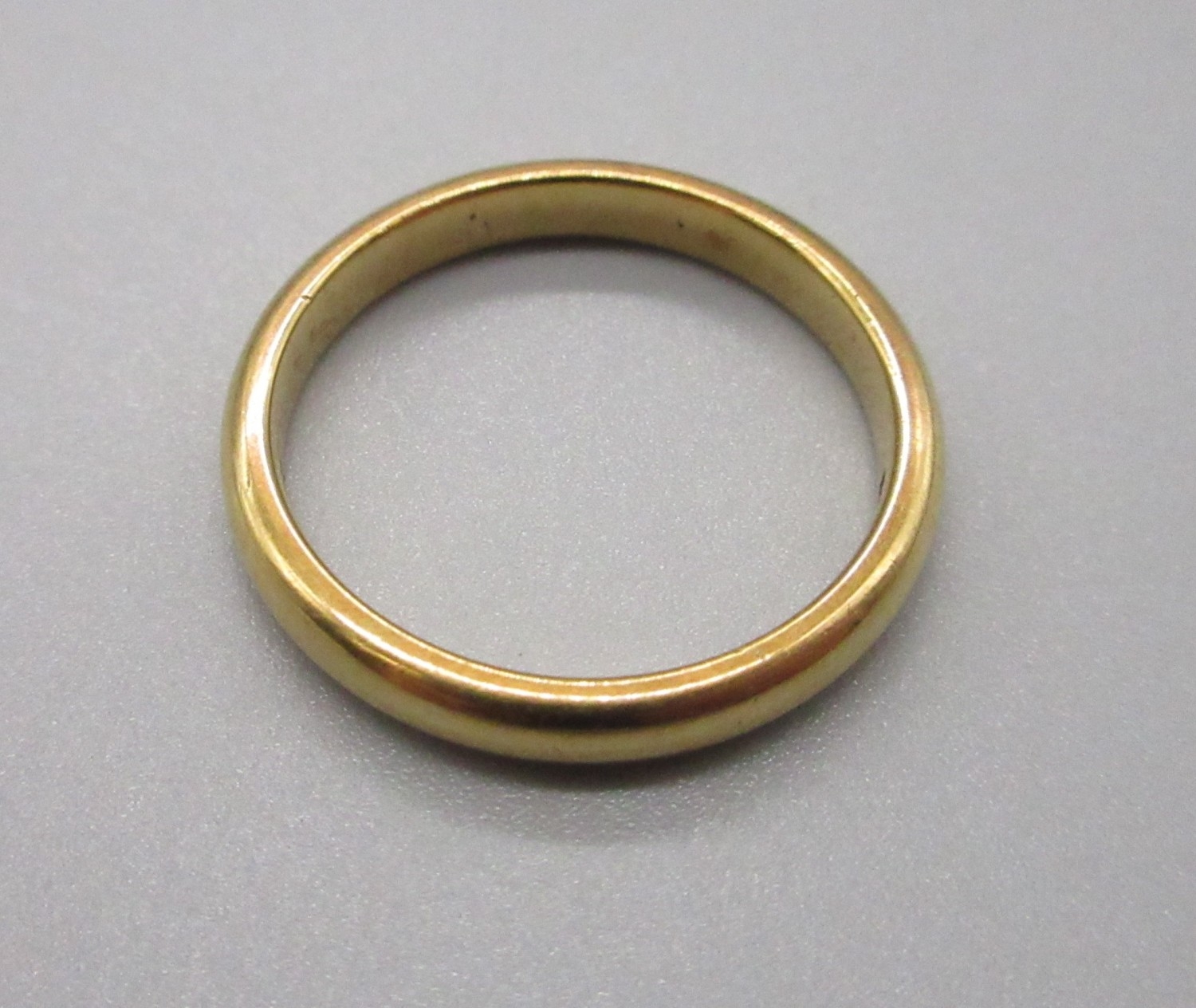 Gold wedding band, hallmarks heavily worn, size O (4g)