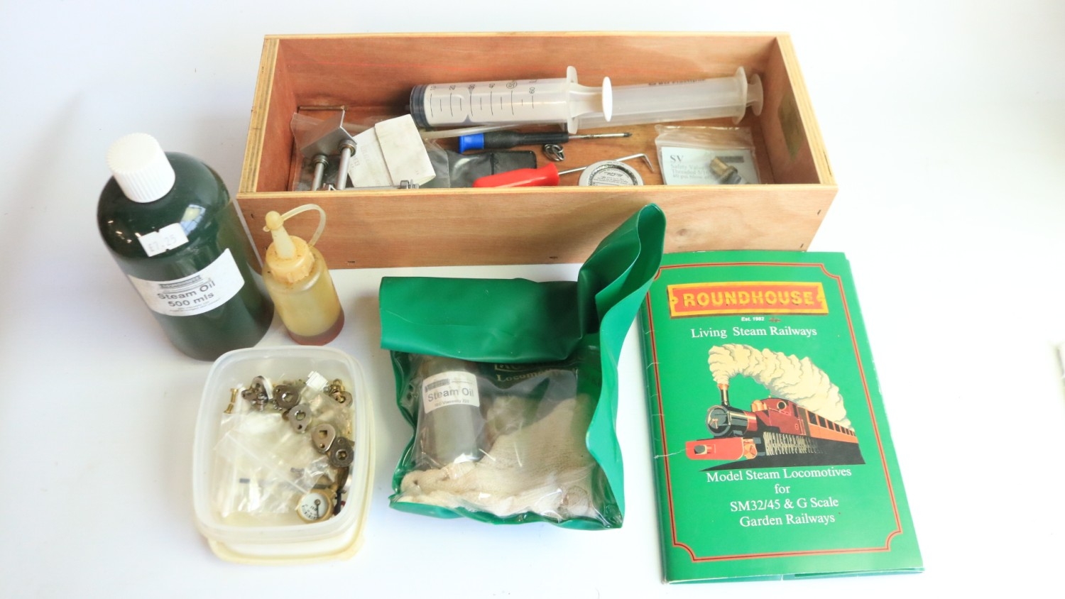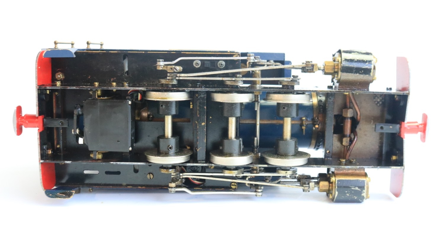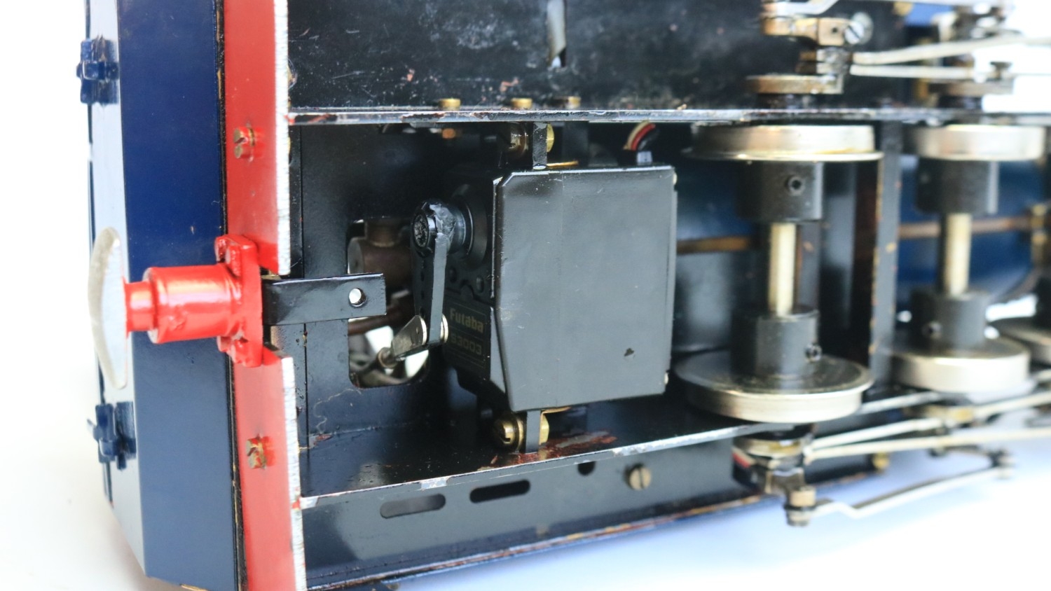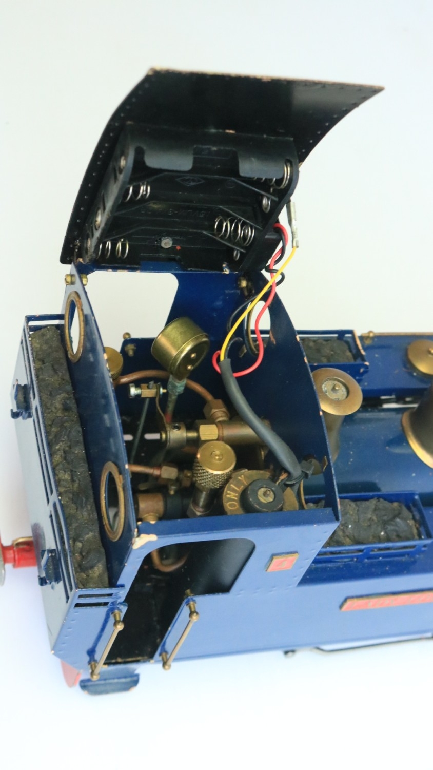 Roundhouse Engineering Co. G gauge gas powered live steam 0-6-0 freelance designed Lady Anne Classic Series "Lady Louise" narrow gauge locomotive model with fitted radio control and a Summerlands Chuffer unit, model in very good overall previously run condition (please refer to photos), overall length 32cm with adjustable wheel spacing (32-45mm) complete with sturdy carry box and various spare parts and tools, not tested but vendor assures all in full working order, also included a Fly Sky 3 channel handheld transmitter
