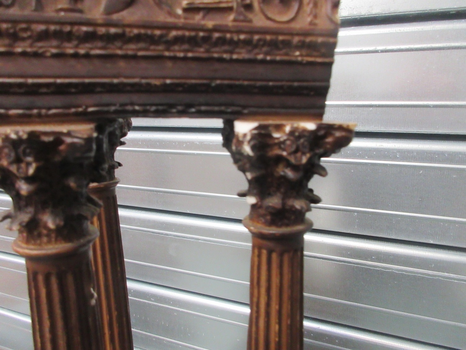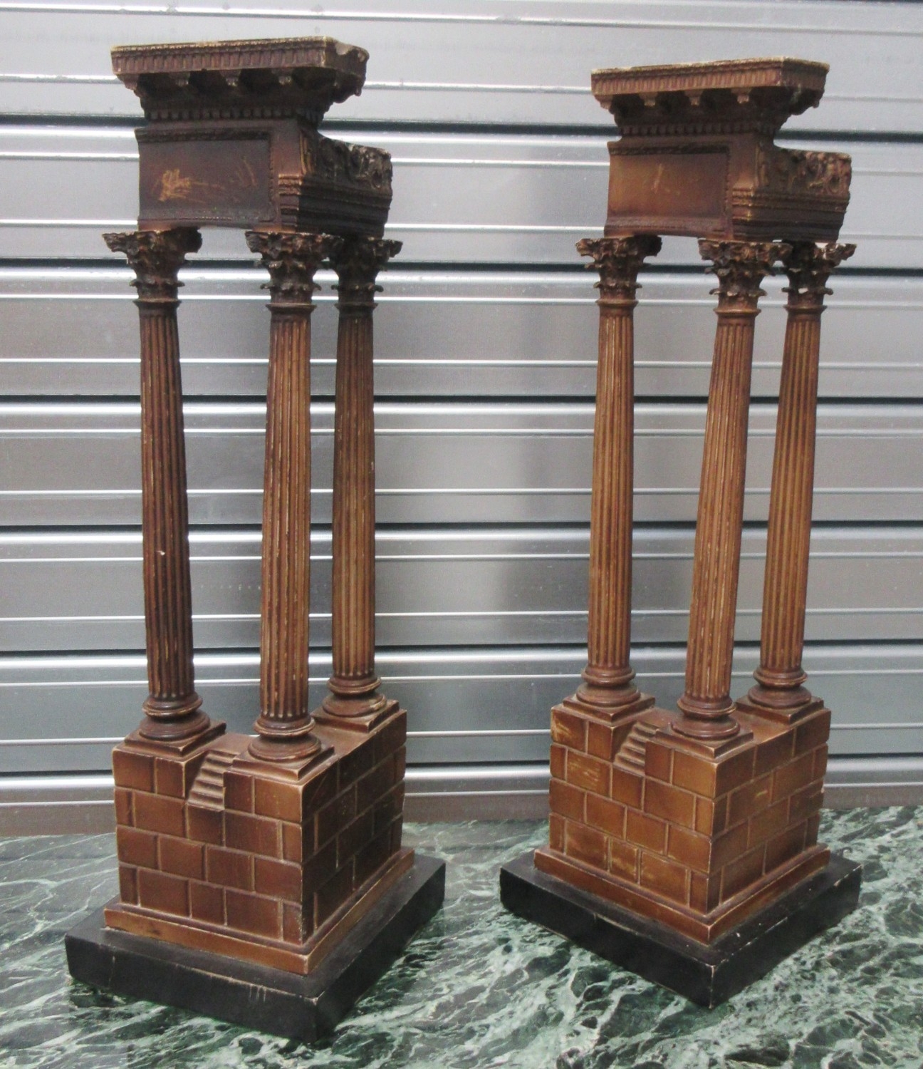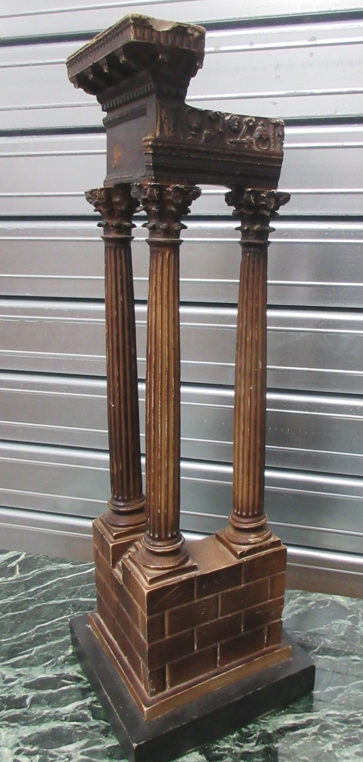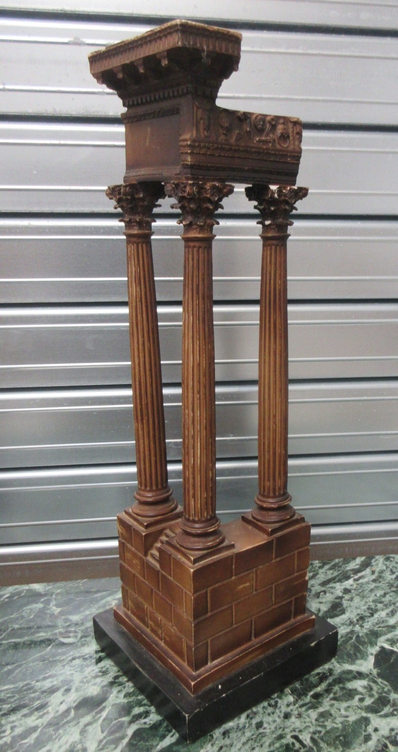 Pair of resin Grand Tour style models of Temple ruins, on square bases, W20cm D20cm H57cm (2)