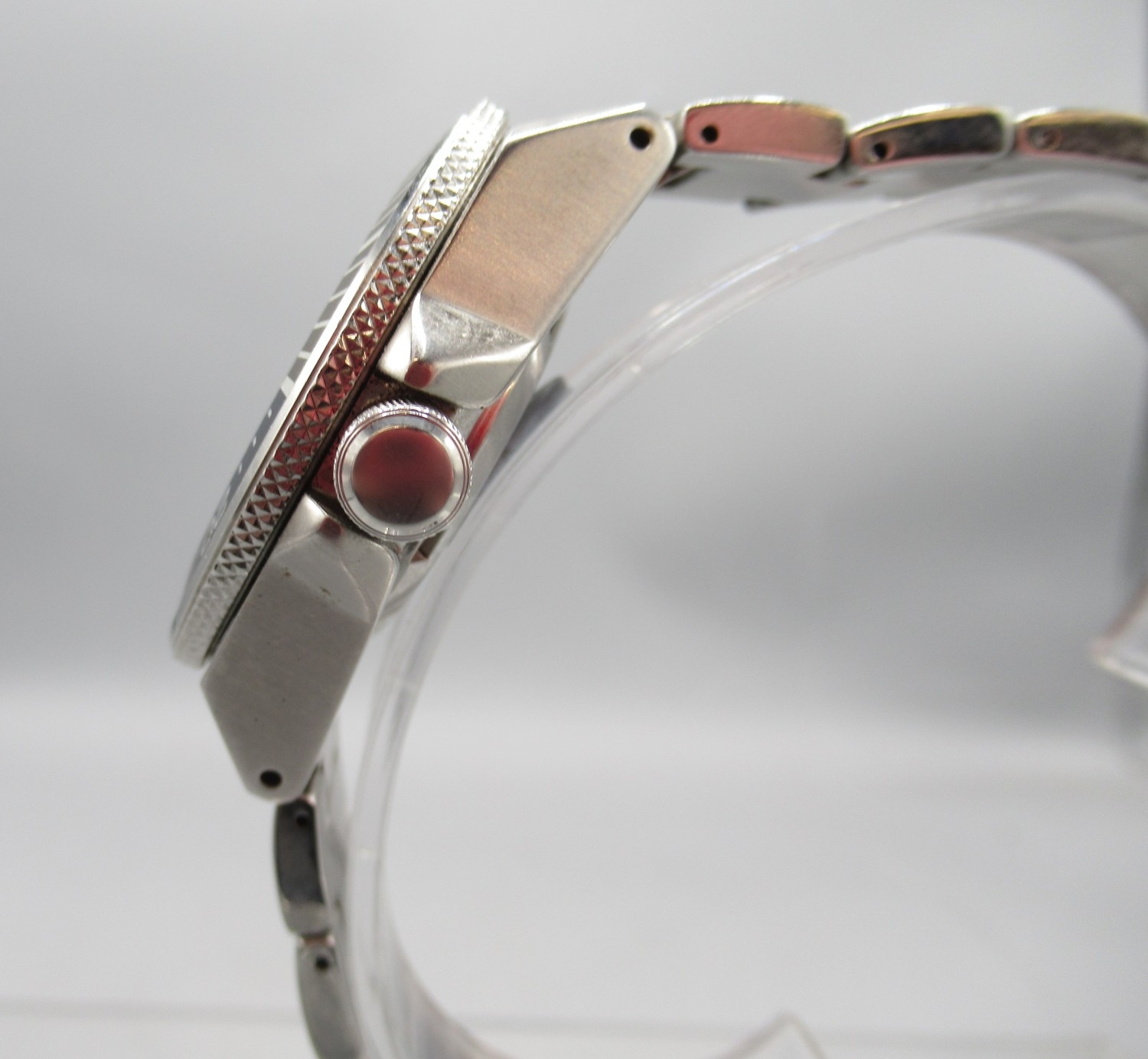 Watch running, bezel has slight marks, bracelet and clasp scuffed and other age related wear.