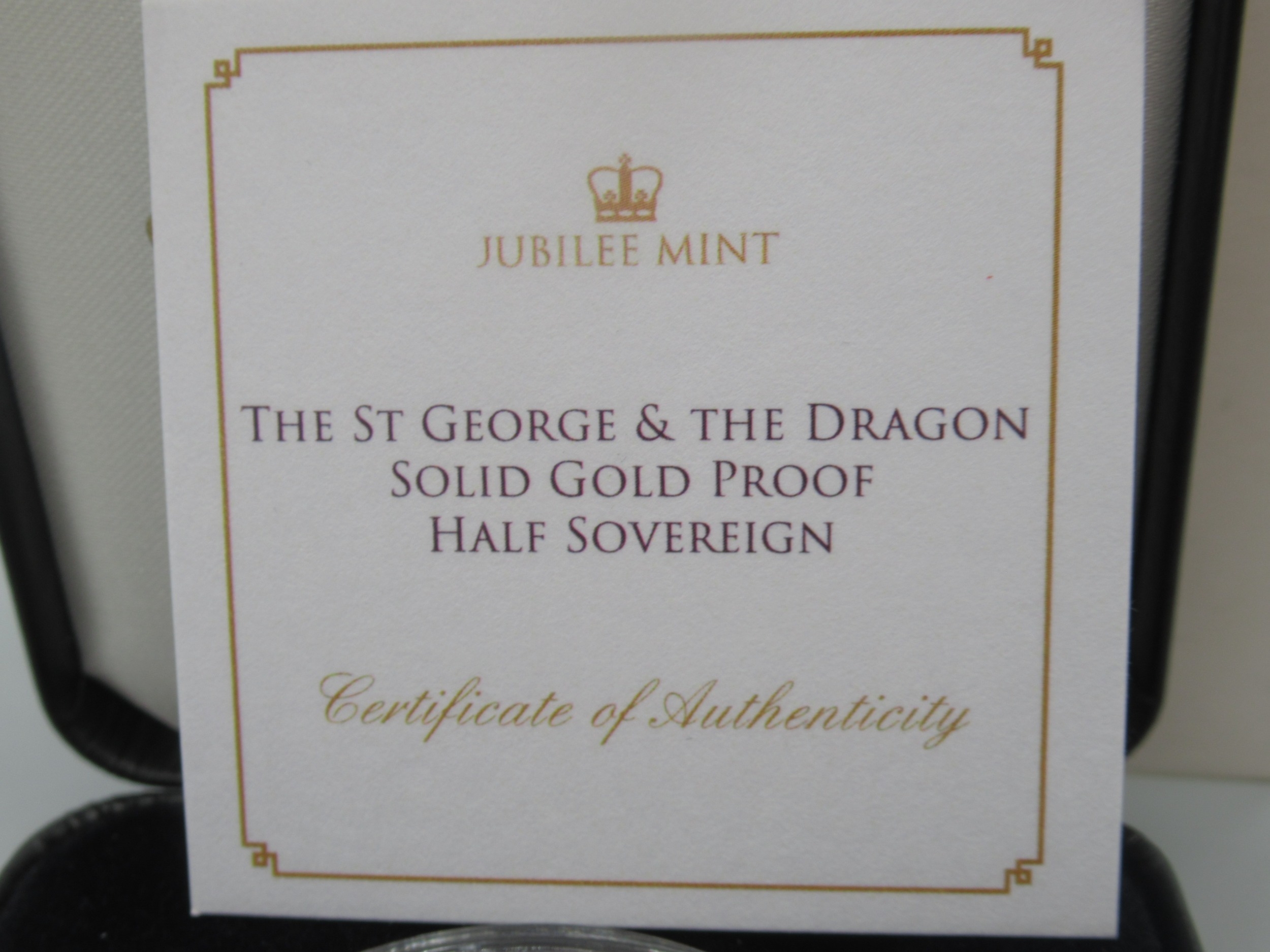 Jubilee Mint - The St. George and the Dragon Solid Gold Proof Half-Sovereign, encapsulated in case with COA