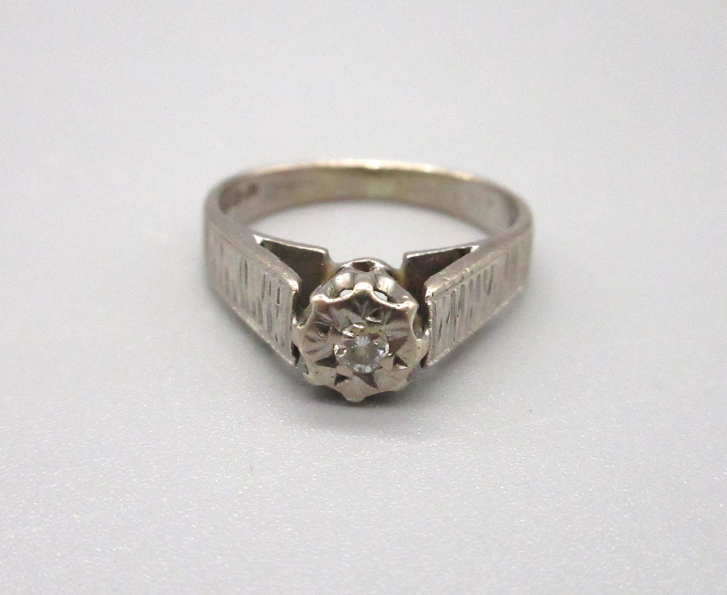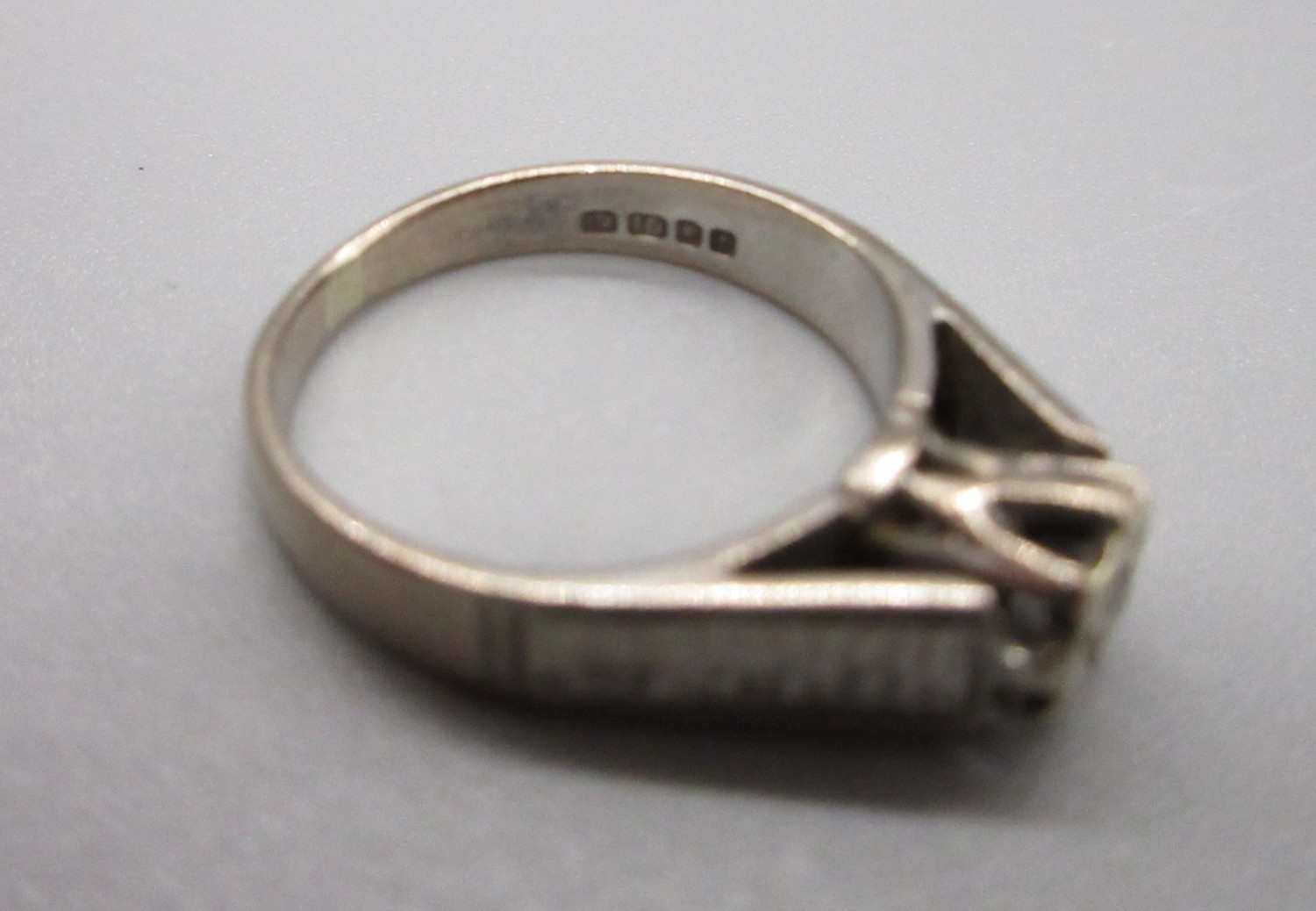 18ct hallmarked white gold single stone ring, size G (2.8g)
