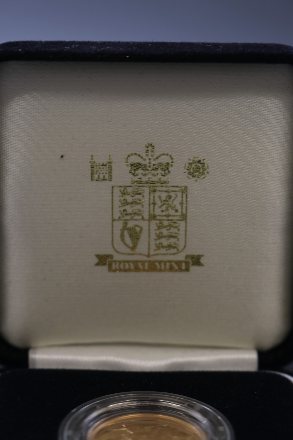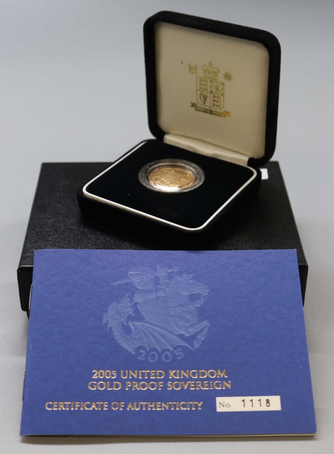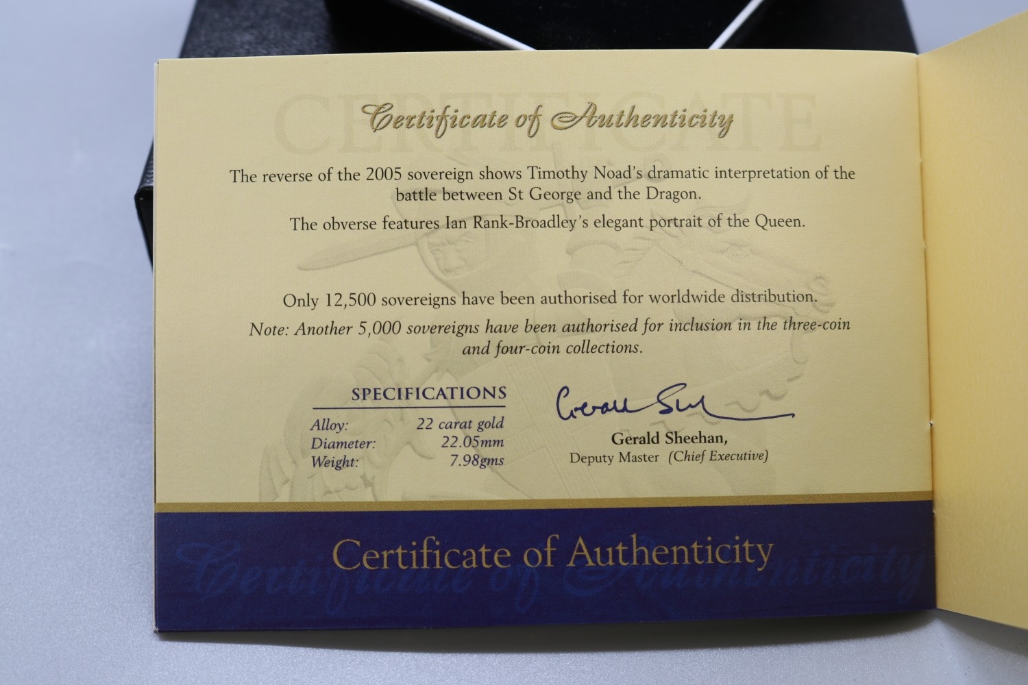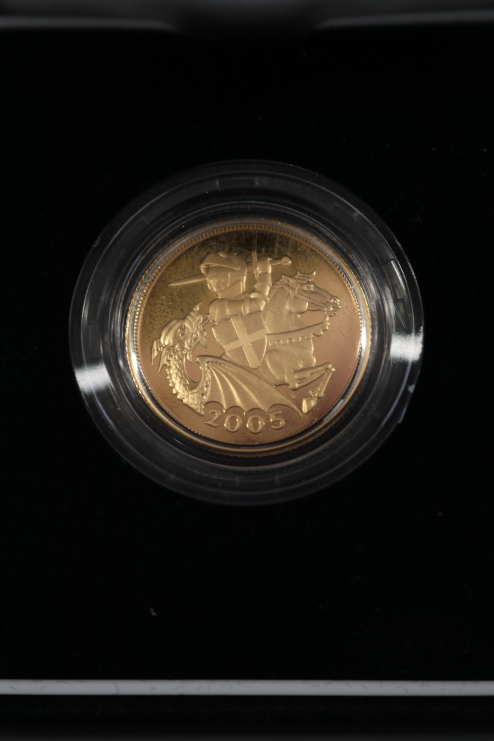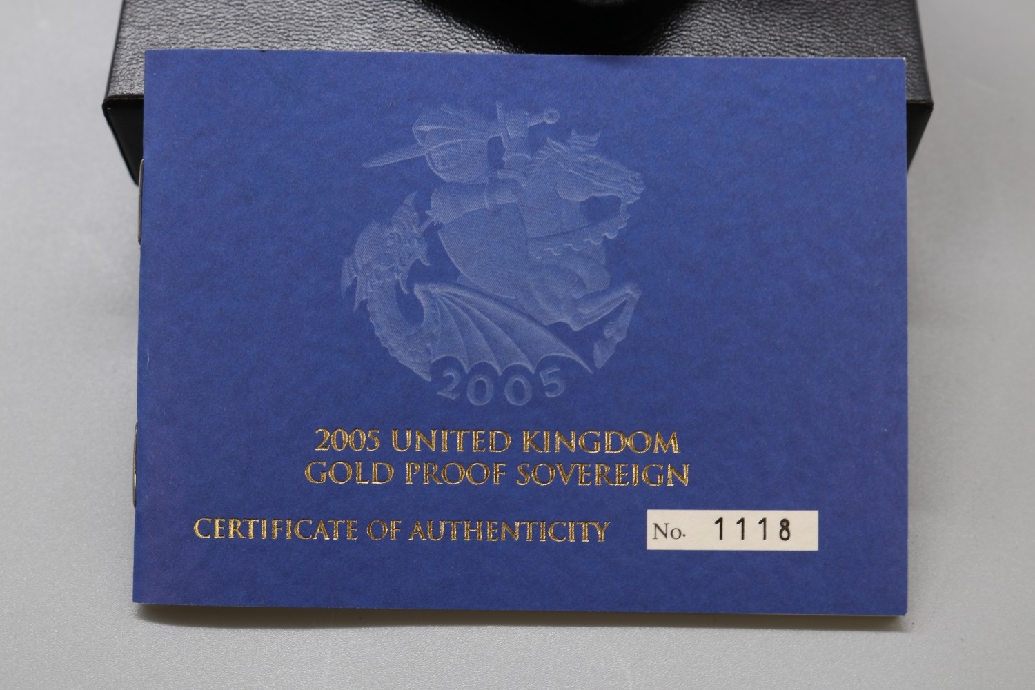 The Royal Mint - 2005 United Kingdom Gold Proof Sovereign No.1118/12500, encapsulated in case with COA