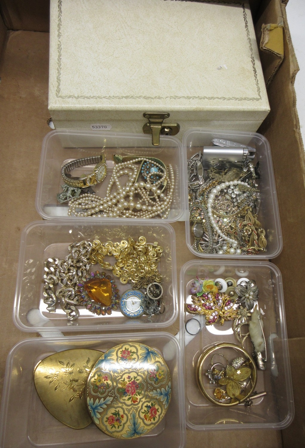 Large collection of modern and vintage costume jewellery including brooches, rings, necklaces etc. and a jewellery box