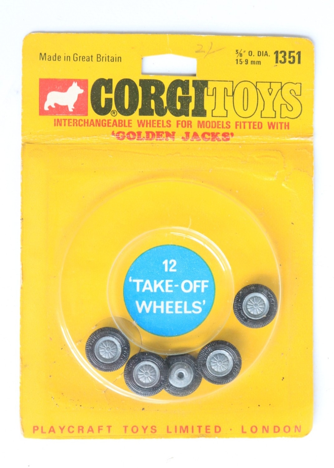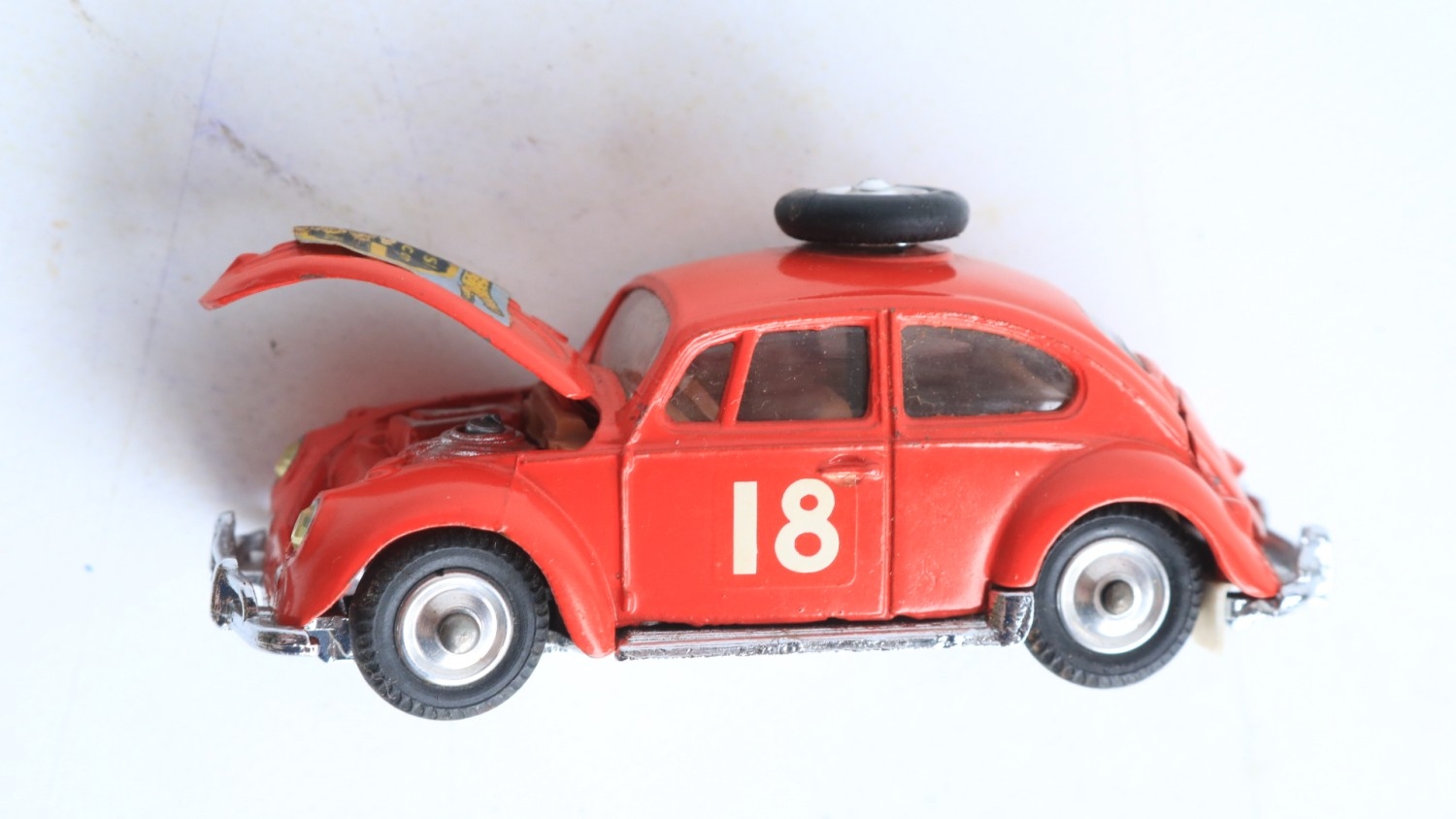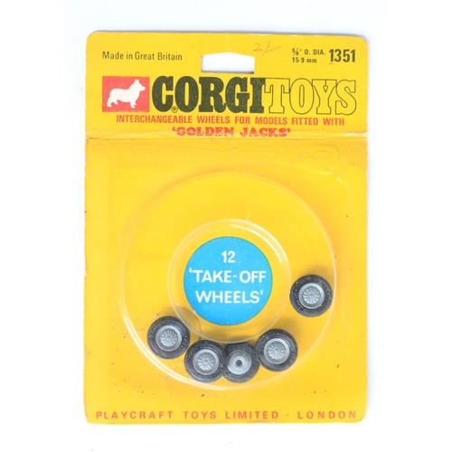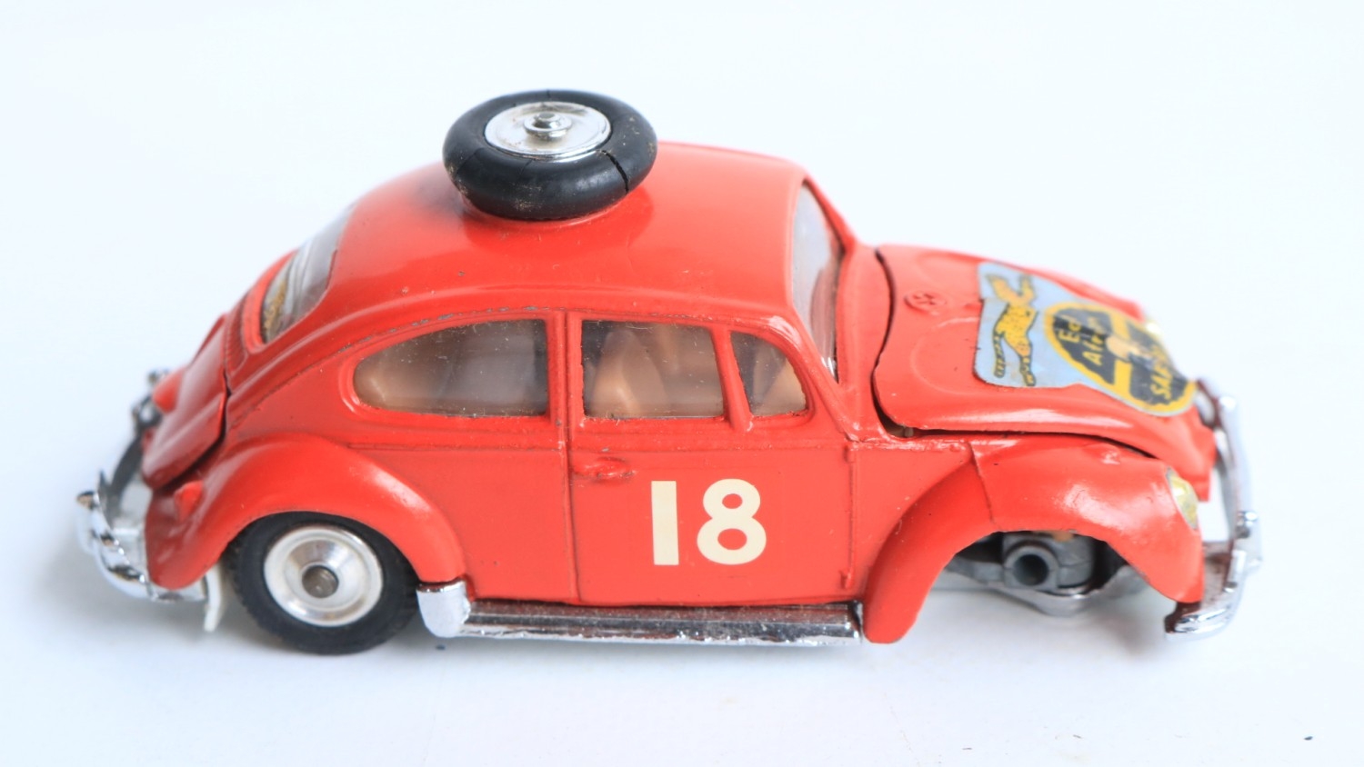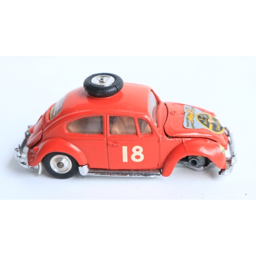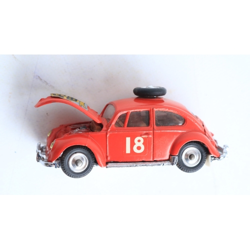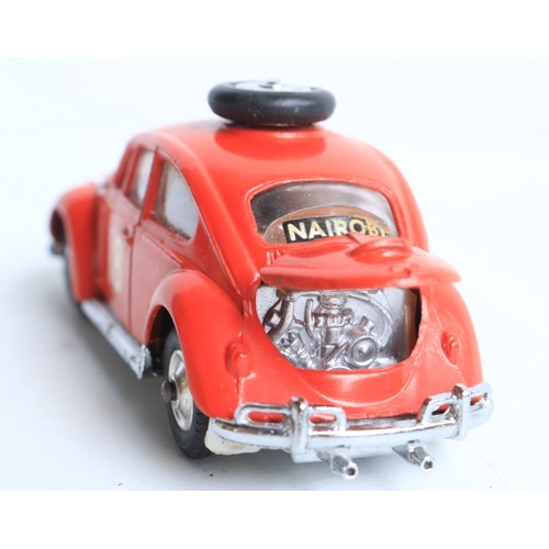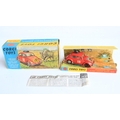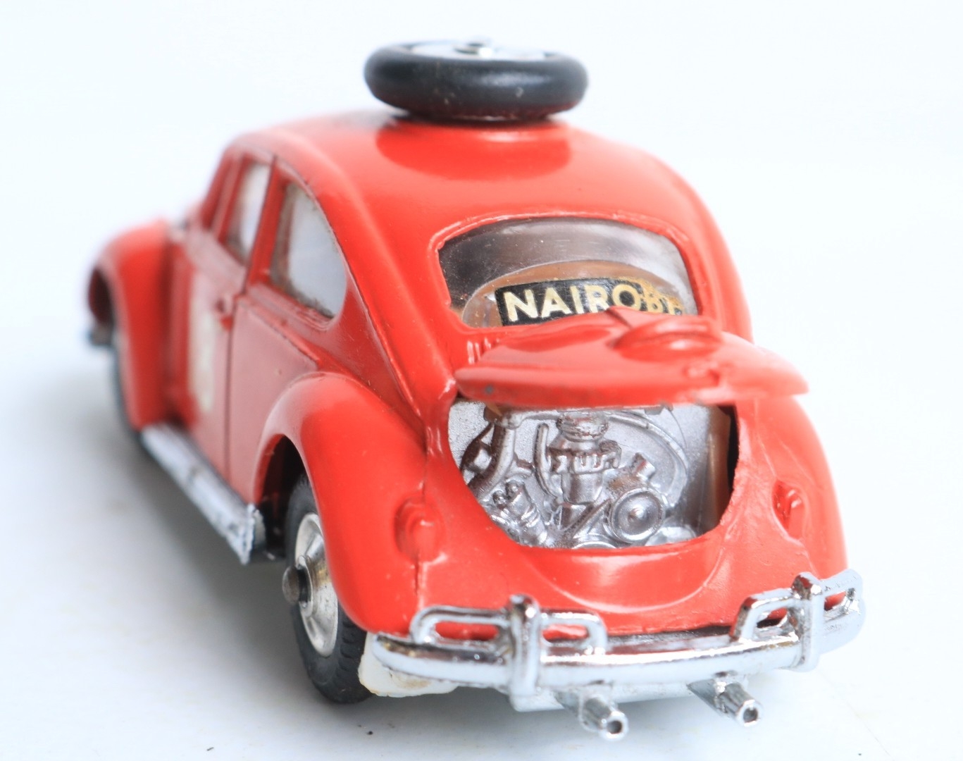 Vintage Corgi Toys 302 Hillman Hunter London to Sydney Marathon Winner (model in good condition for age with playwear, some paint chipping etc, box good with storage wear and creasing of clear plastic viewing panel, missing Kangaroo) and 256 VW 1200 East African Safari (model good but missing front right side wheel, steering function in working order, inner box tray excellent, outer box good with storage wear, missing Rhino), both models with original instruction sheets, also included an incomplete Corgi 'Golden Jacks' wheel set with 5 wheels and good condition packaging (3)