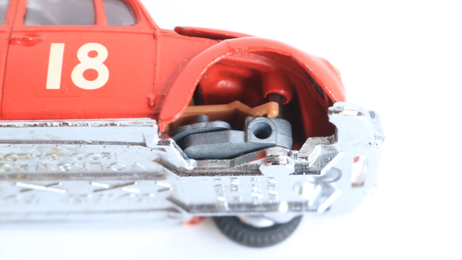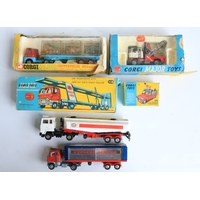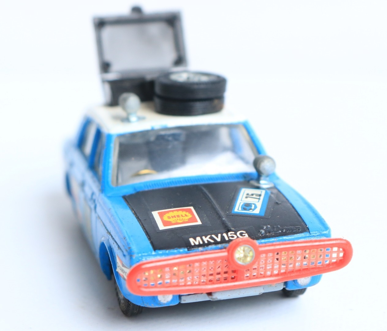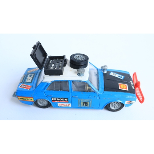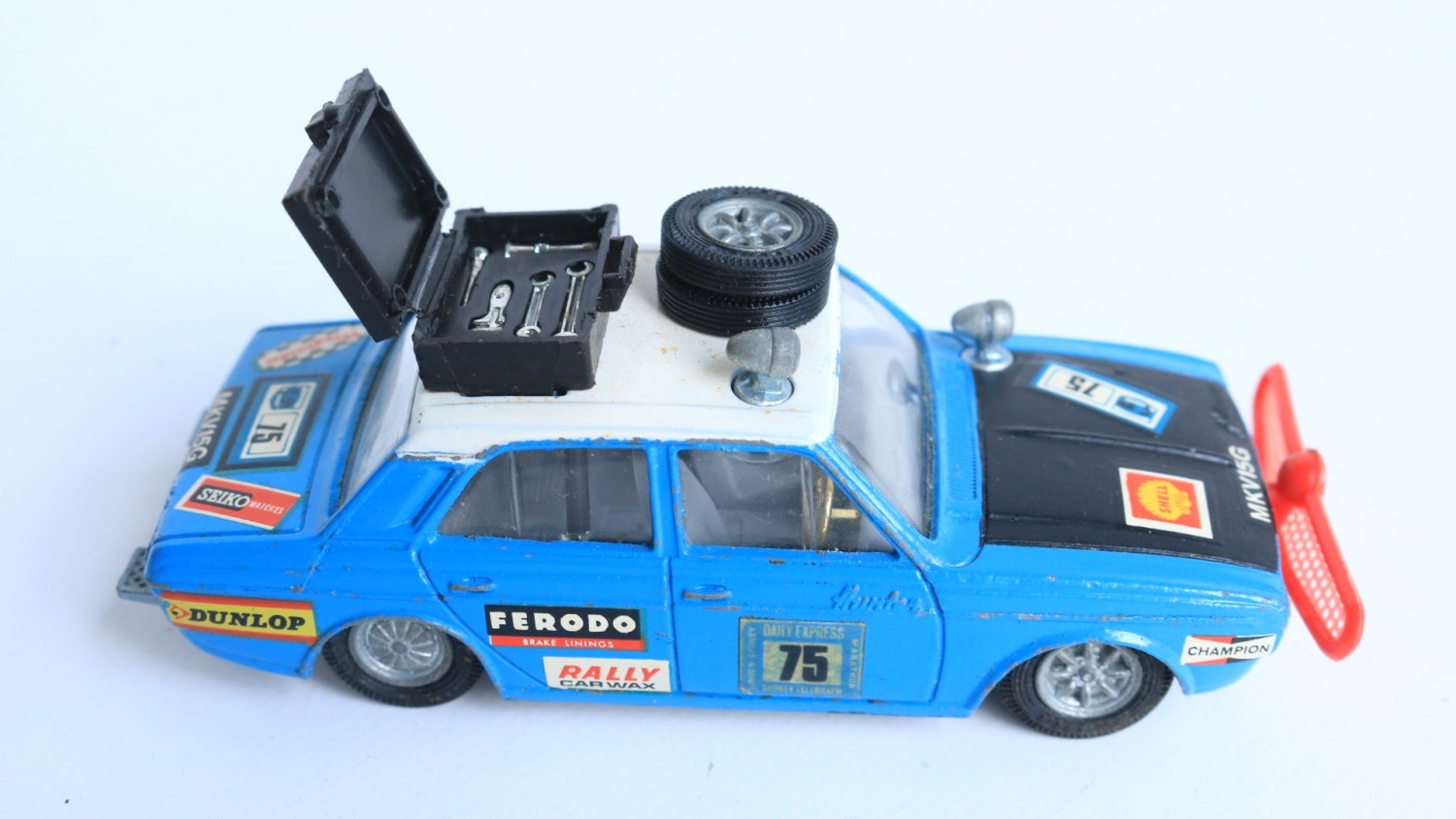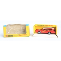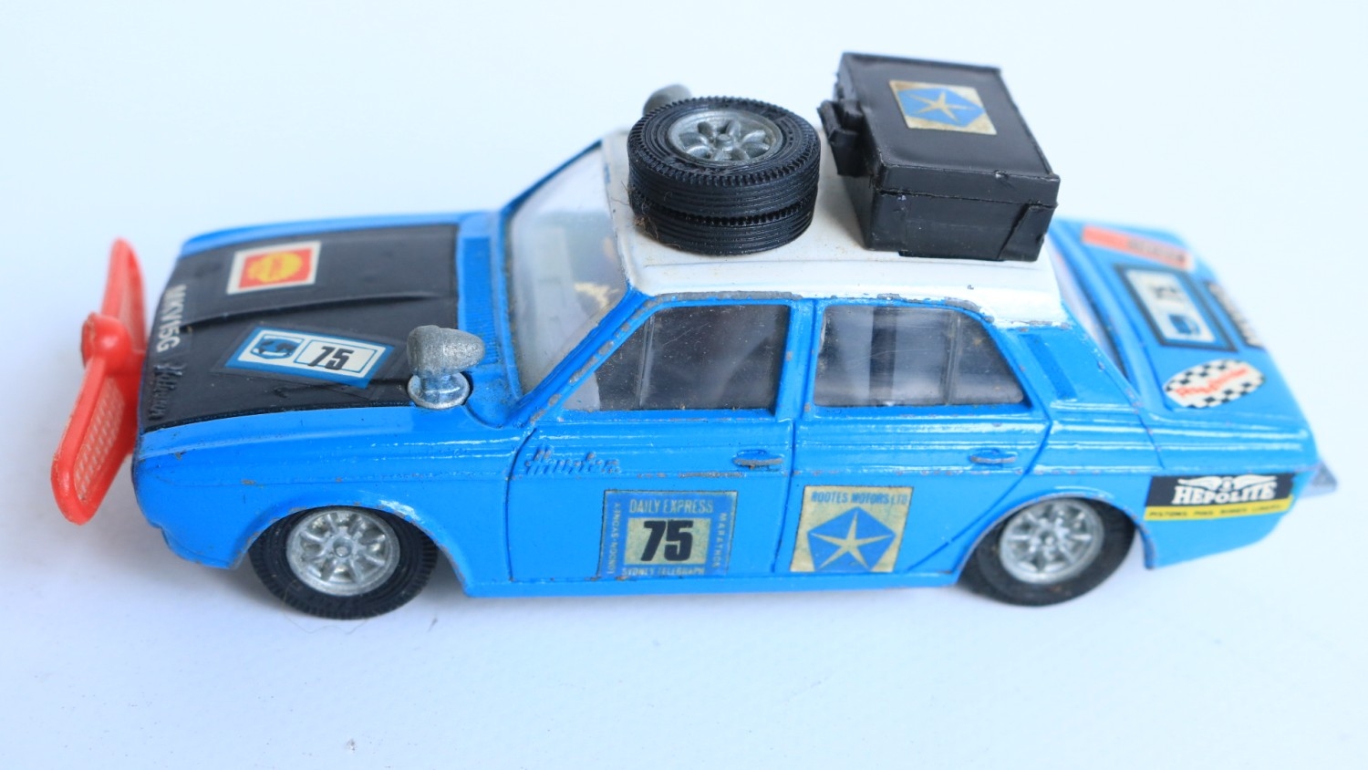 Vintage Corgi Toys 302 Hillman Hunter London to Sydney Marathon Winner (model in good condition for age with playwear, some paint chipping etc, box good with storage wear and creasing of clear plastic viewing panel, missing Kangaroo) and 256 VW 1200 East African Safari (model good but missing front right side wheel, steering function in working order, inner box tray excellent, outer box good with storage wear, missing Rhino), both models with original instruction sheets, also included an incomplete Corgi 'Golden Jacks' wheel set with 5 wheels and good condition packaging (3)