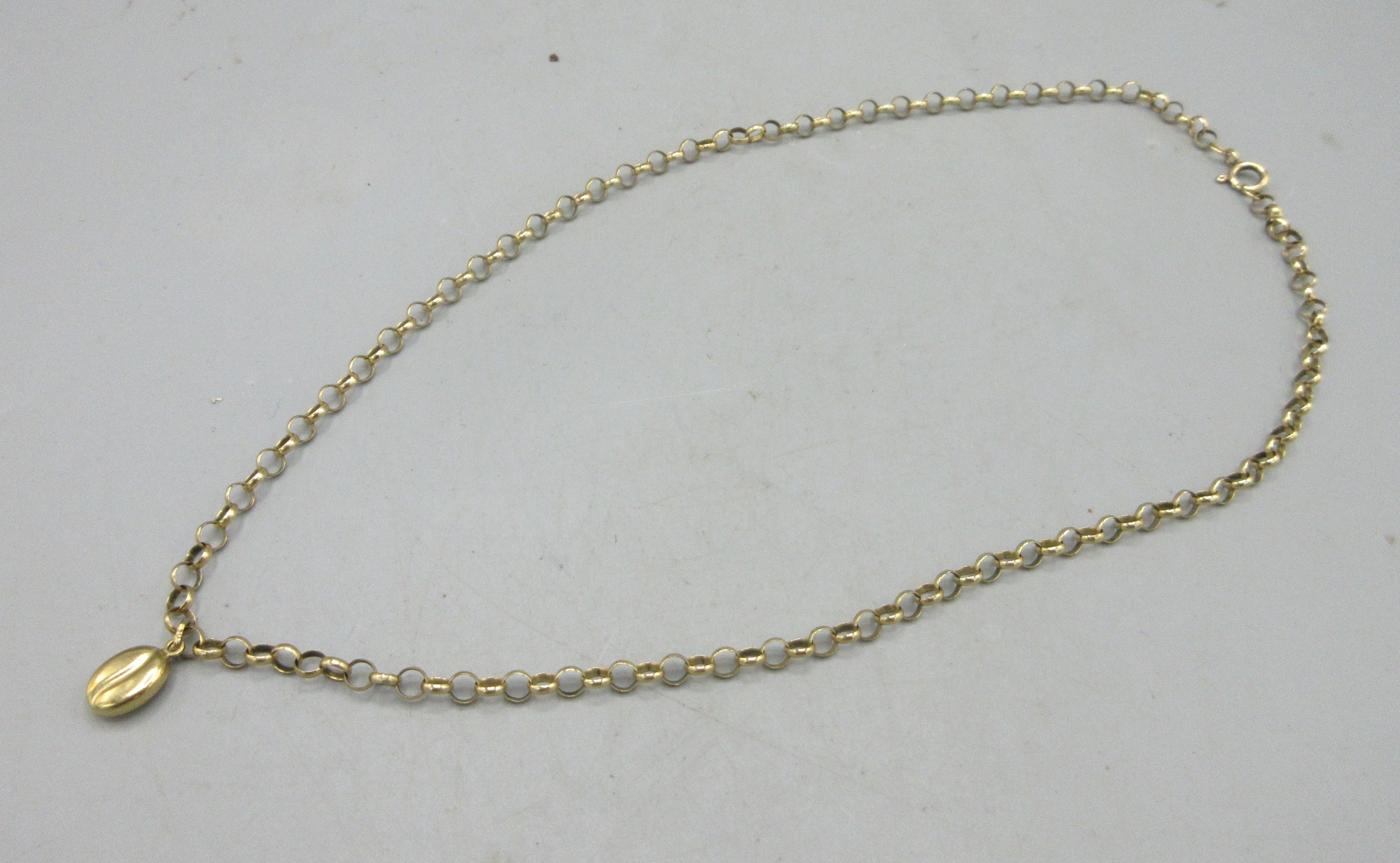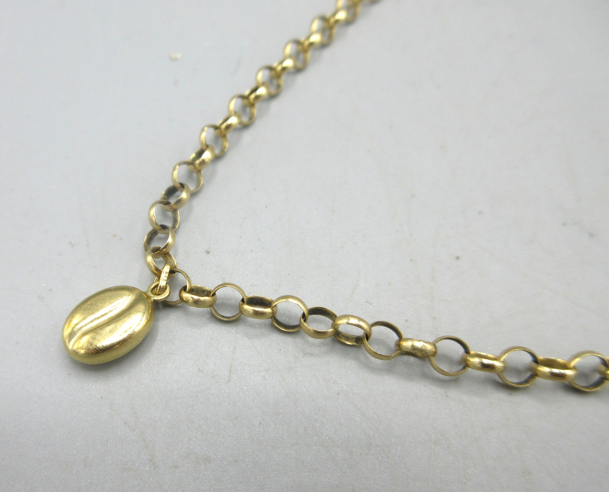 9ct yellow gold belcher chain necklace with attached coffee bean charm, stamped 375 and 9, L46cm, 6.63g