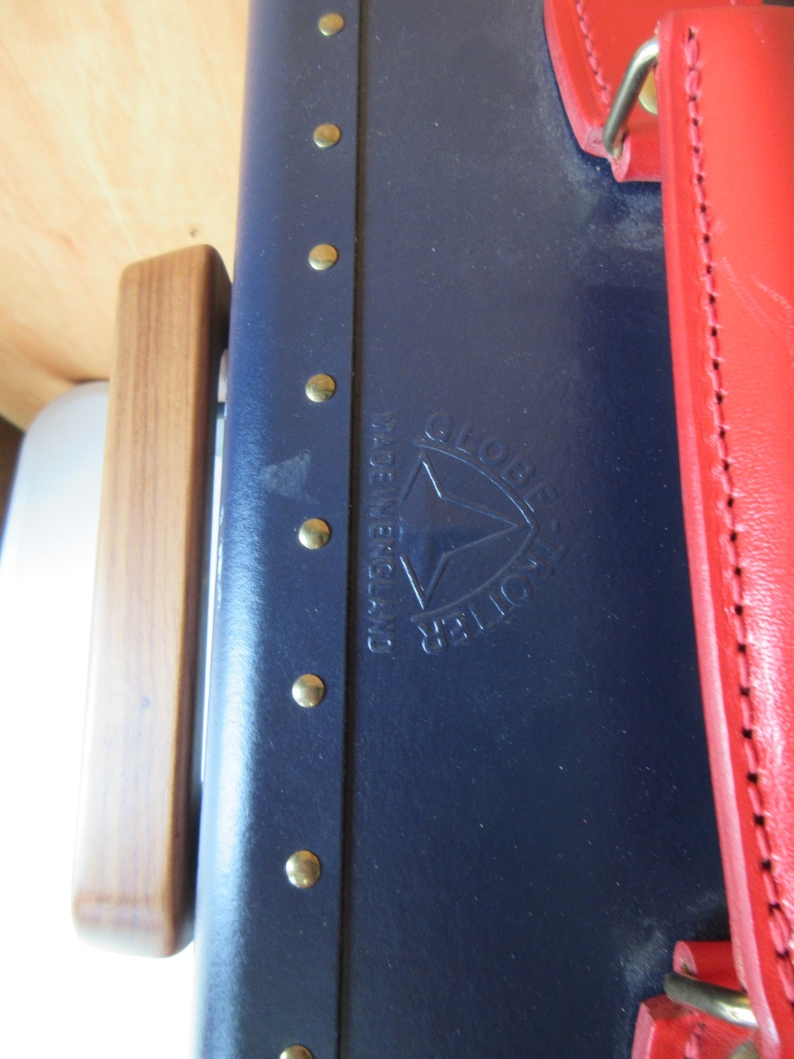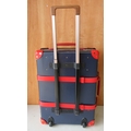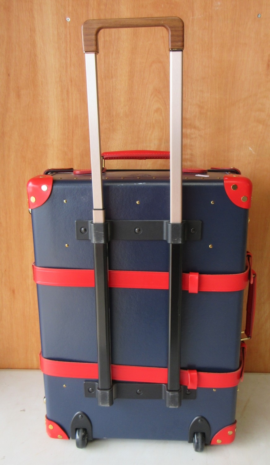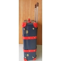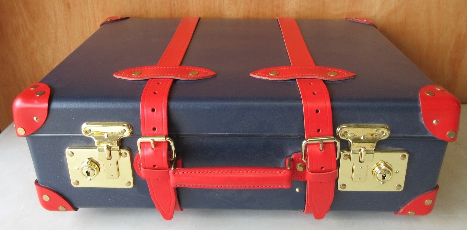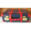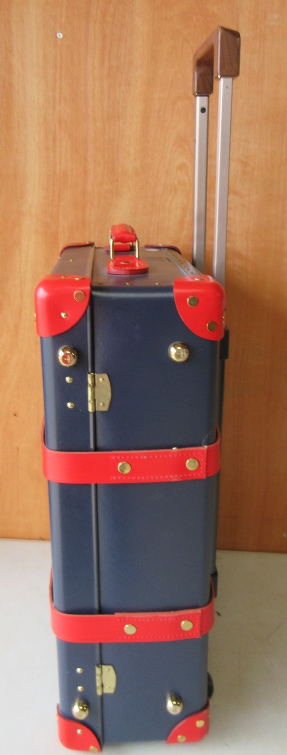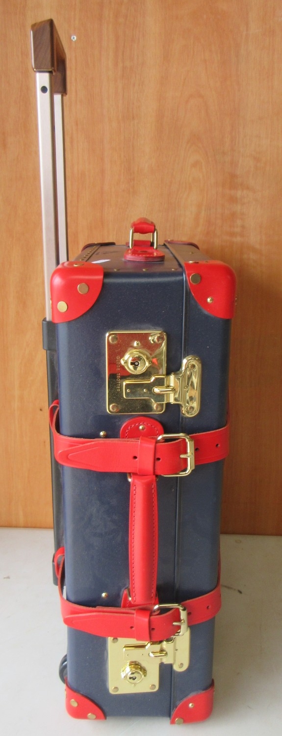 The Janet Street Porter Collection: Elton John AIDS Foundation Globetrotter 21 Suitcase, in blue with red detailing, H21cm, L55cm, W39cm