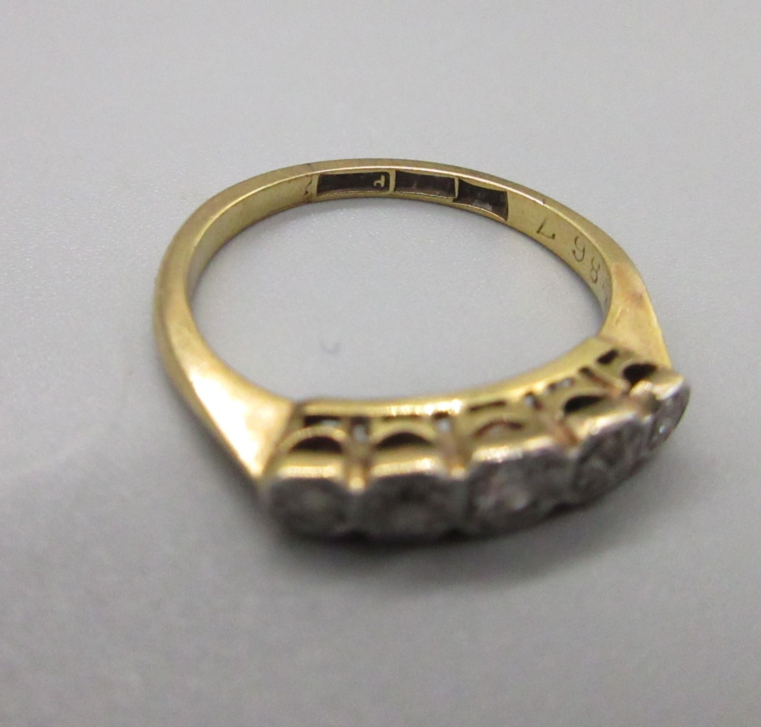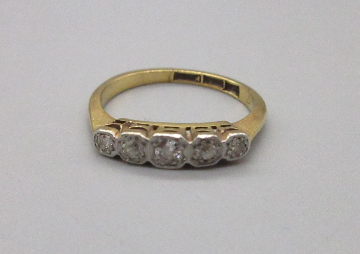 18ct and platinum 5 stone ring, size I 1/2 (2.2g)