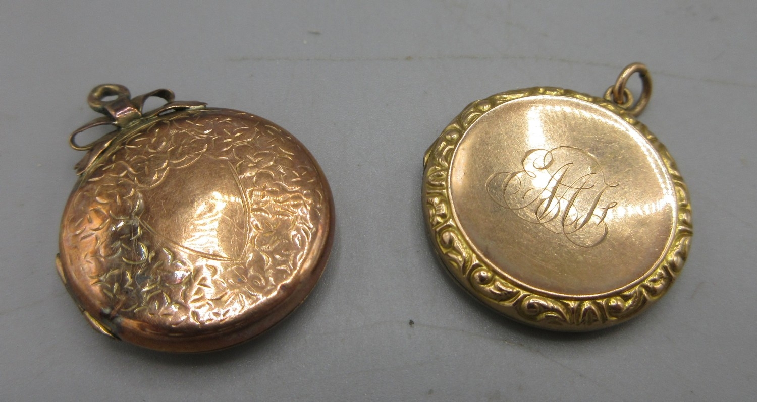 Two 9ct gold pendant lockets, both stamped 9ct front and back, 7.56g