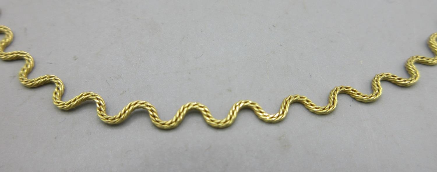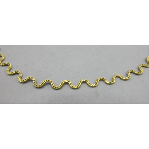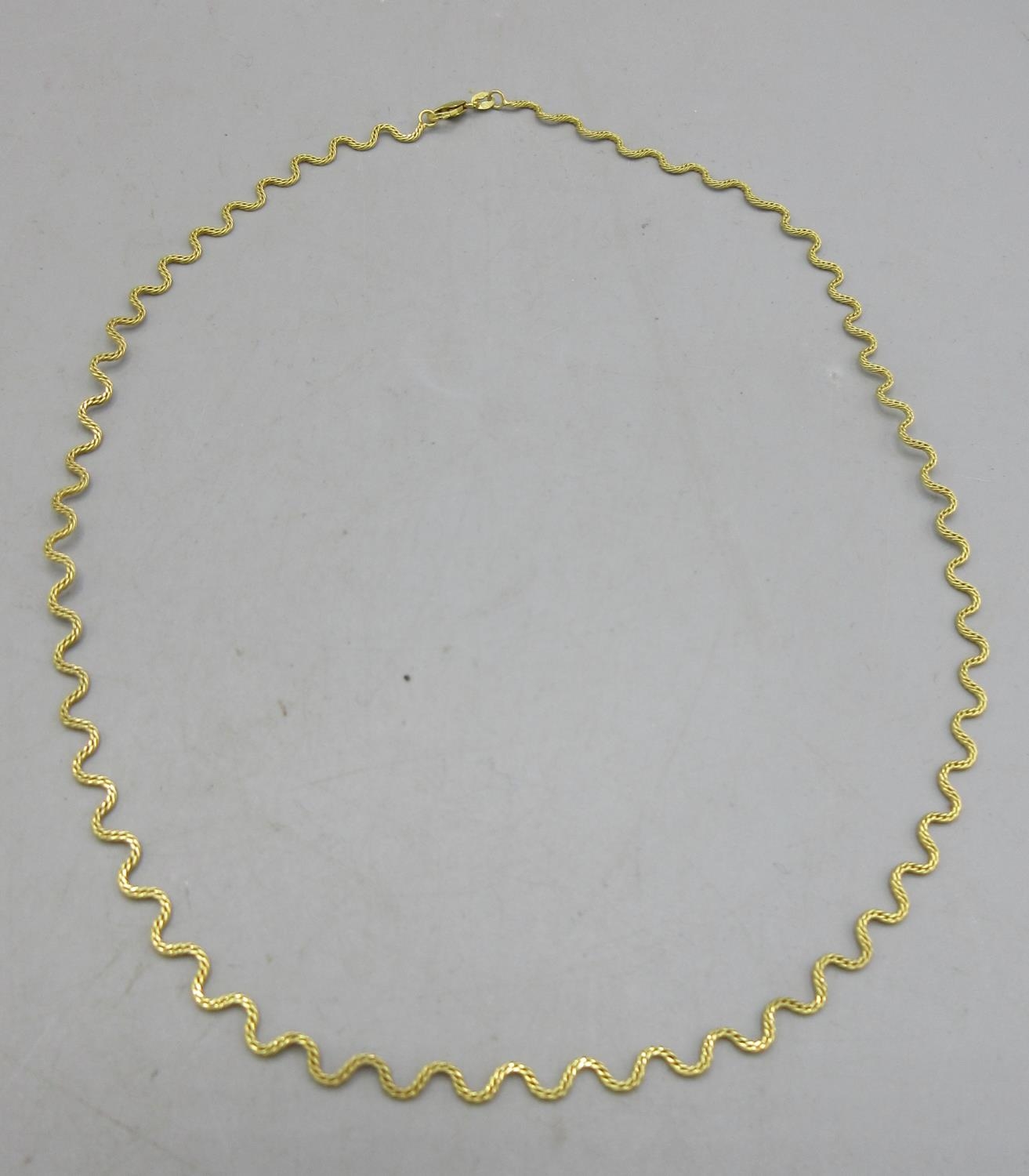 9ct yellow gold squiggle necklace, stamped 375, L46cm, 5.12g