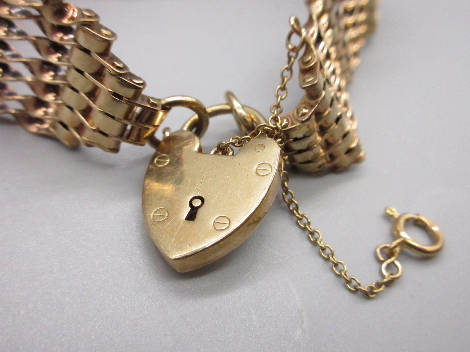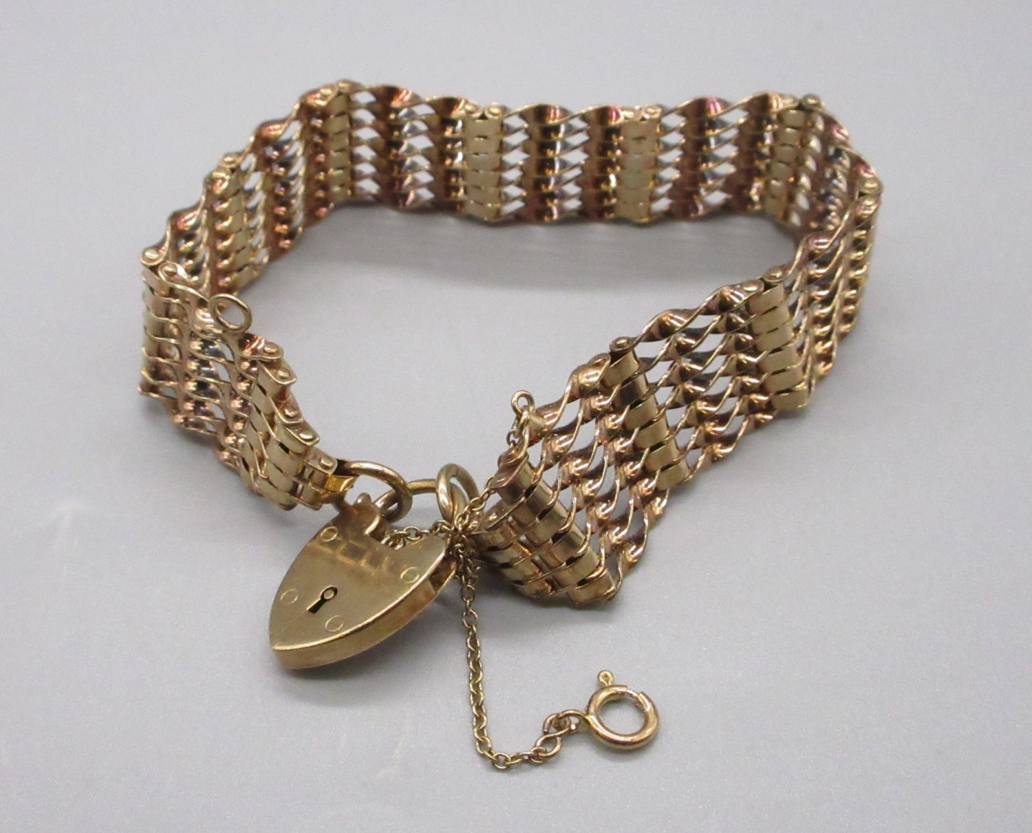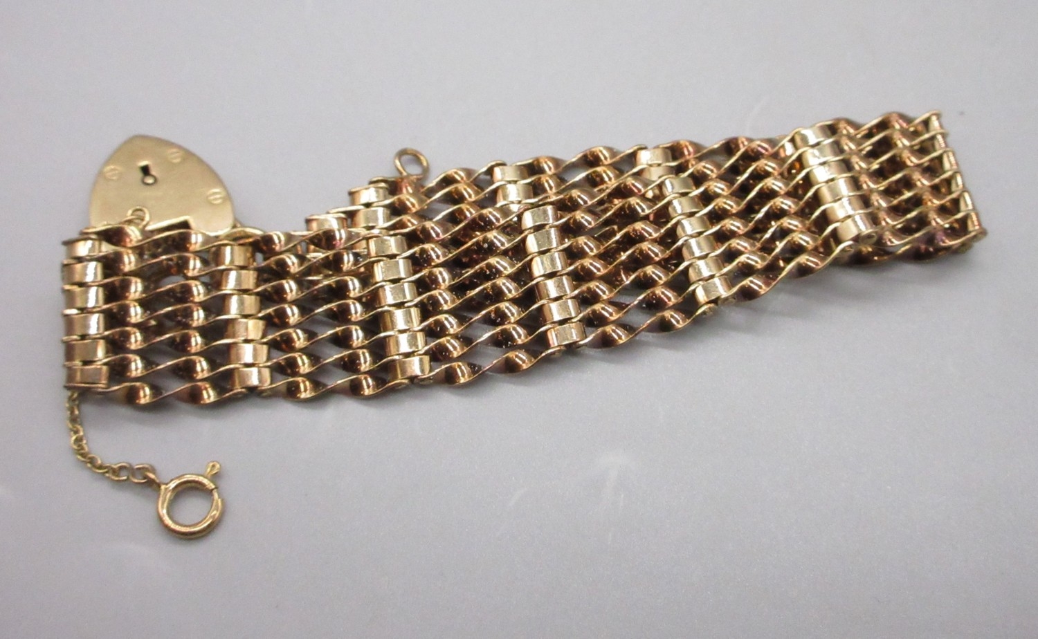 9ct stamped gold mesh bracelet with a 9ct stamped love heart lock (20g)