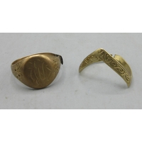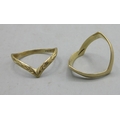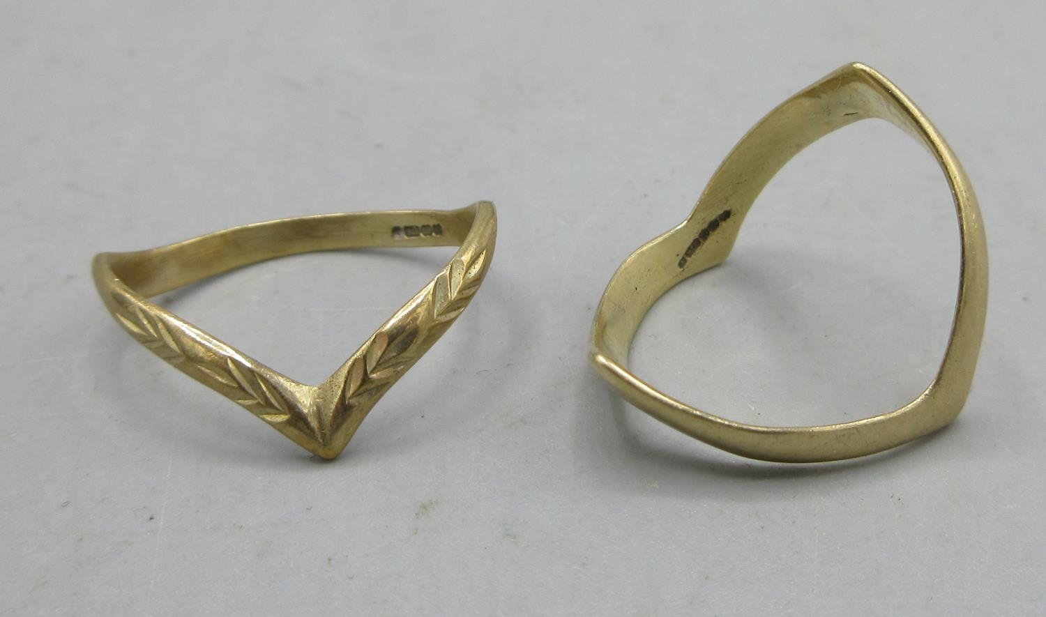 Two 9ct yellow gold V shaped rings, sizes O and M1/2, both stamped 375, 3.46g