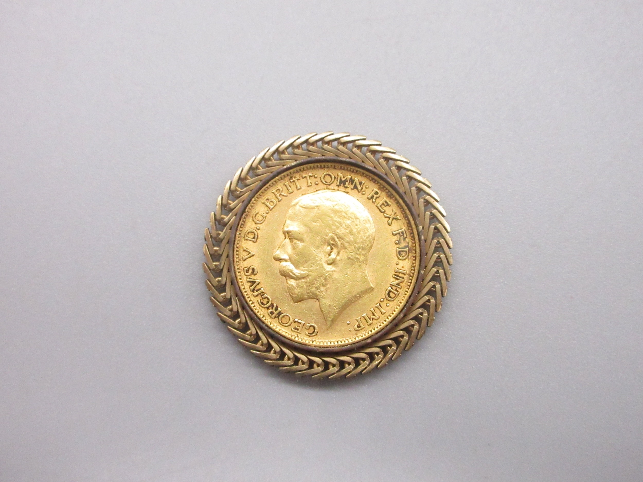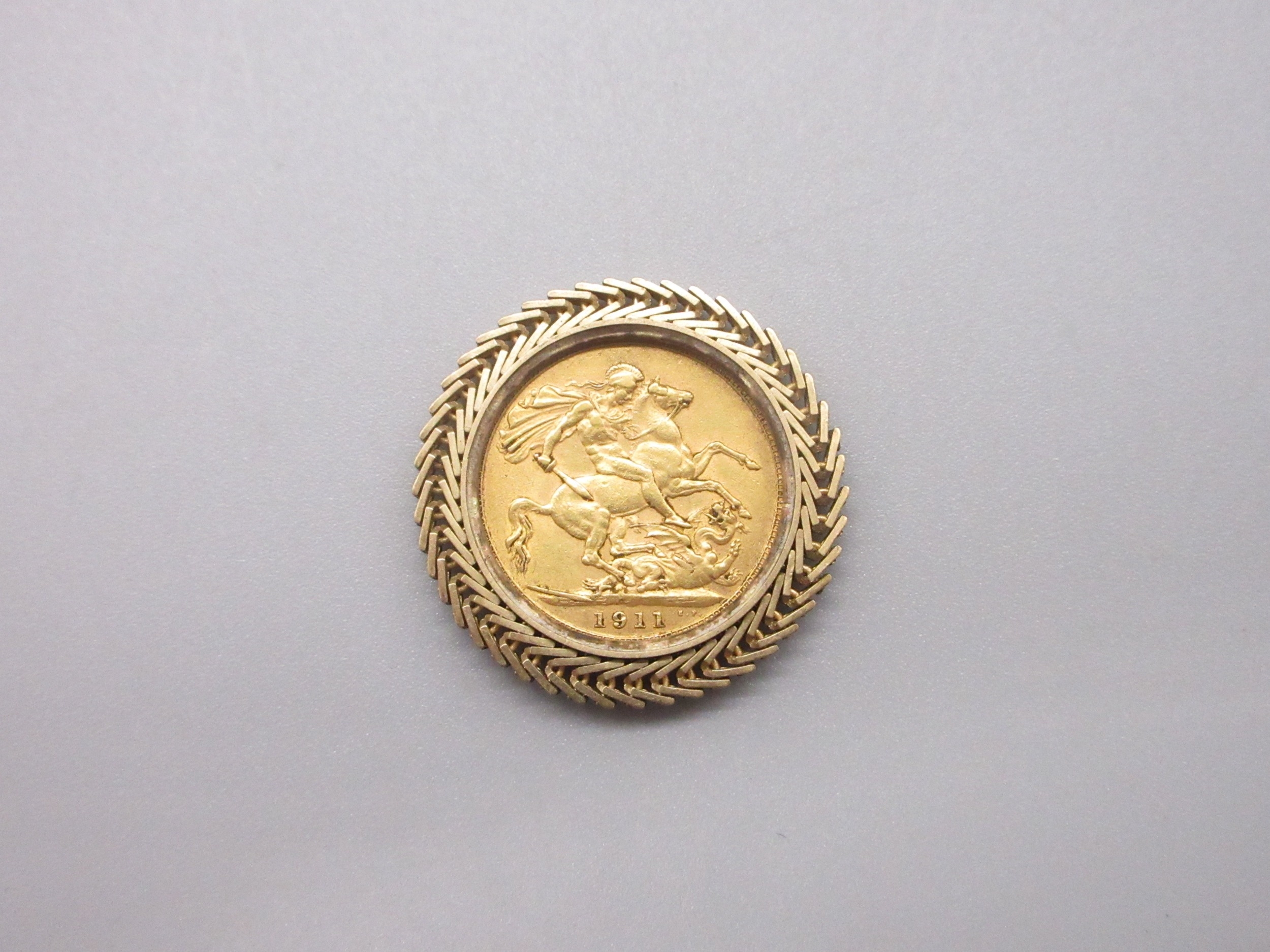 George V (1910-1936) 1911 Sovereign in yellow metal mount (13g)