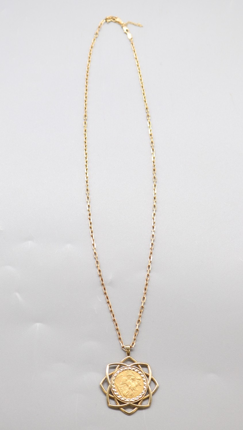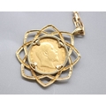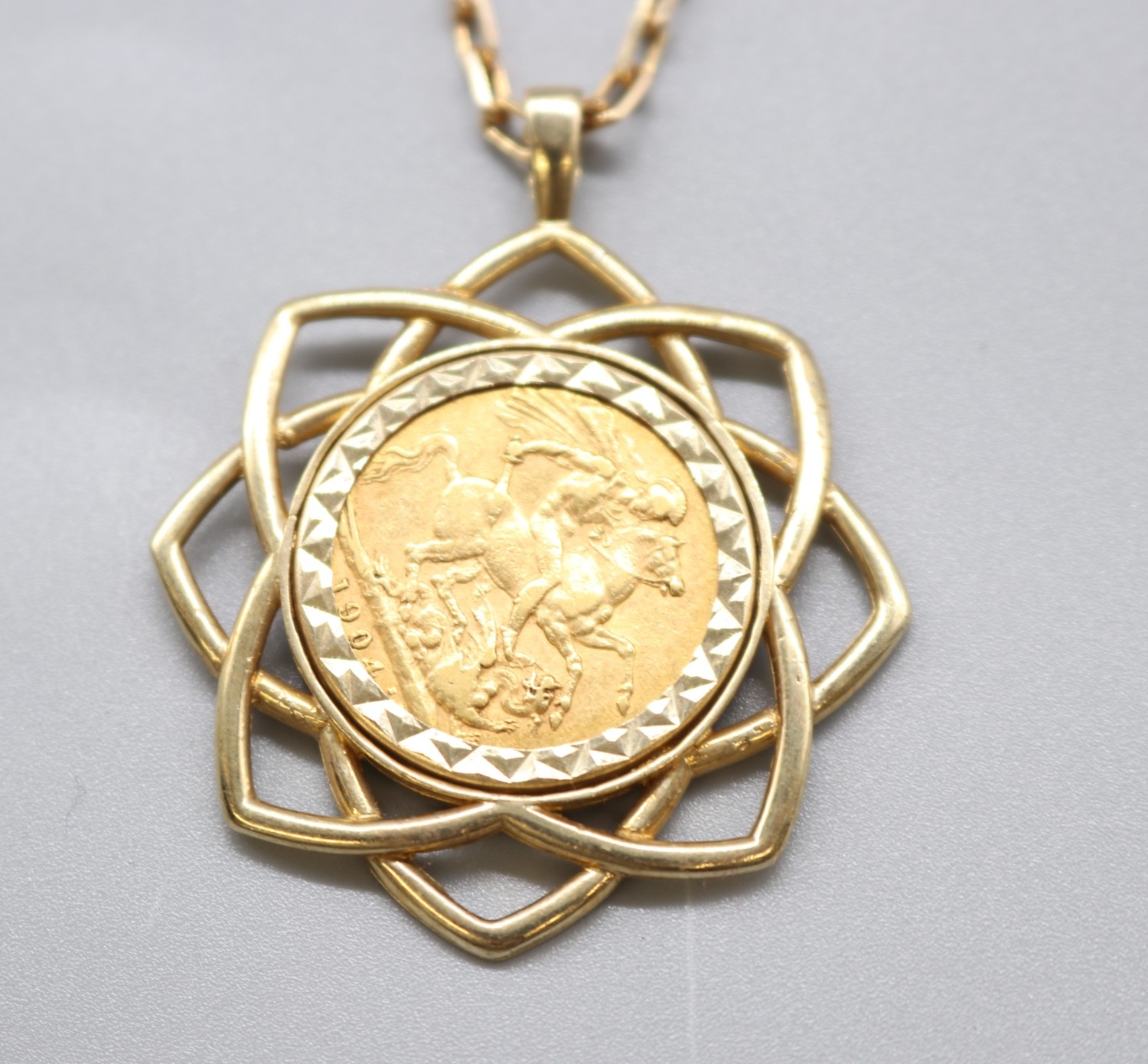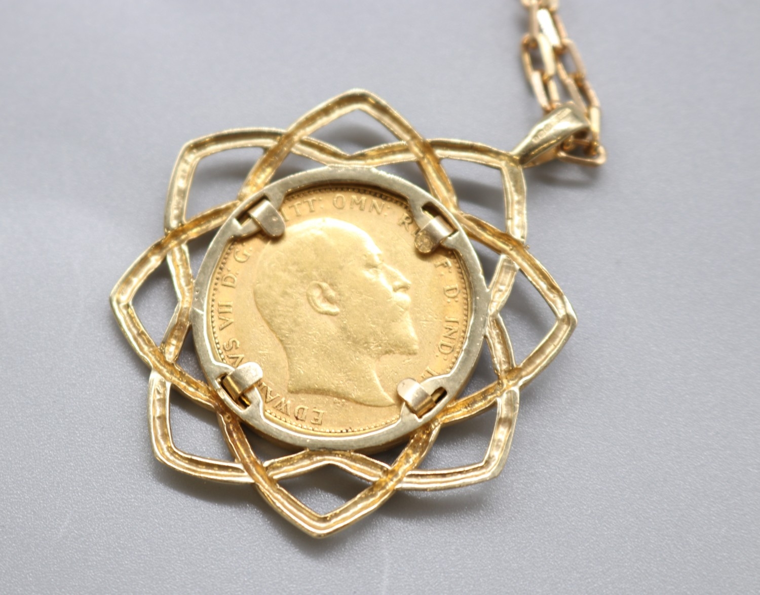 Edward VII 1904 sovereign in 9ct hallmarked mount with .375 stamped necklace, L56cm (21.g)