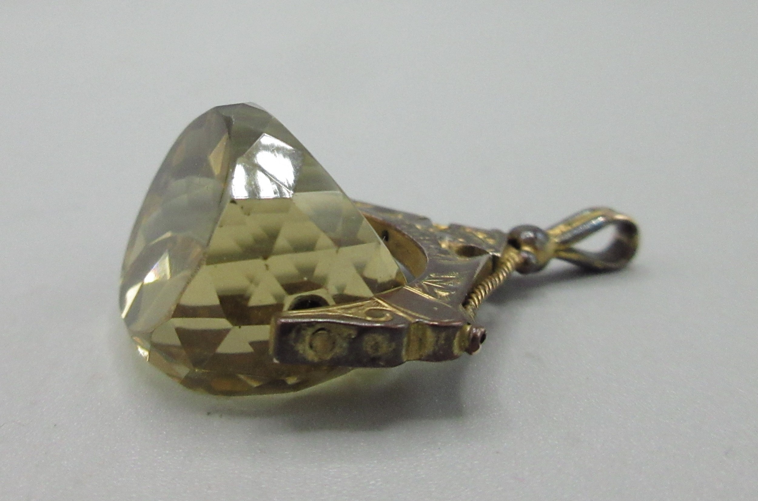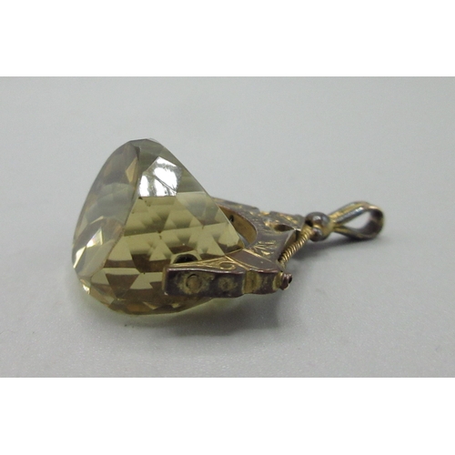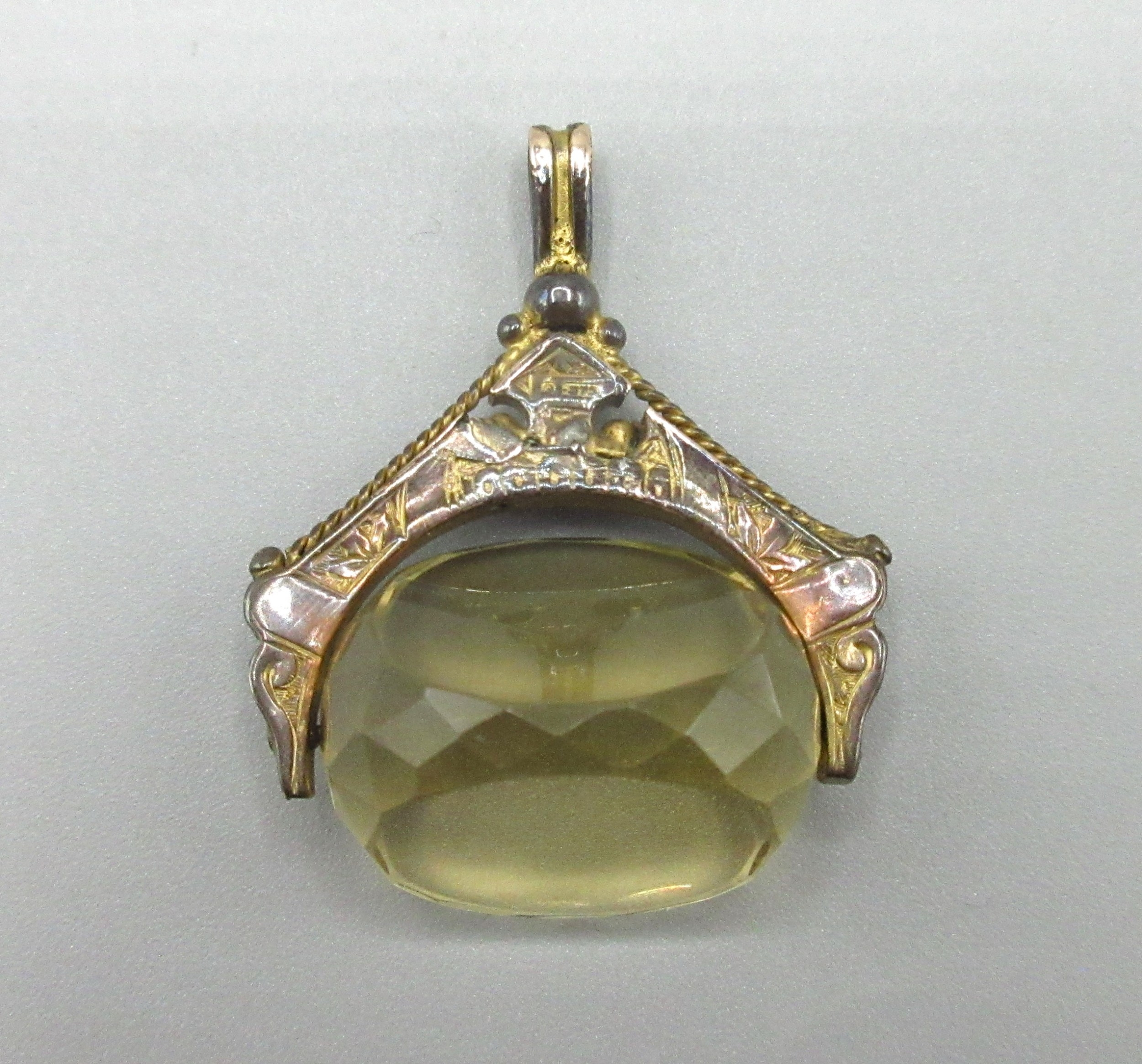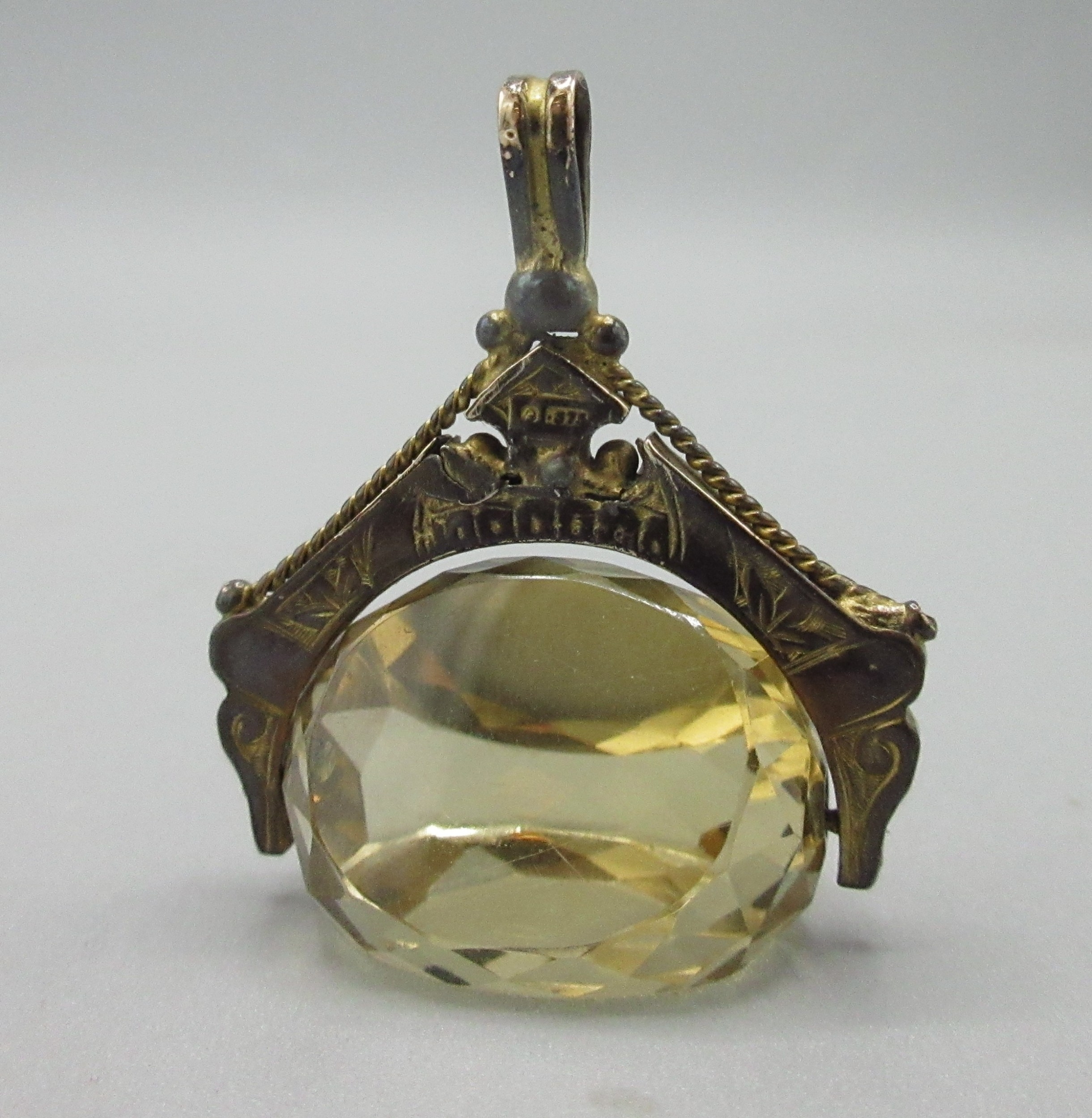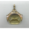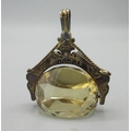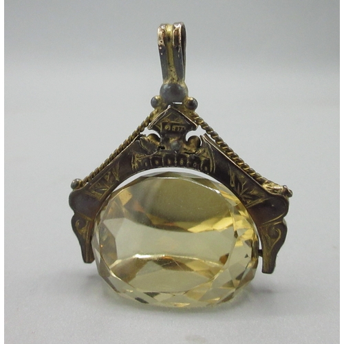 9ct rose gold and faceted citrine swivel fob, stamped 375, W3cm drop length 4cm, gross 8.7g