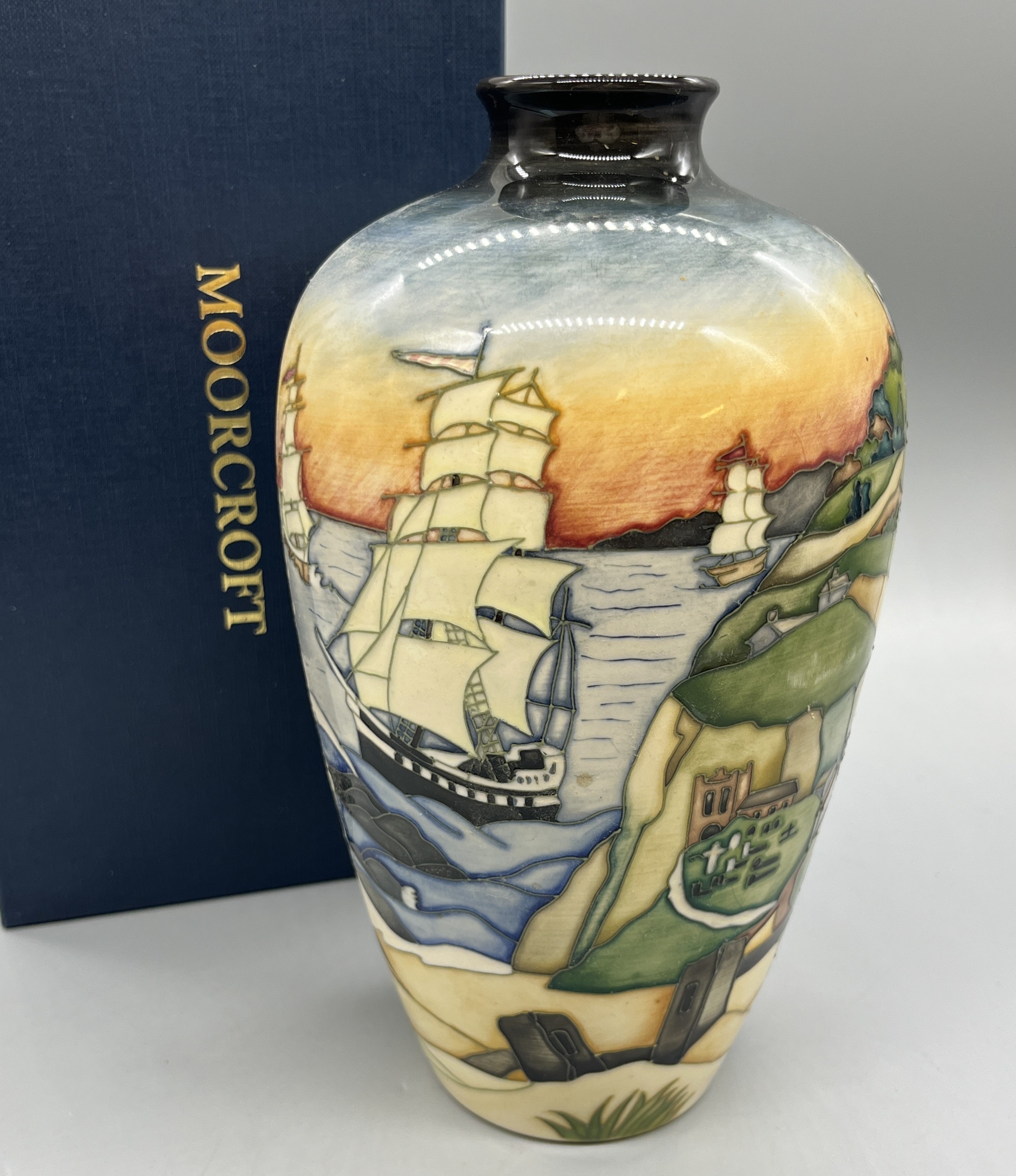 Moorcroft Pottery 'Smugglers Cove' trial vase, dated 2010 to base, with box, H25cm