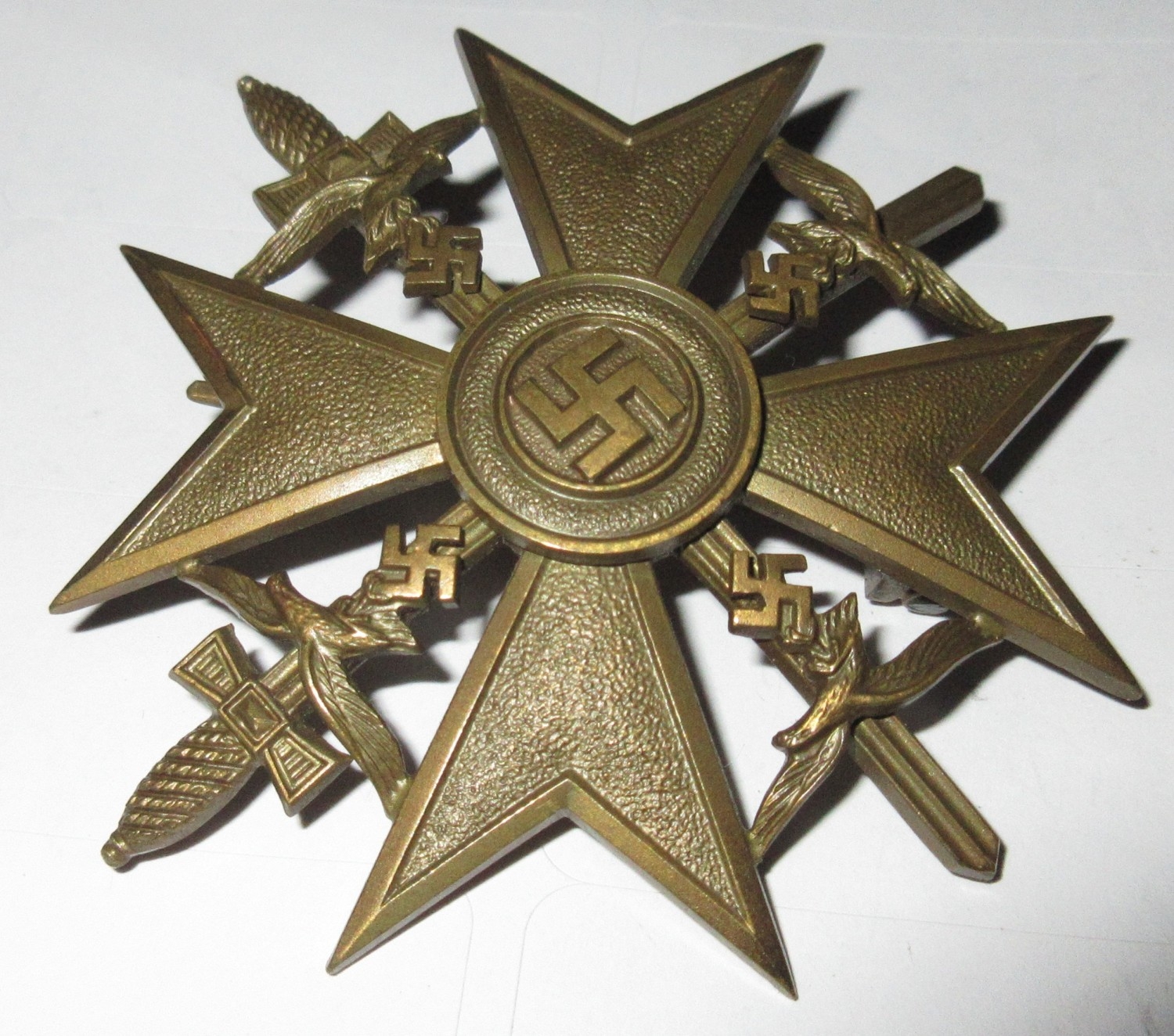 German Spanish Cross with swords in bronze with pin. Award given to German military personnel who fought in the Spanish Civil War 1936- 1939