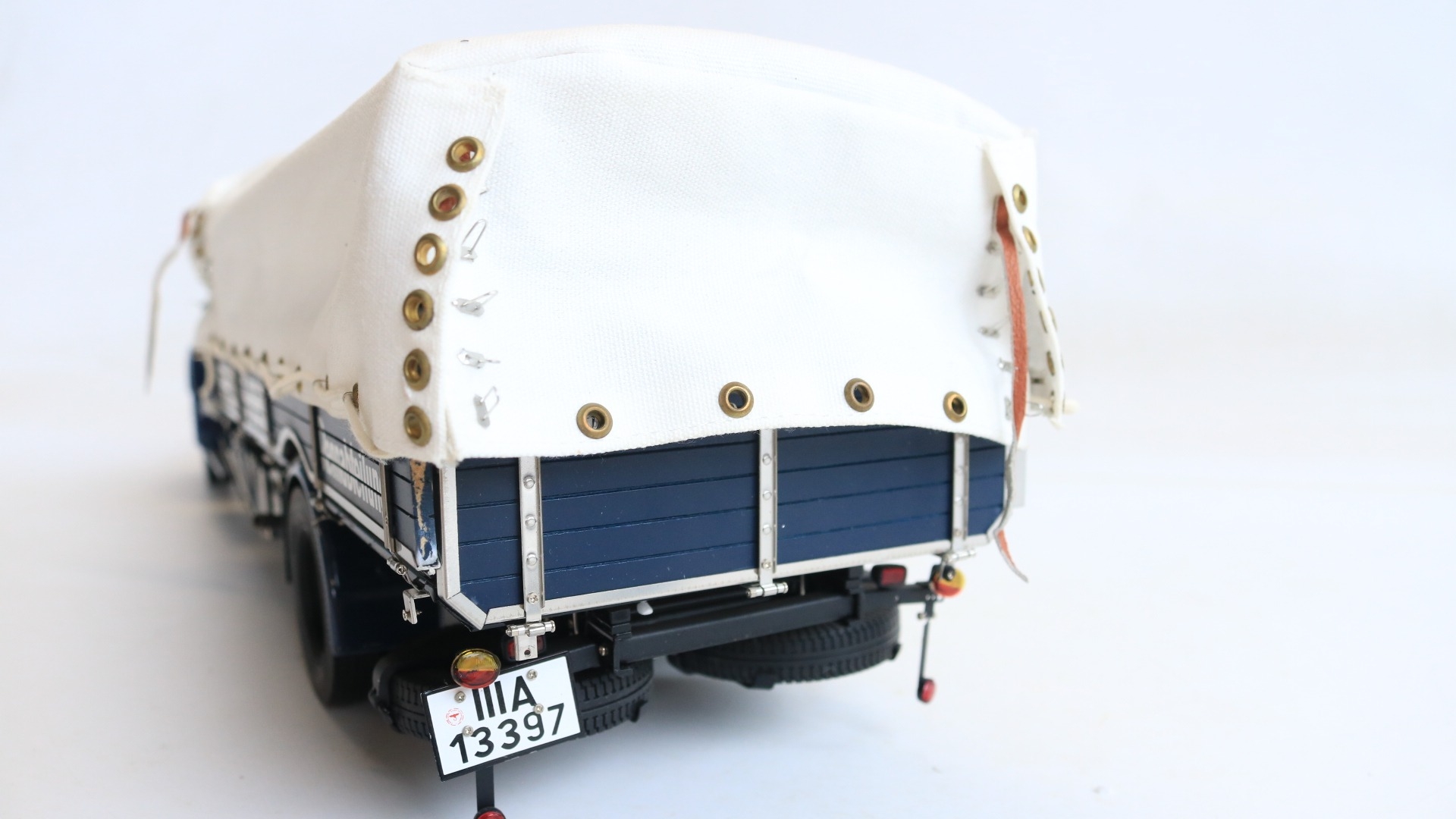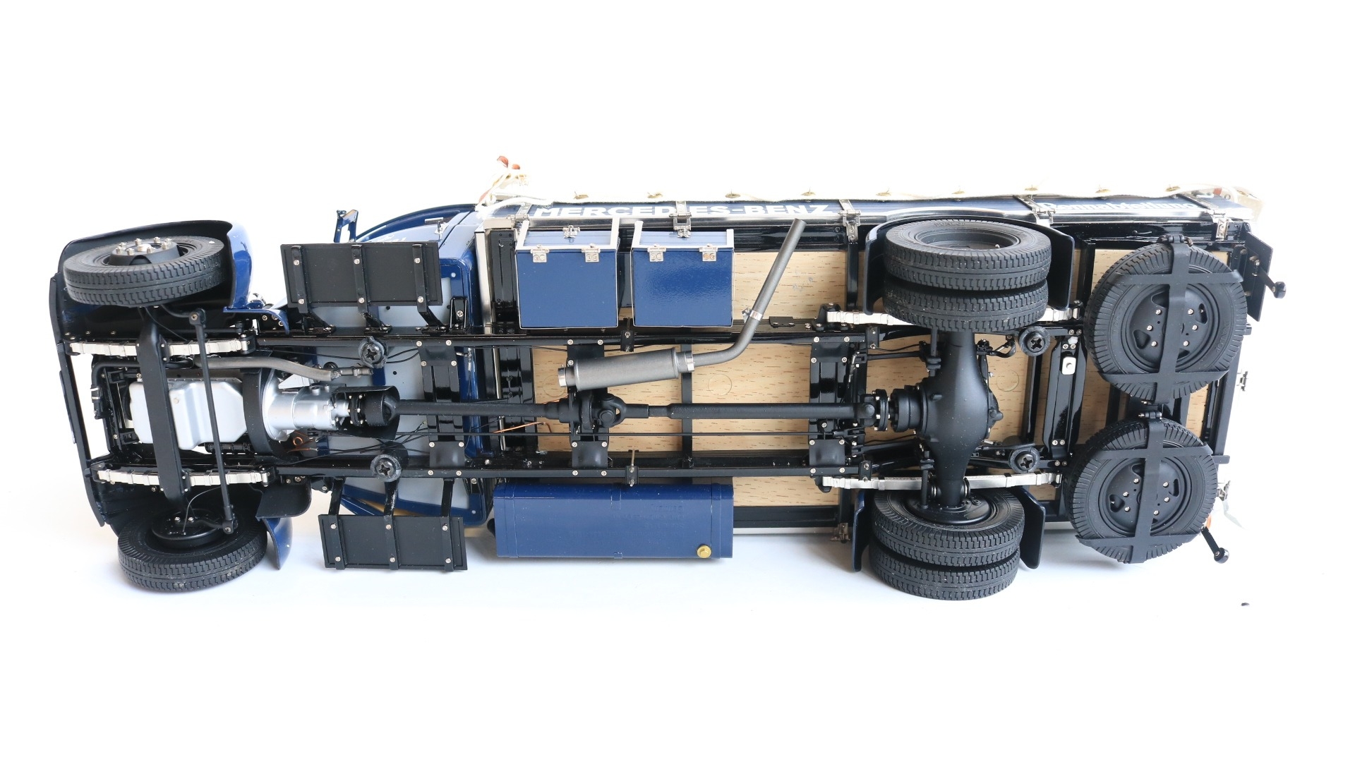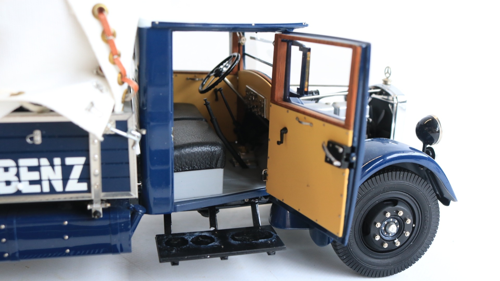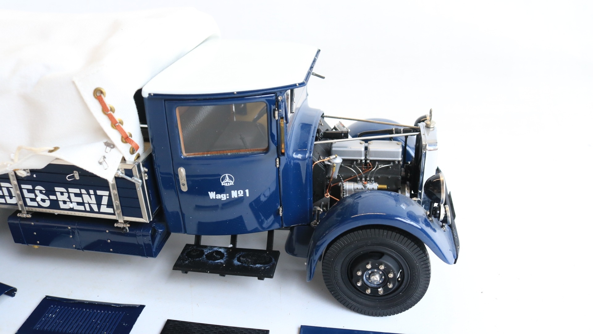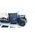 CMC 1/18 scale M-144 Mercedes-Benz Renntransporter LO 2750, 1934-38 highly detailed diecast metal truck model, overall condition is good but please note there is some damage and detached parts, for example right side cab door handle snapped off and missing, some trim parts have partially or fully come away, one windscreen wiper bent, some dents to upper bonnet cover etc., also please note inner box tray securing lugs snapped with top sections still screwed into the model, all loose parts since bagged, inner presentation box very good, outer card sleeve good with some crush damage, marks and tears, complete with paperwork/instructions etc.