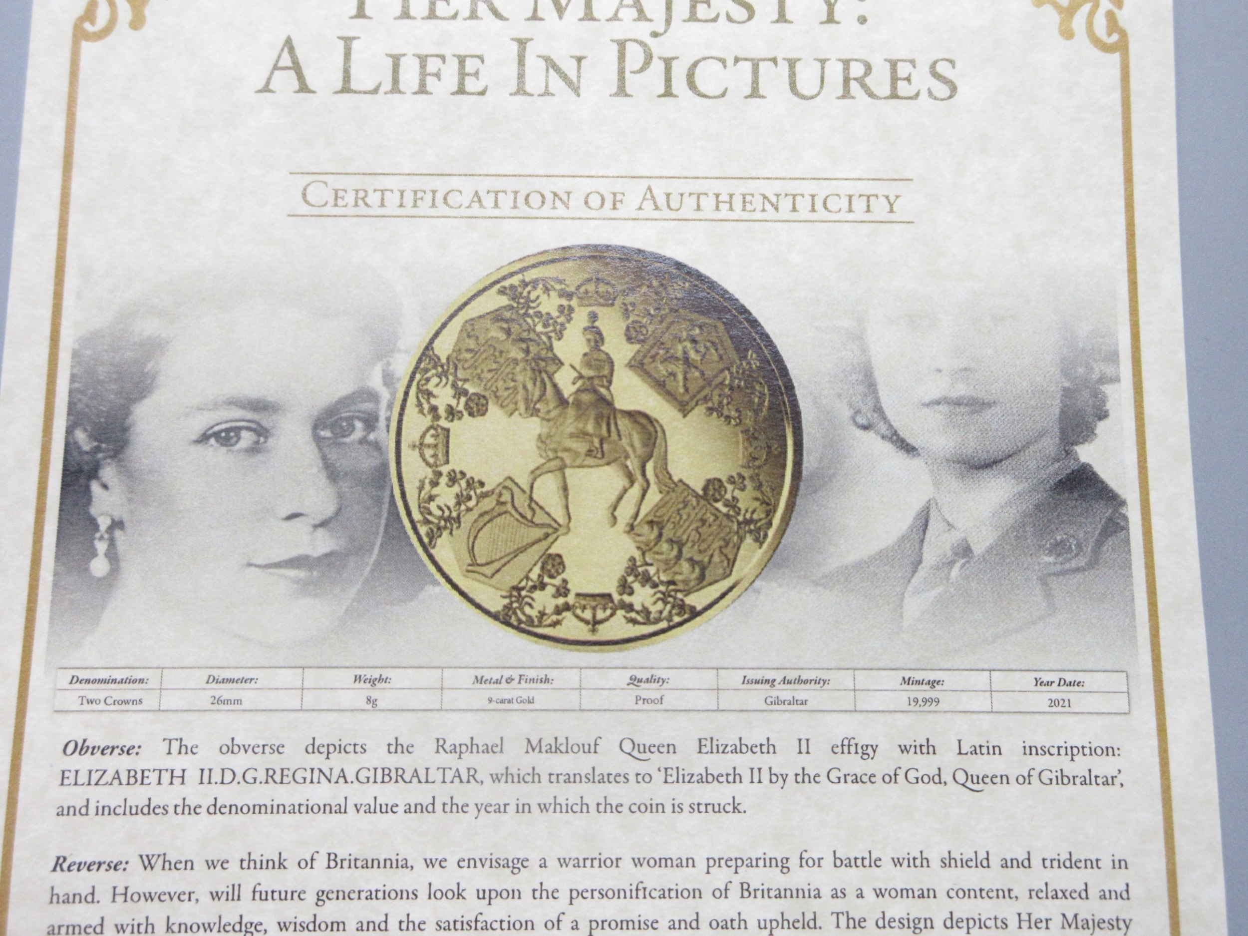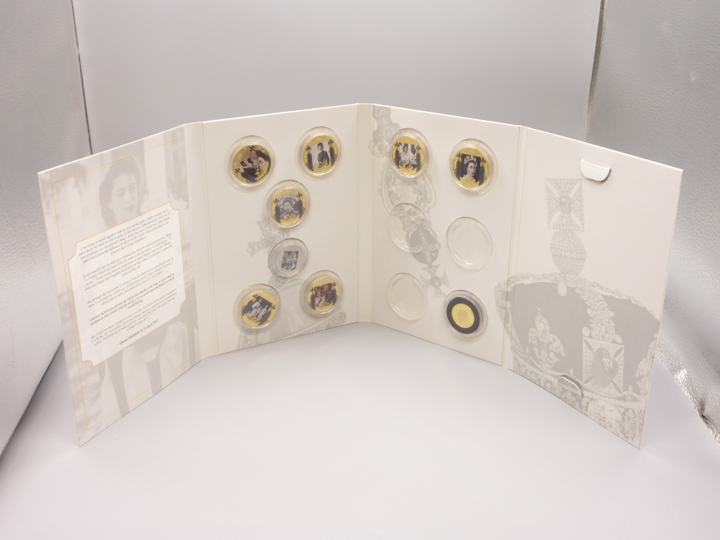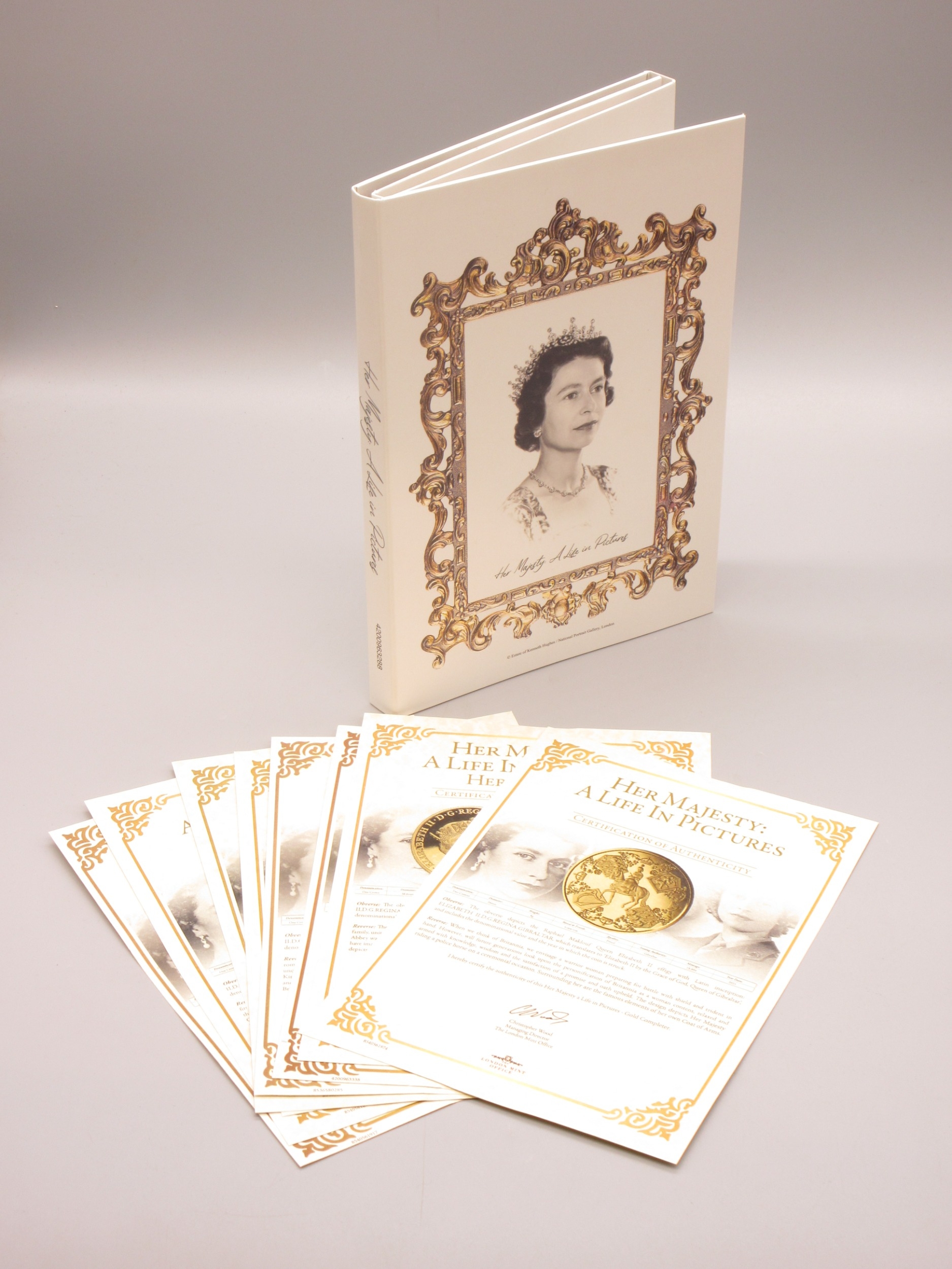 The London Mint Office - Her Majesty A Life in Pictures 12 coin set (incomplete) cont. 9 plated coins and a 9ct 8g coin, all coins encapsulated with COAs