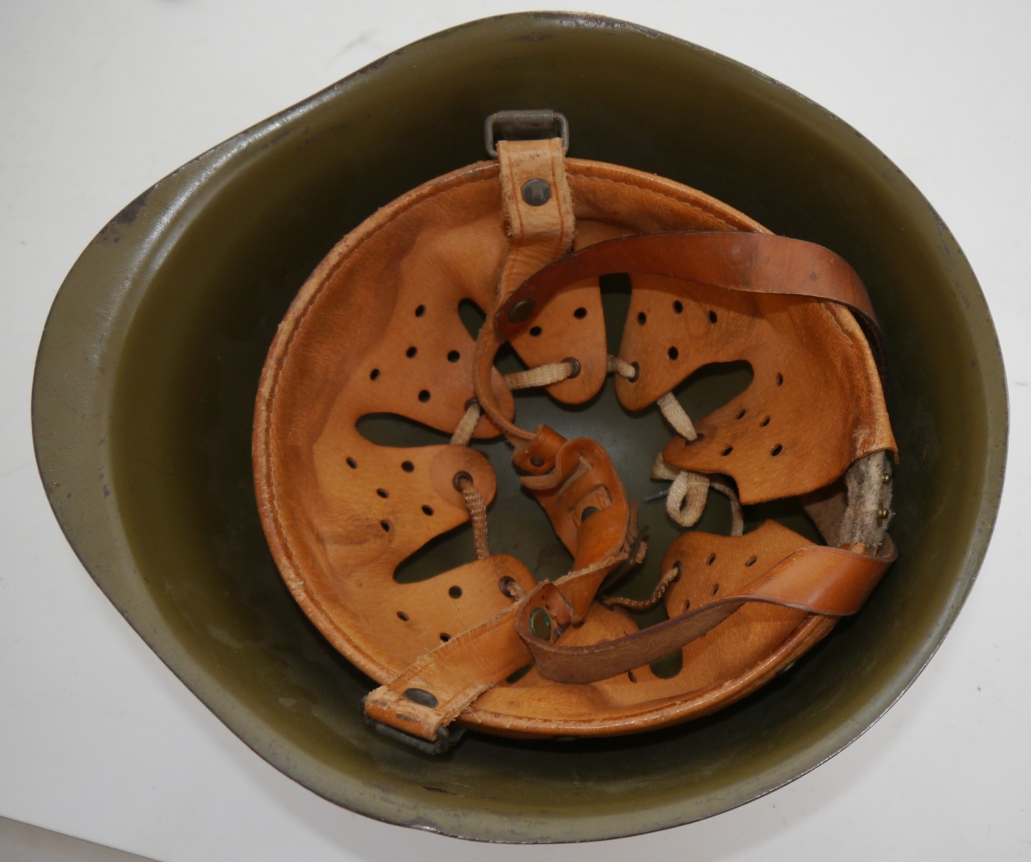 Post War Czech Slovakia M-1953 Combat Helmet, complete with full leather liner and chin strap.