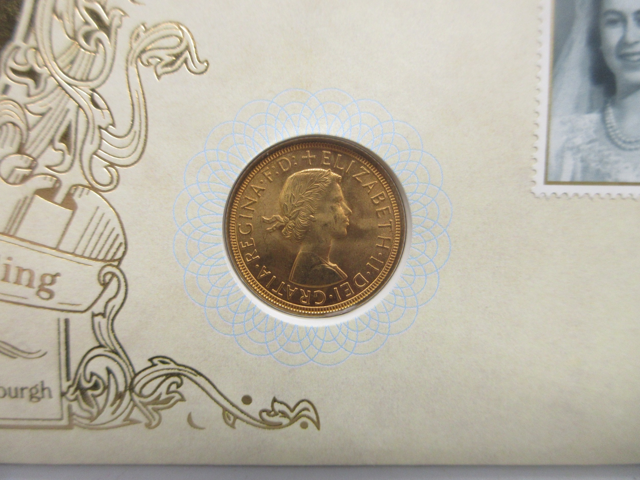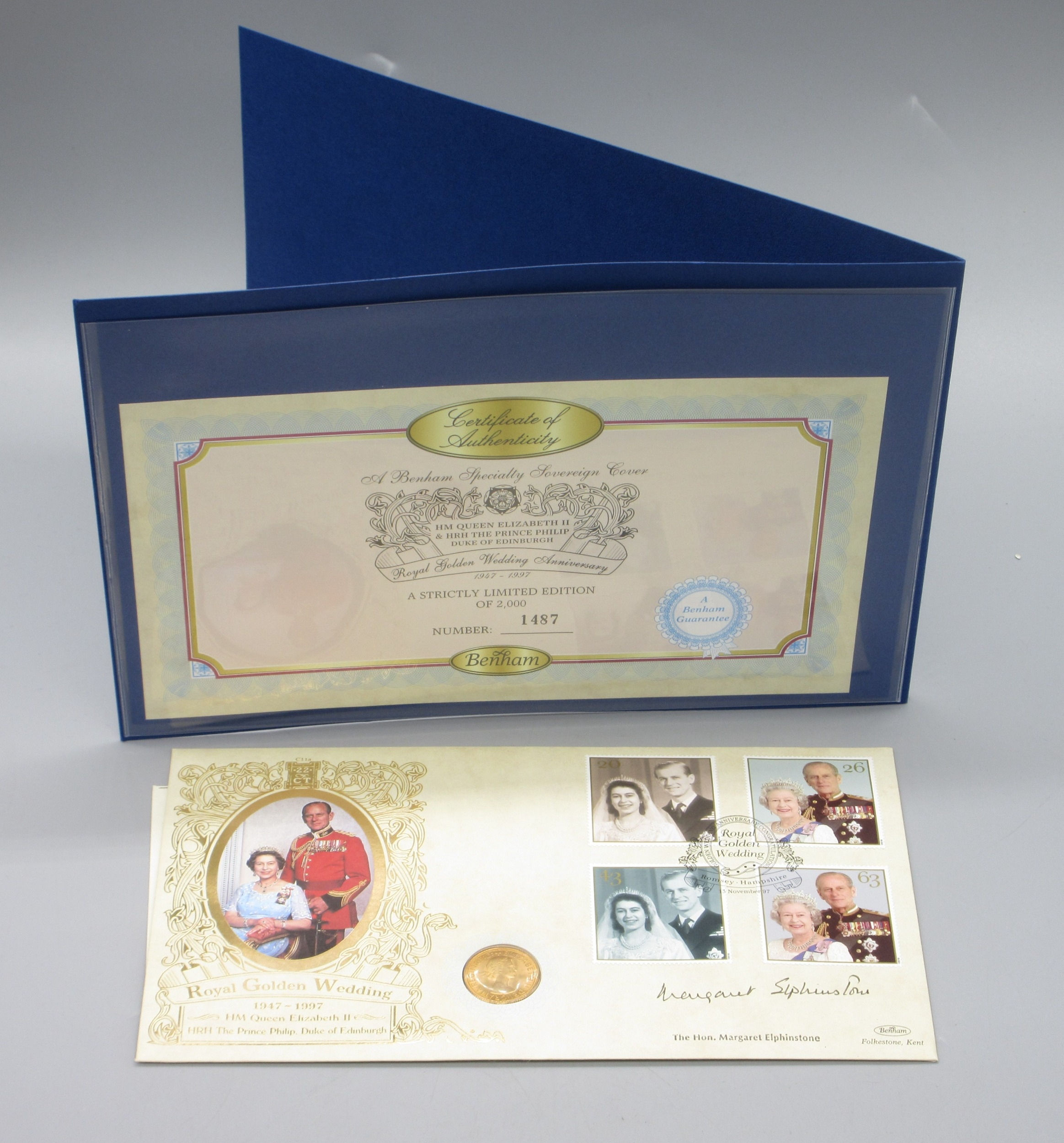Benham Speciality Sovereign cover Limited Edition 1487/2000 cont. 1958 Queen Elizabeth II Sovereign, with COA