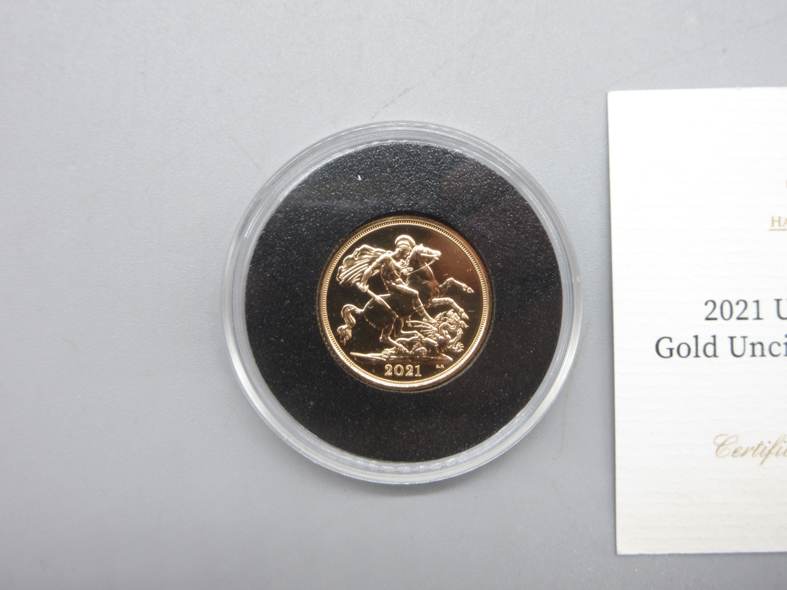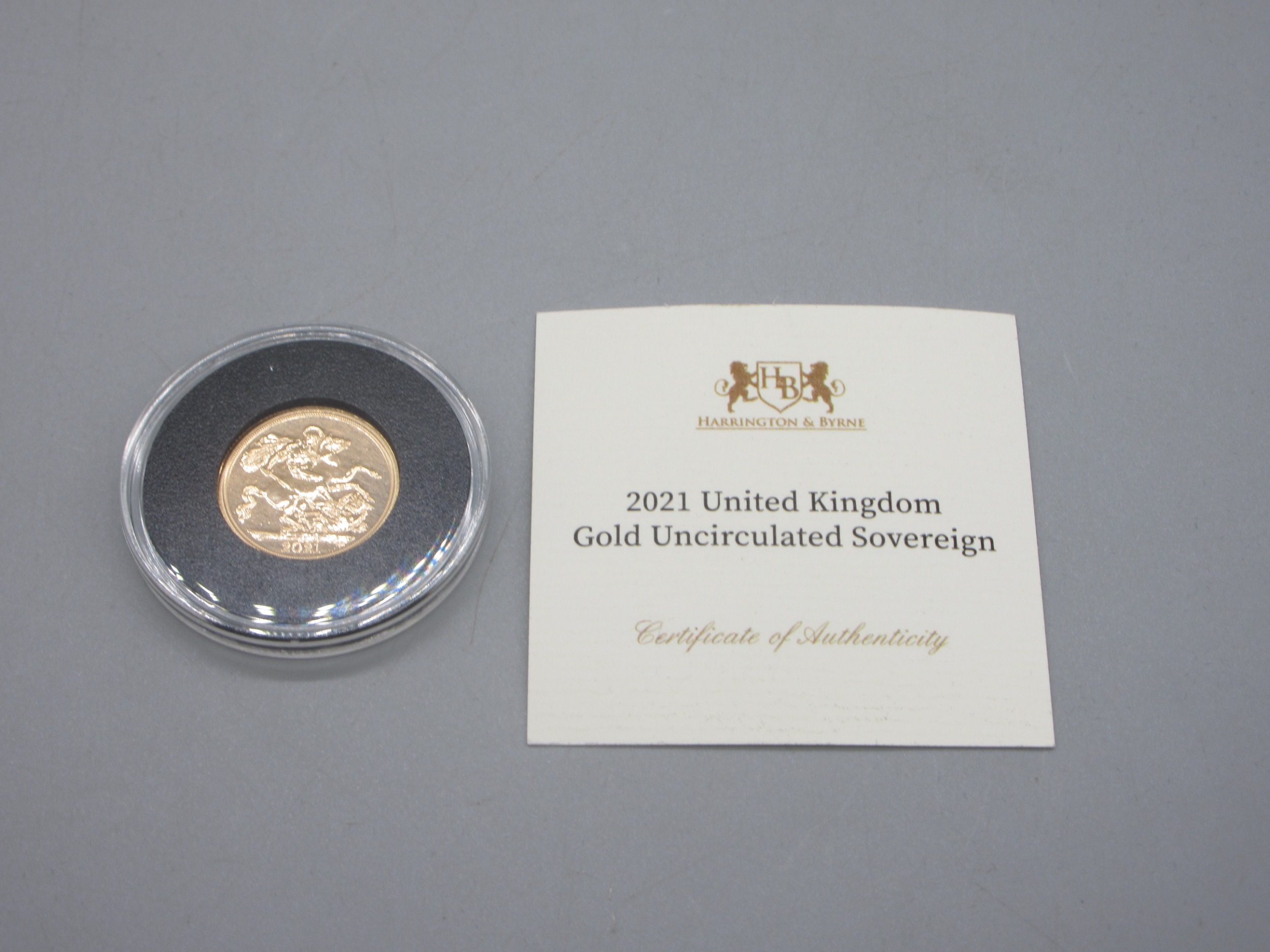 Queen Elizabeth II (1952-2022) 2021 Gold Sovereign Encapsulated with COA from Harrington & Byrne