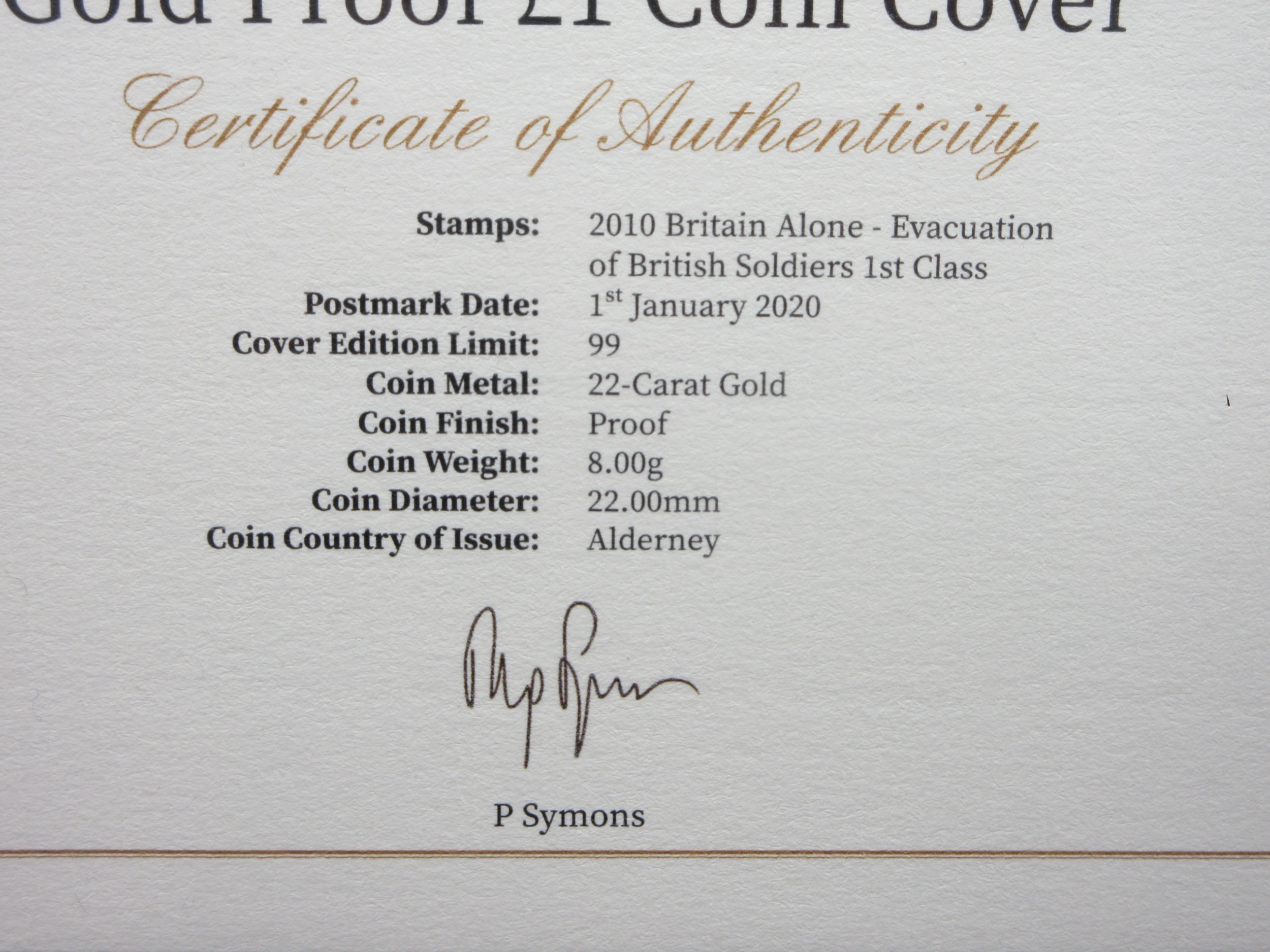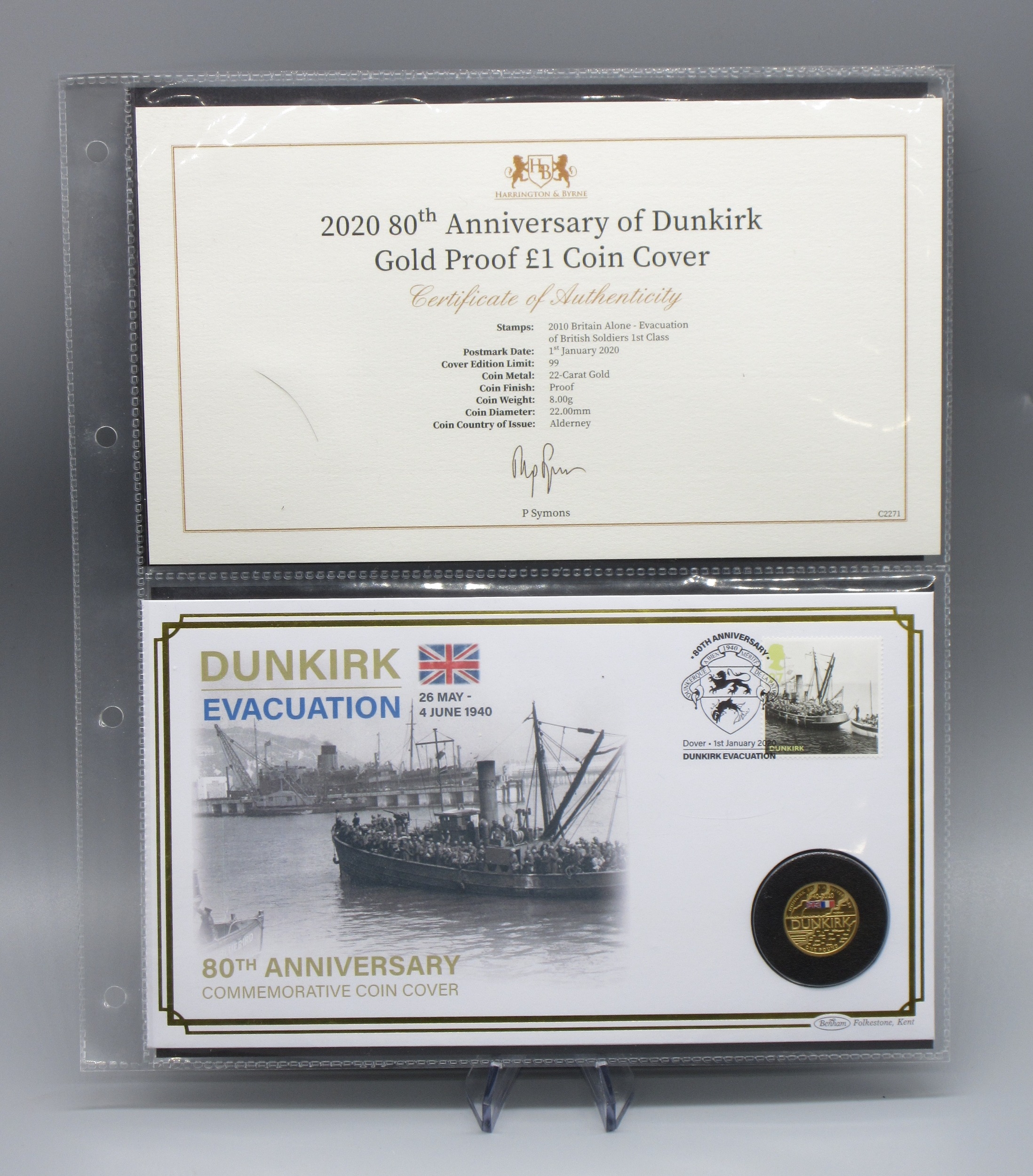 Harrington & Byrne - 2020 80th Anniversary of Dunkirk Gold Proof £1 Coin Cover (22ct 8g) with COA