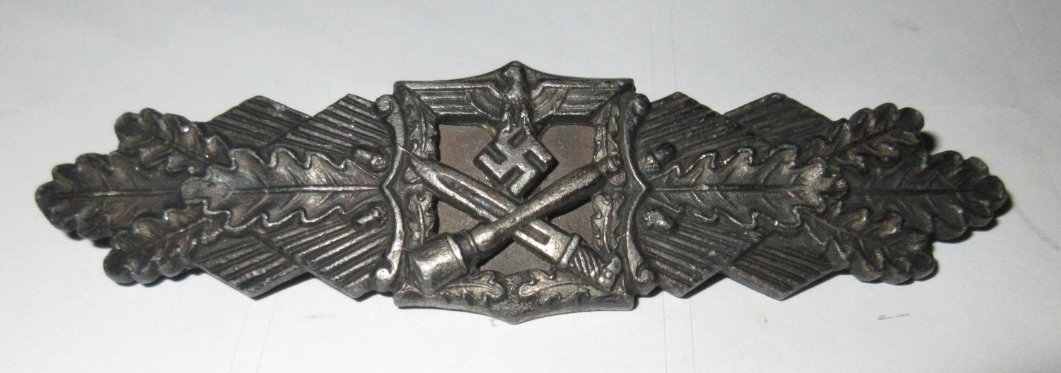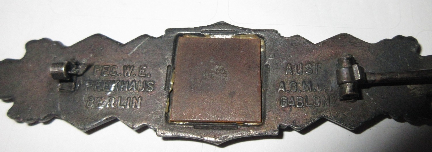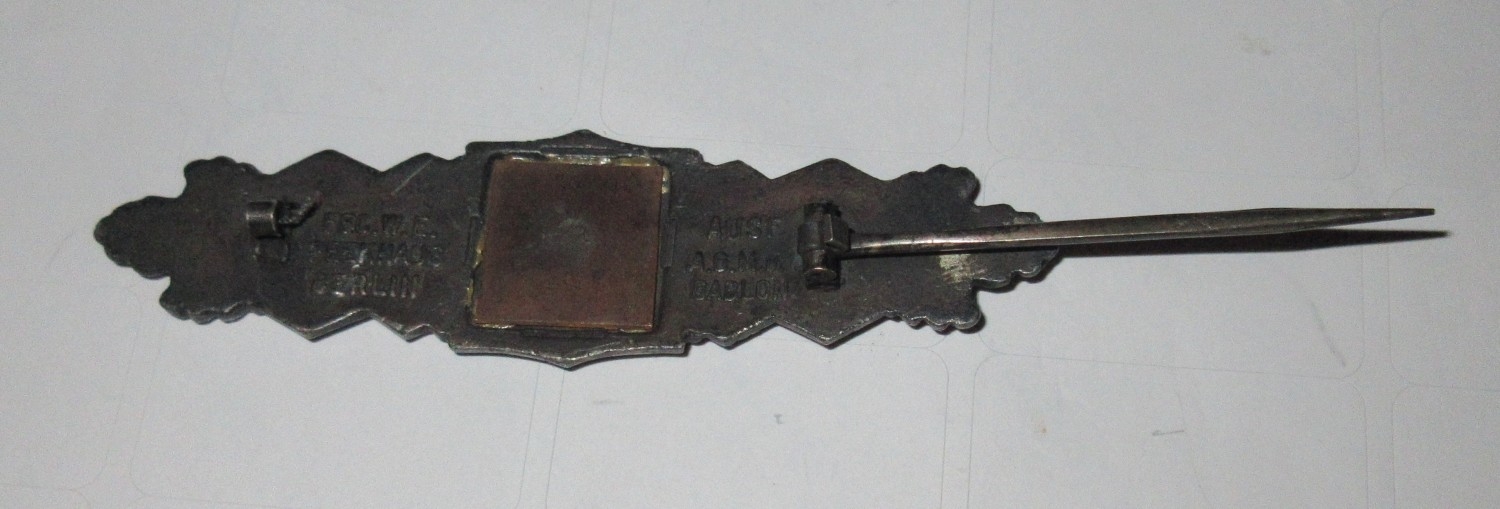 WWII German Silver close combat clasp, with original pin, stamped and copper backing weight
