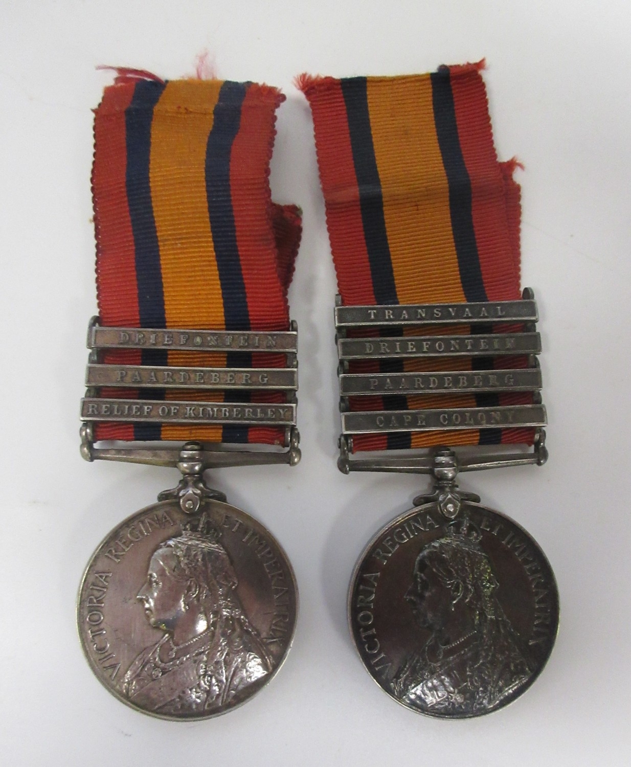 Queens South Africa Medal with three clasps, Driefontein, Paardeberg, Relief of Kimberley. To 4302 Pte J. Taylor Yorkshire Regiment. QSA Medal with four clasps, Transvaal, Driefontein, Paardeberg, Cape Colony. To 4544 Pte W. Cope Gordon Highlanders