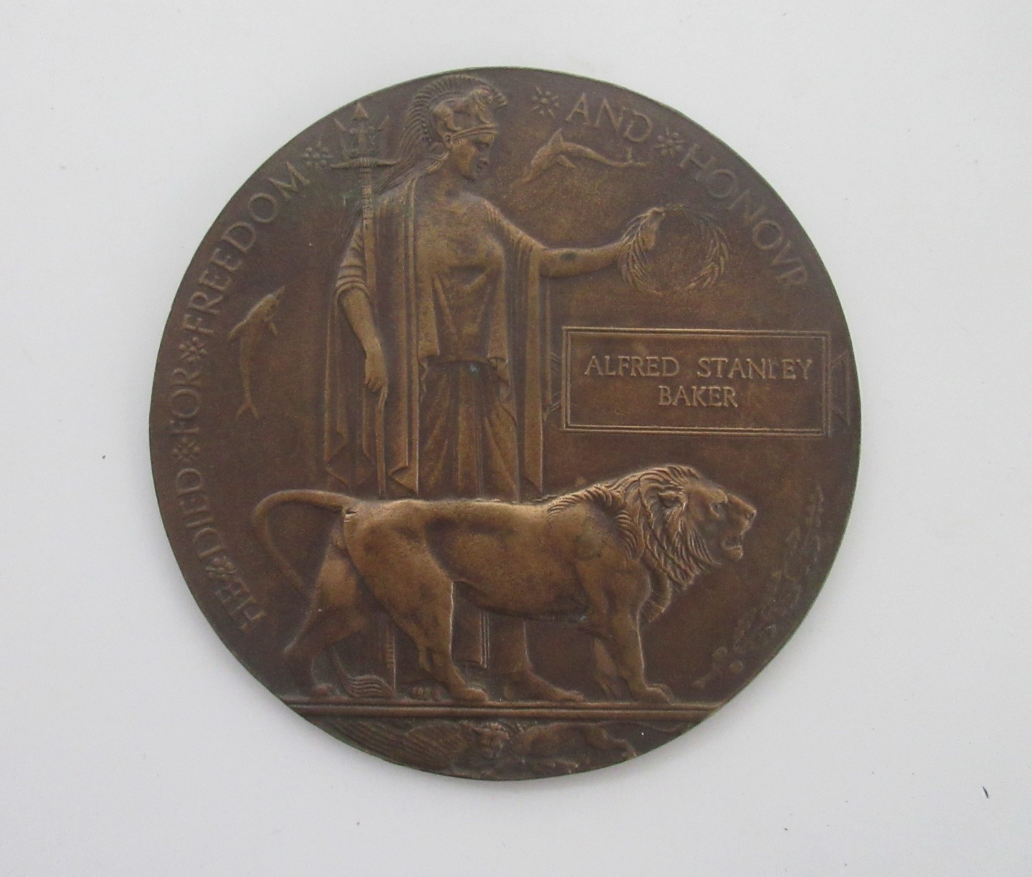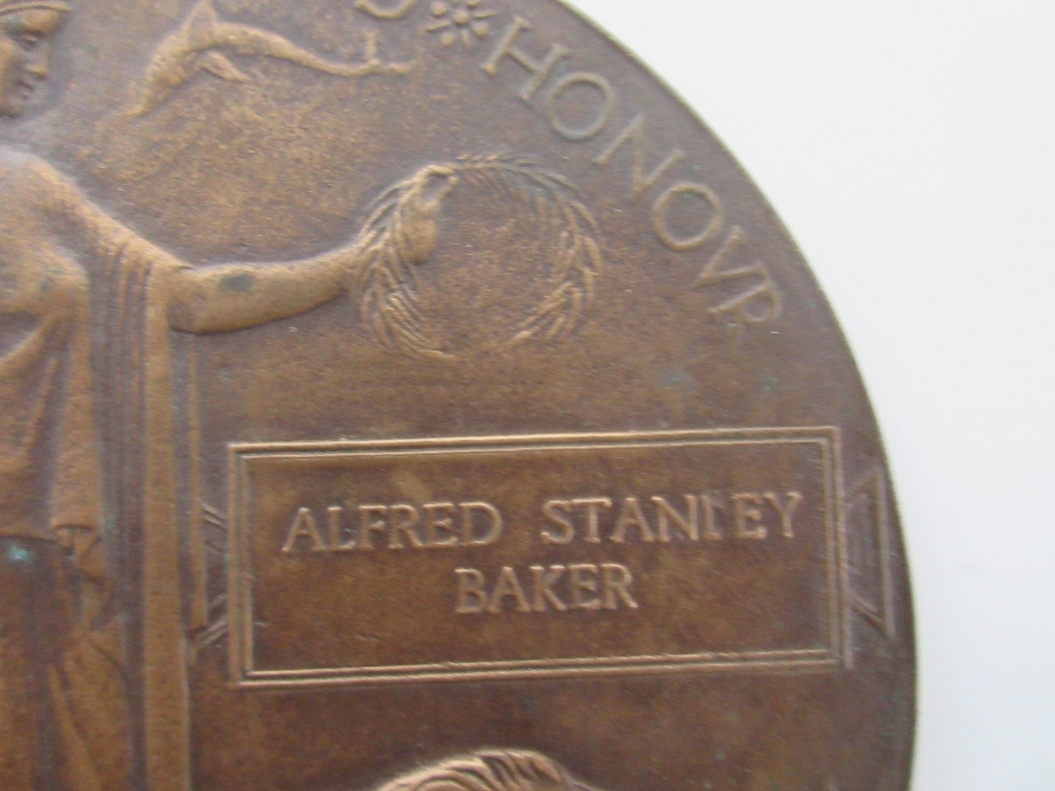 Memorial Plaque sent to the family of Alfred Stanley Baker.