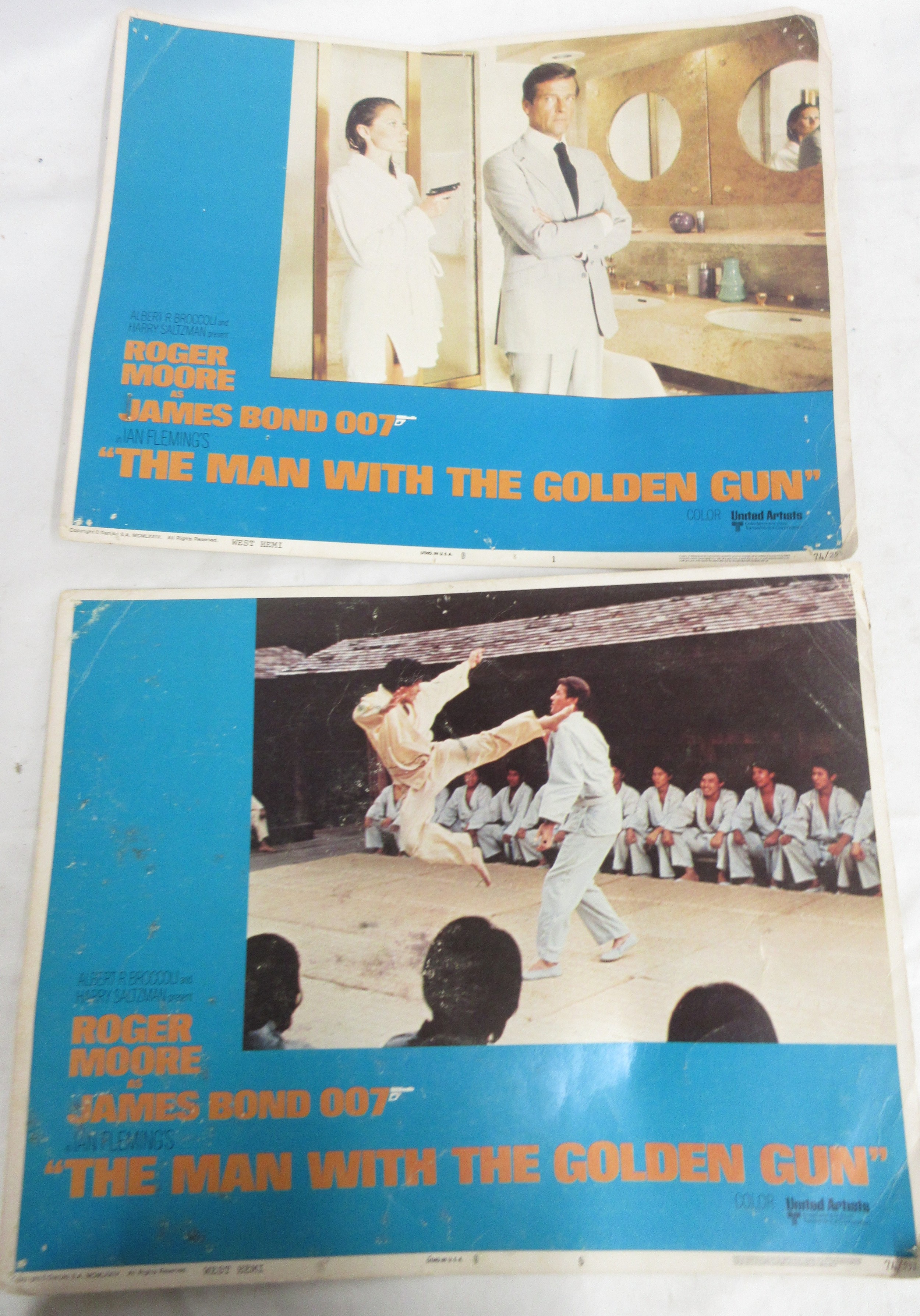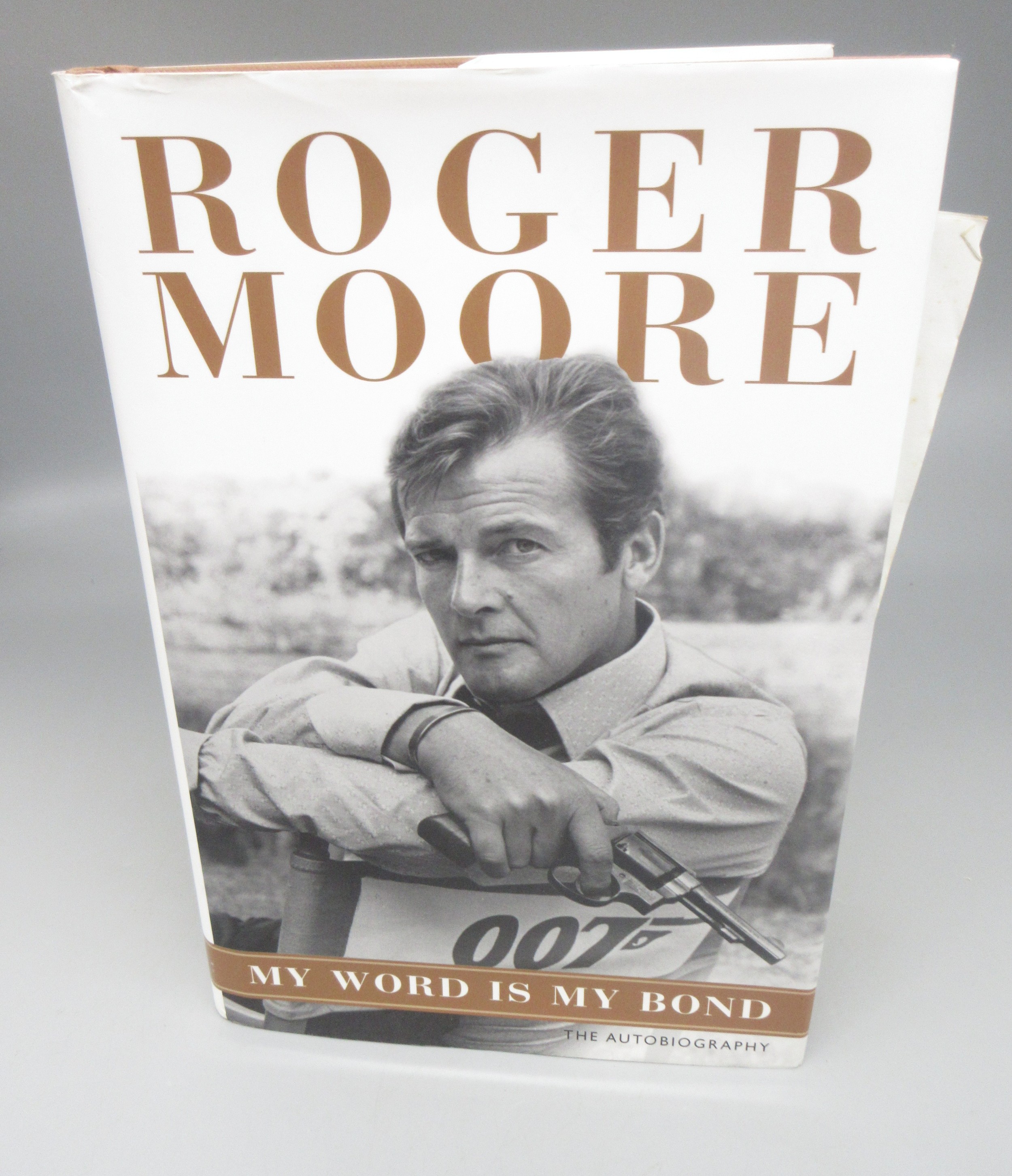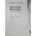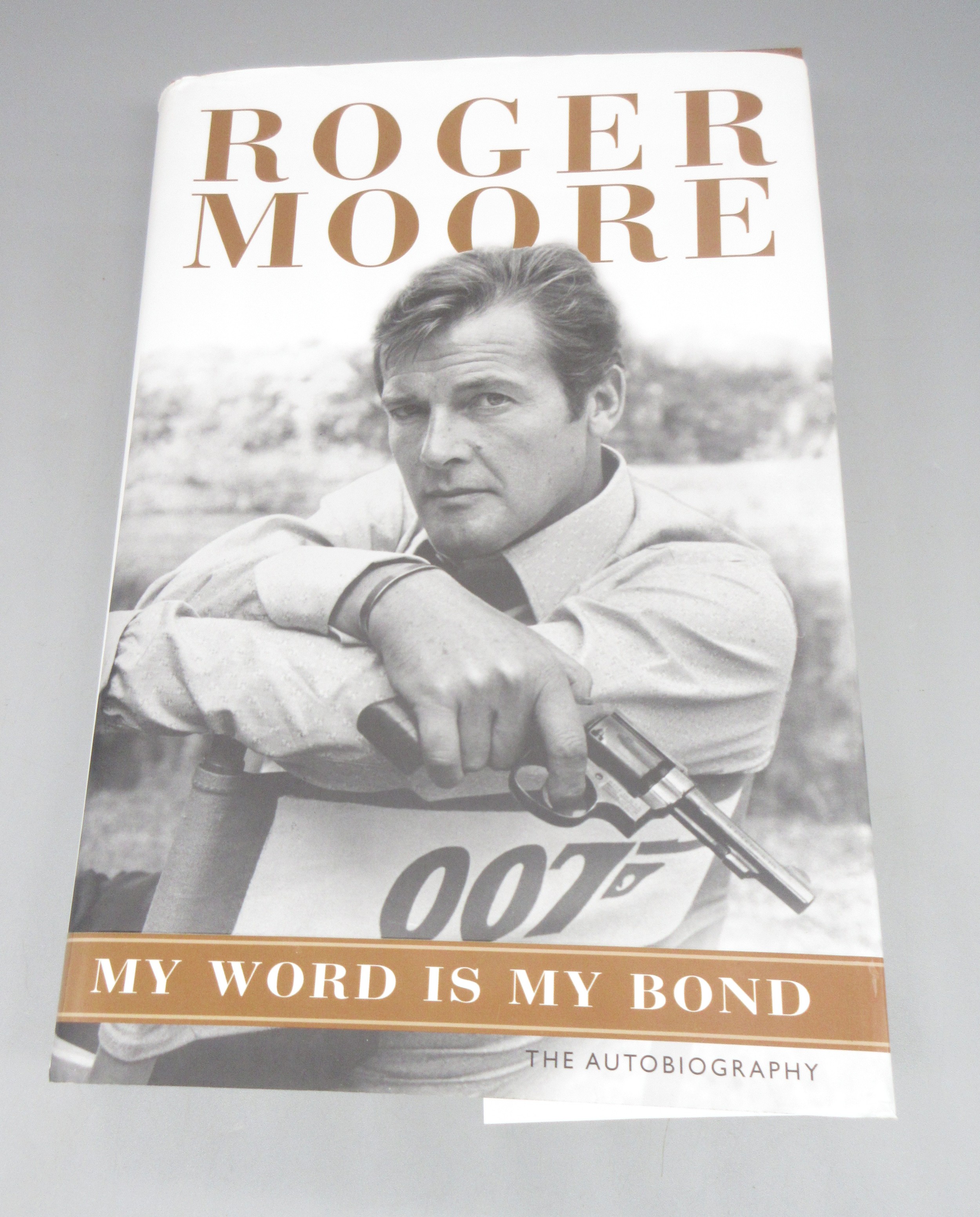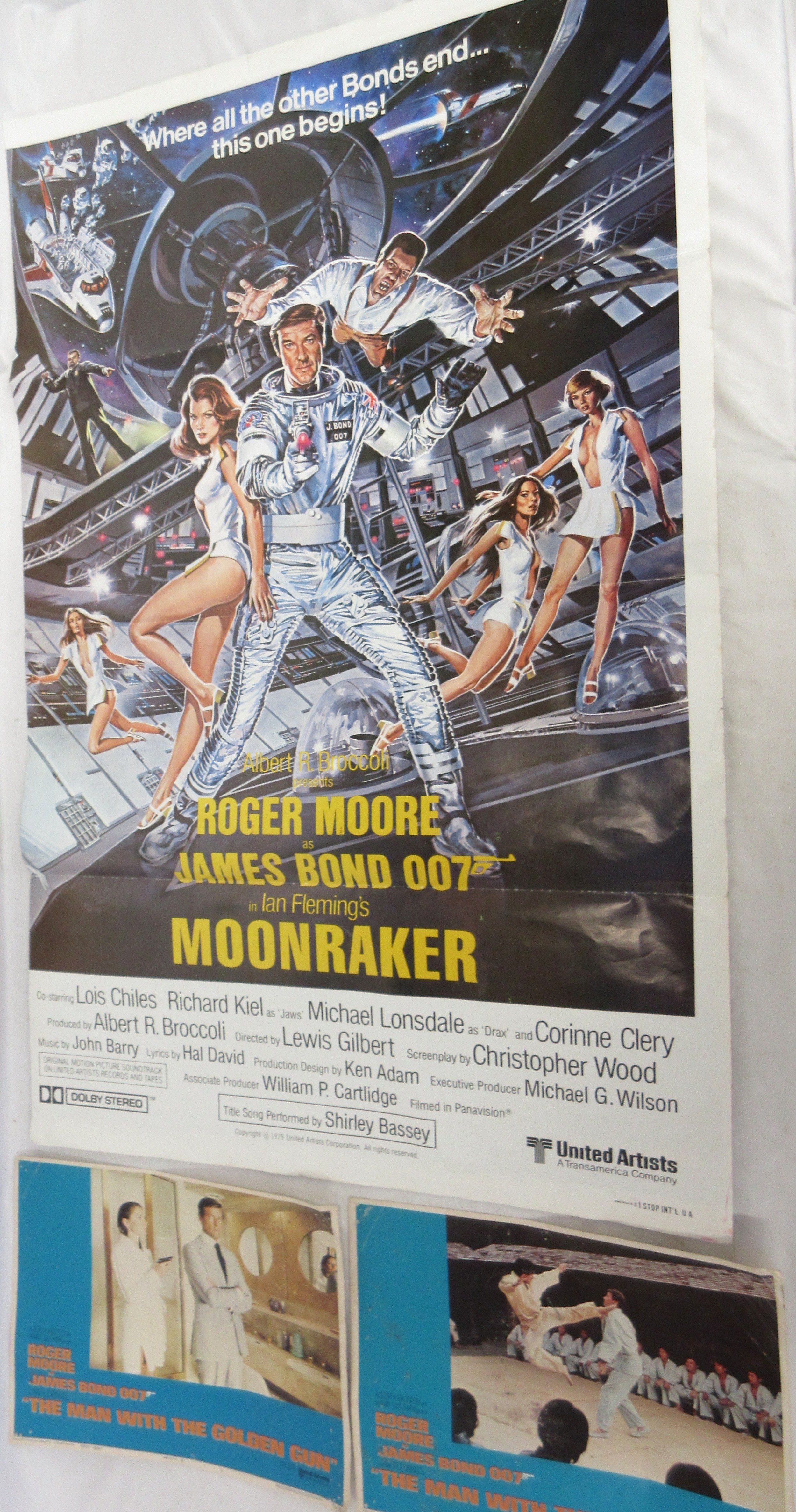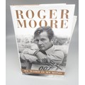 James Bond memorabilia to incl. signed Roger Moore 'My Word is my Bond' book, large Moonraker film poster and two 'The Man with the Golden gun' posters
