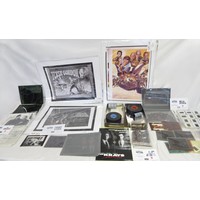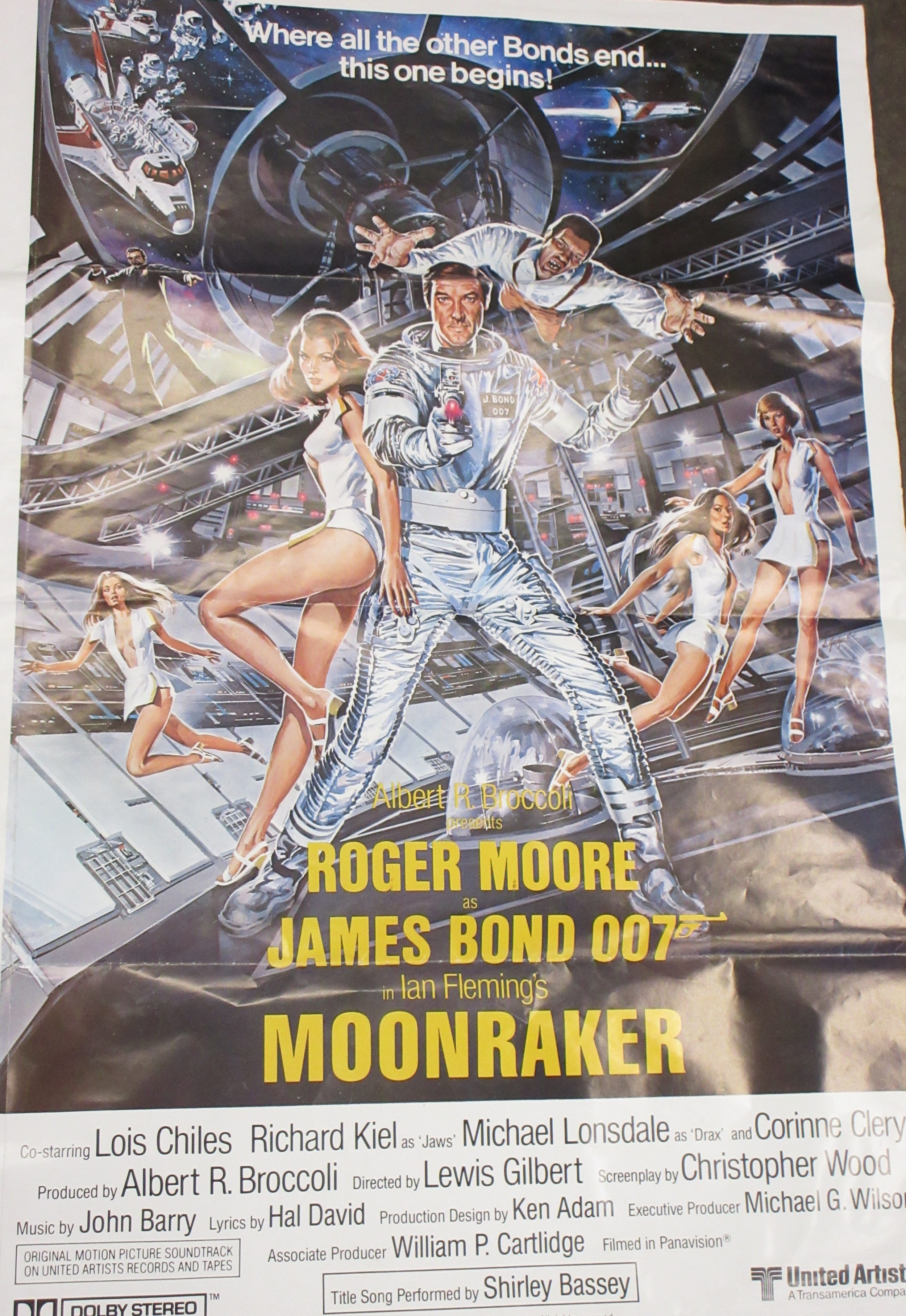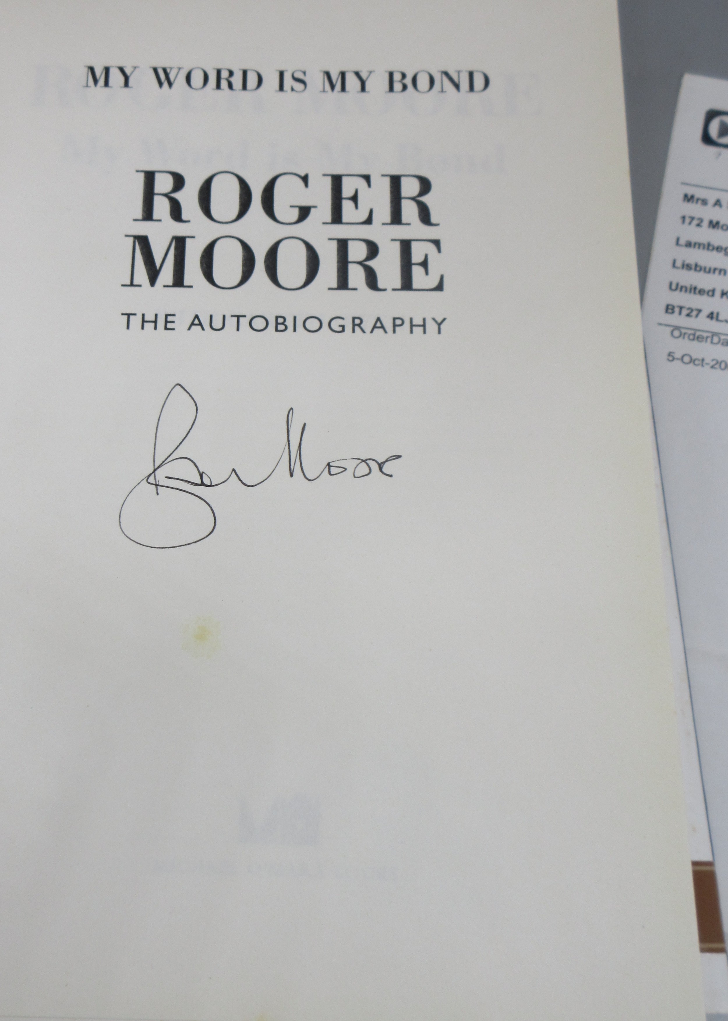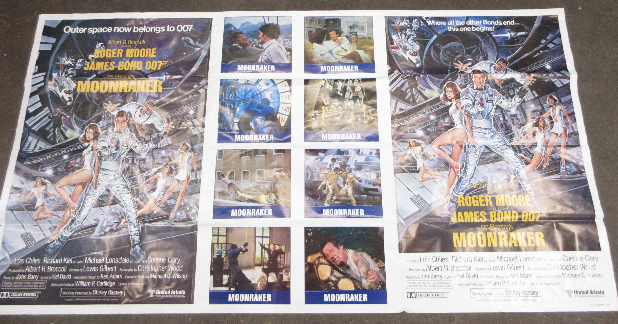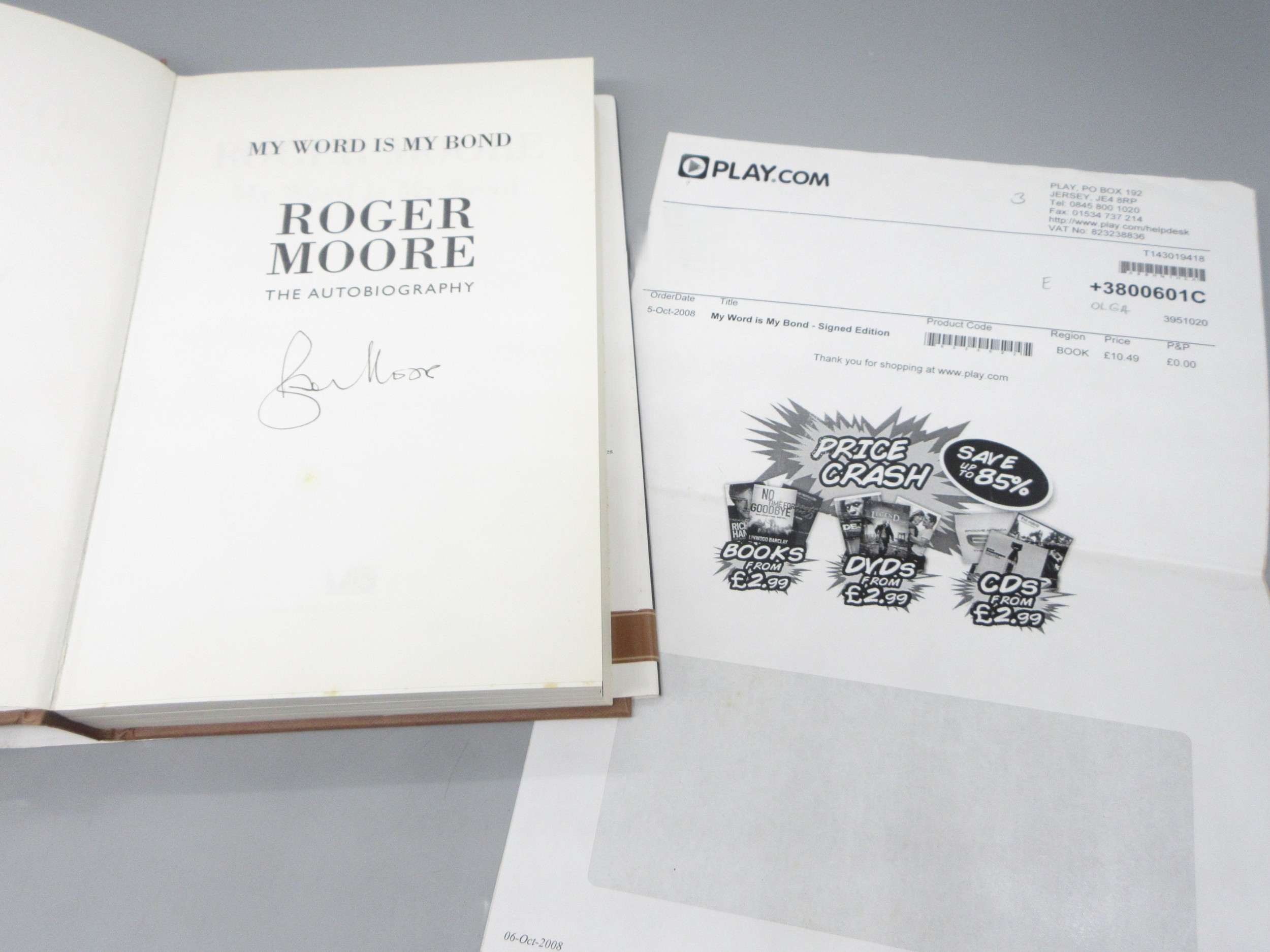 James Bond memorabilia to incl. signed Roger Moore 'My Word is my Bond' book, large Moonraker film poster and two 'The Man with the Golden gun' posters