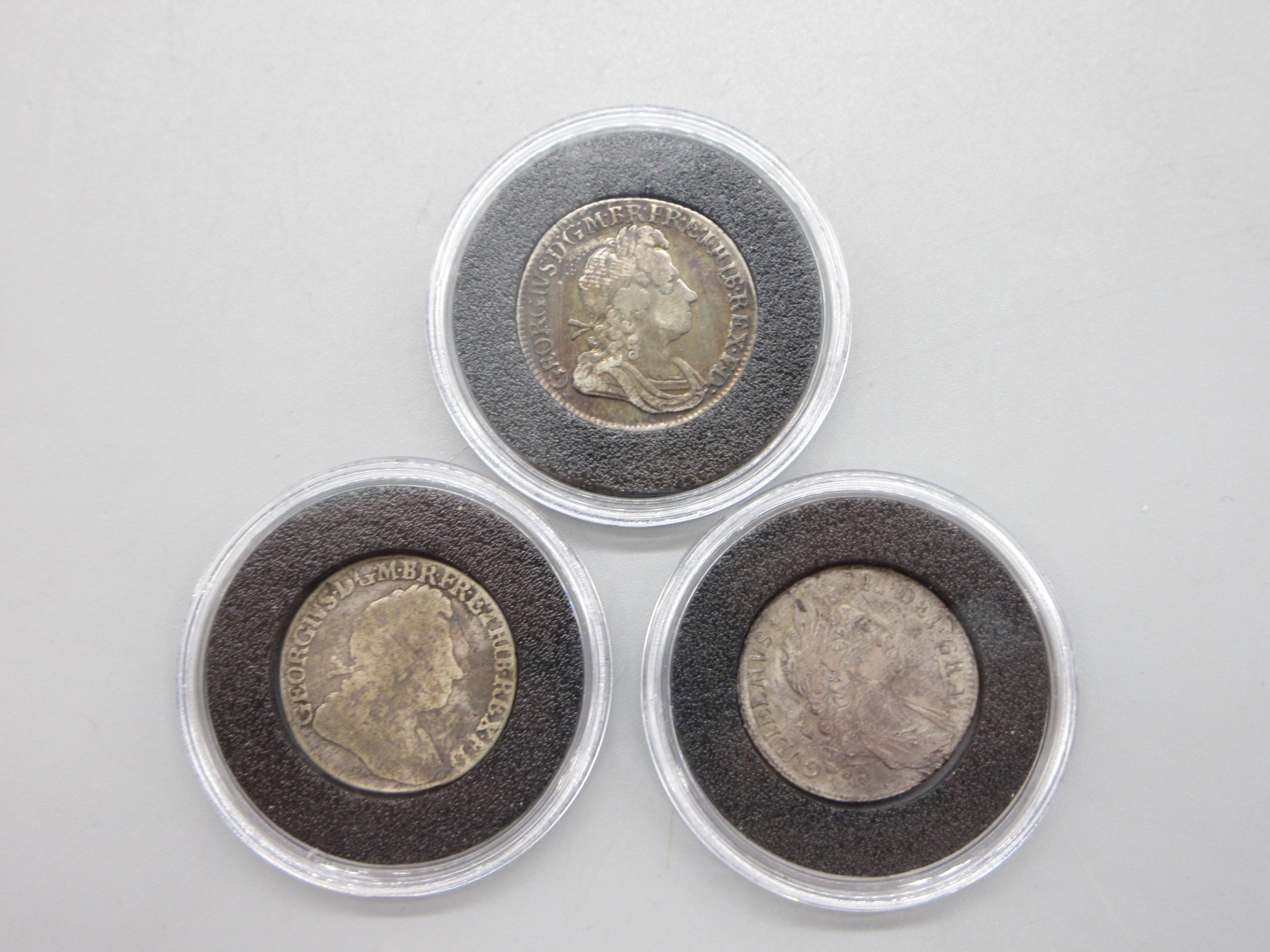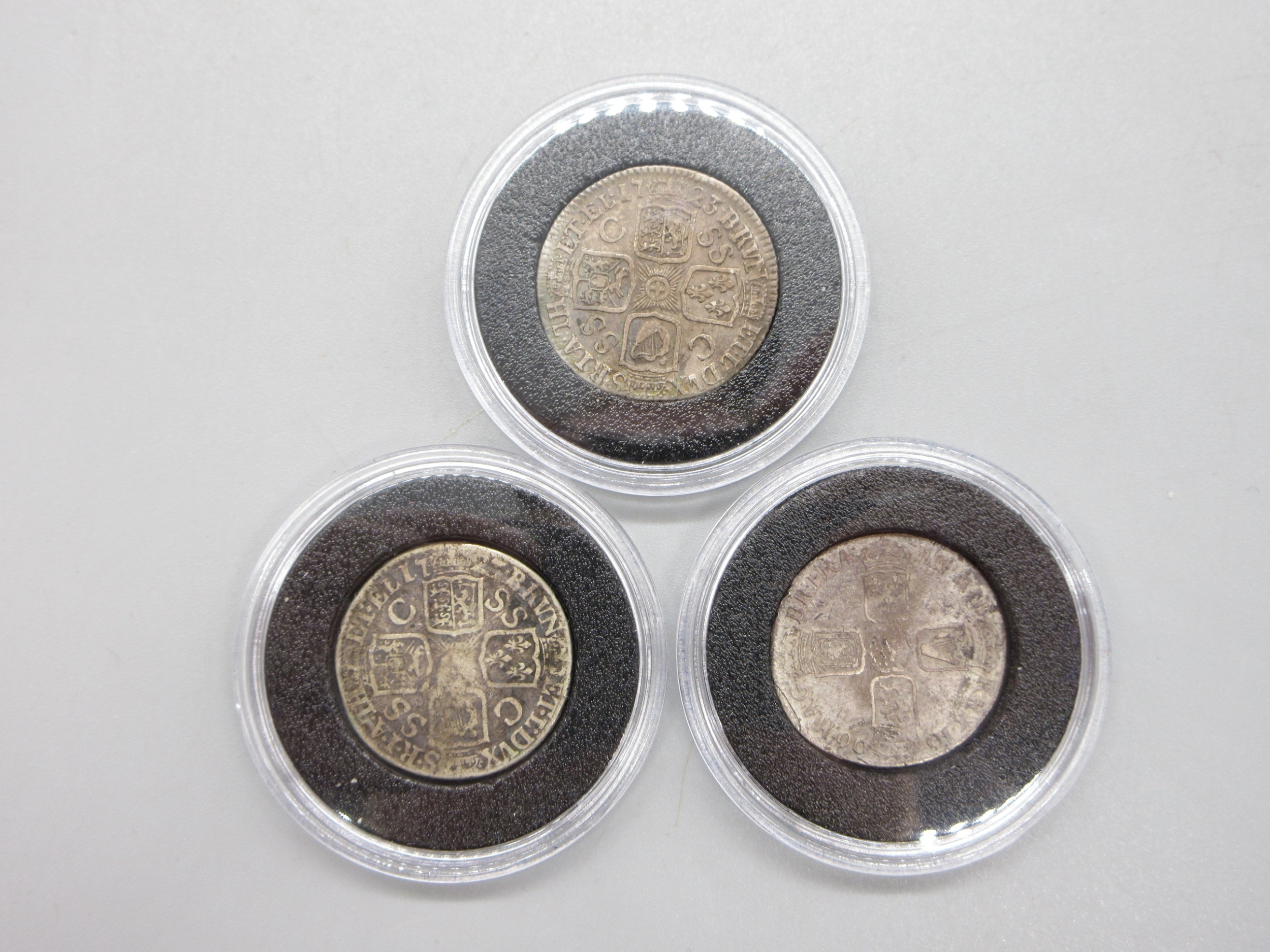 William III 1696 Shilling and 2 George I 1723 SS C Shillings
