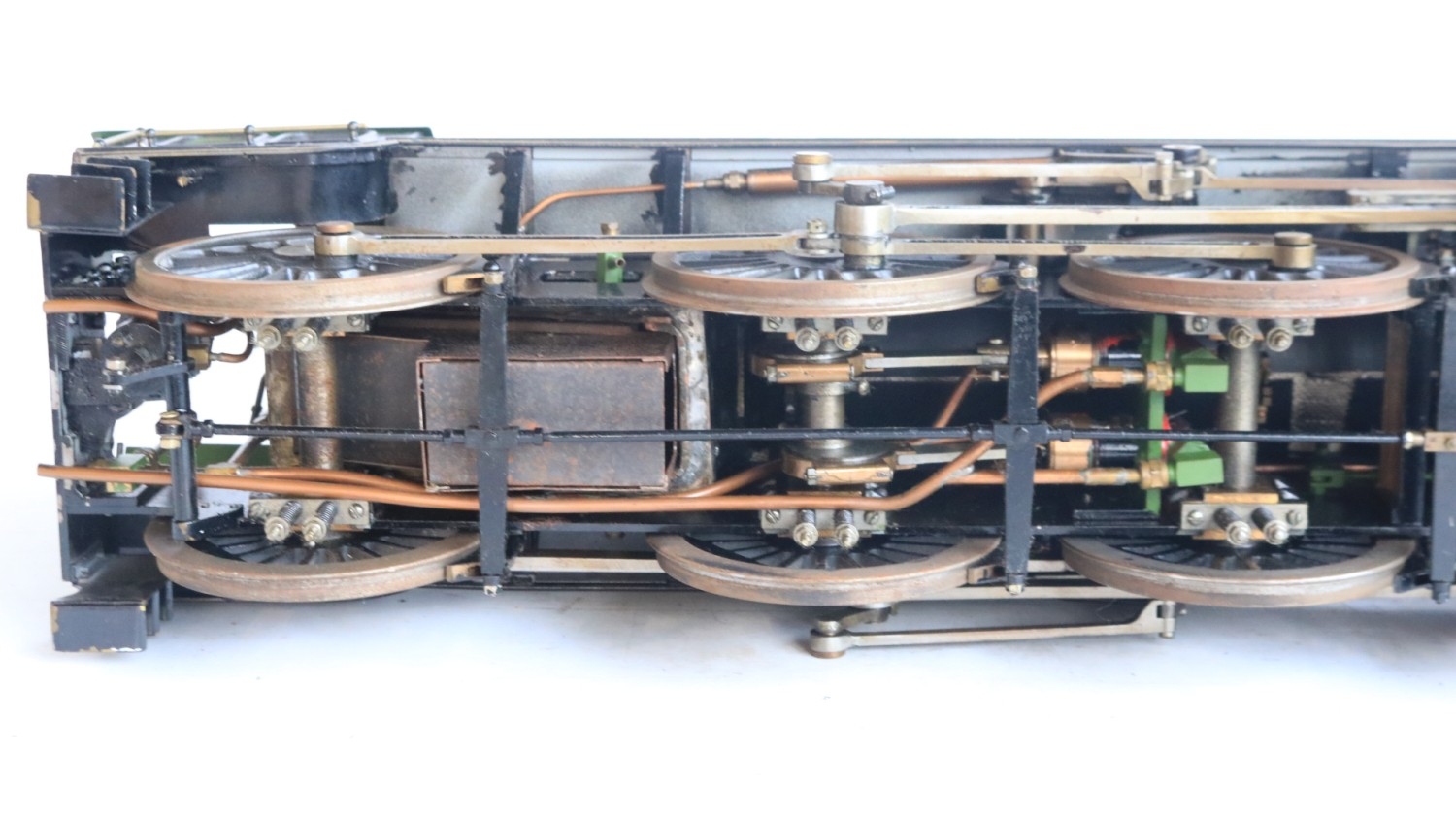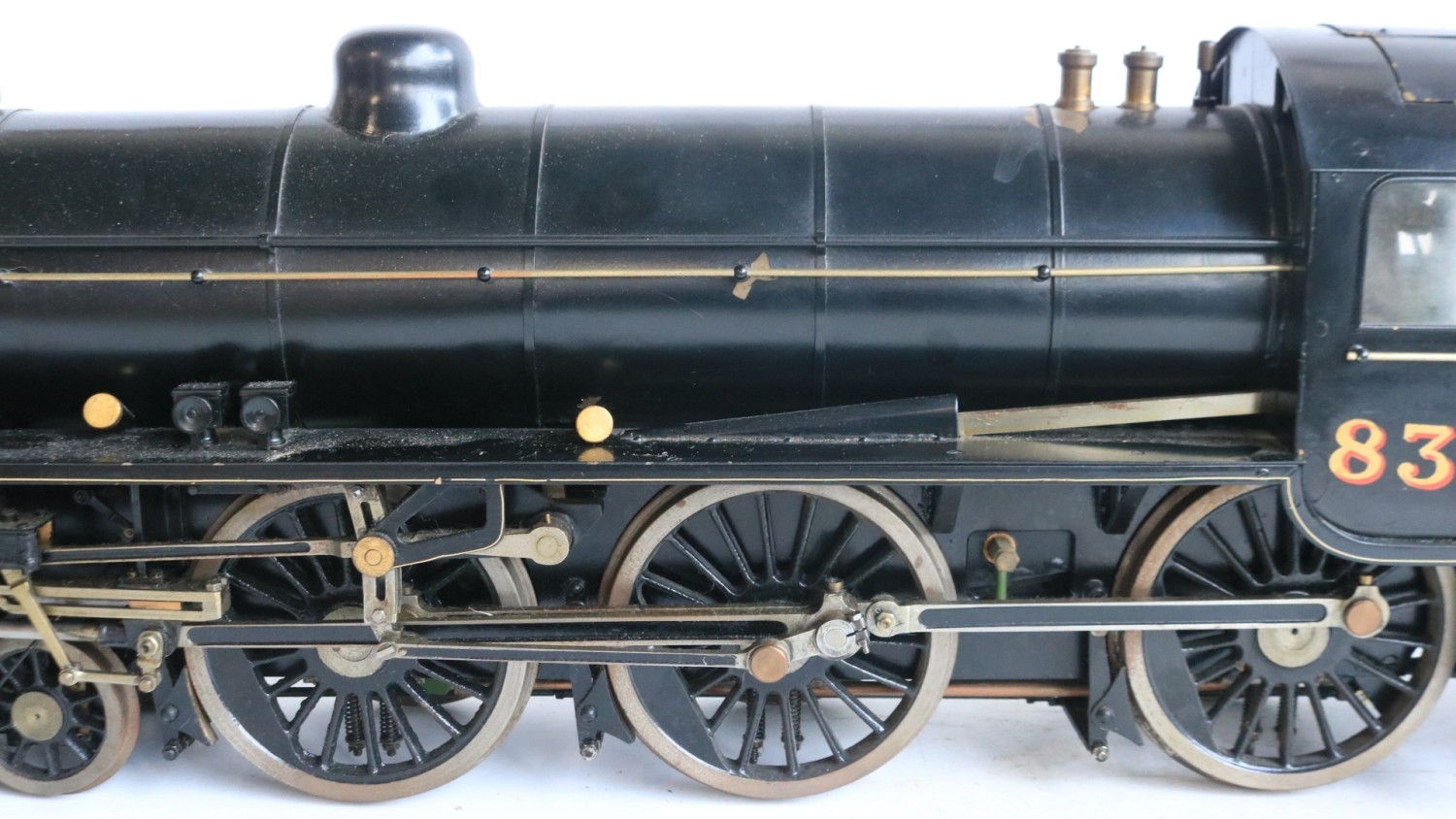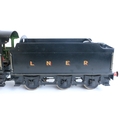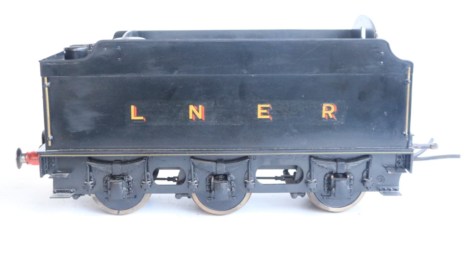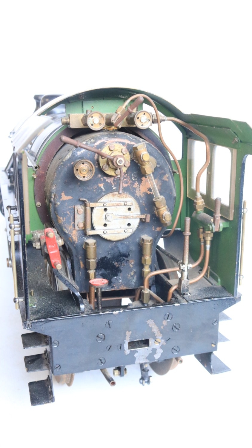 Large scale all metal 3.5" gauge live steam LNER Thompson Class B1 4-6-0 8301 'Springbok' locomotive model and tender, with working suspension and sprung buffers (please note left side tender rear buffer jammed in compressed position and some loose parts on model), no boiler certificate and would likely need a comprehensive service should any potential buyer wish to bring her back to life, the model would however make for a stunning static display as is, some fairly extensive paint chipping and please note front bogey loose but with fixing nut and some other loose parts (please refer to photos), overall dimensions approx length 119cm, width 17.5cm, height 26cm, complete with green painted wood base