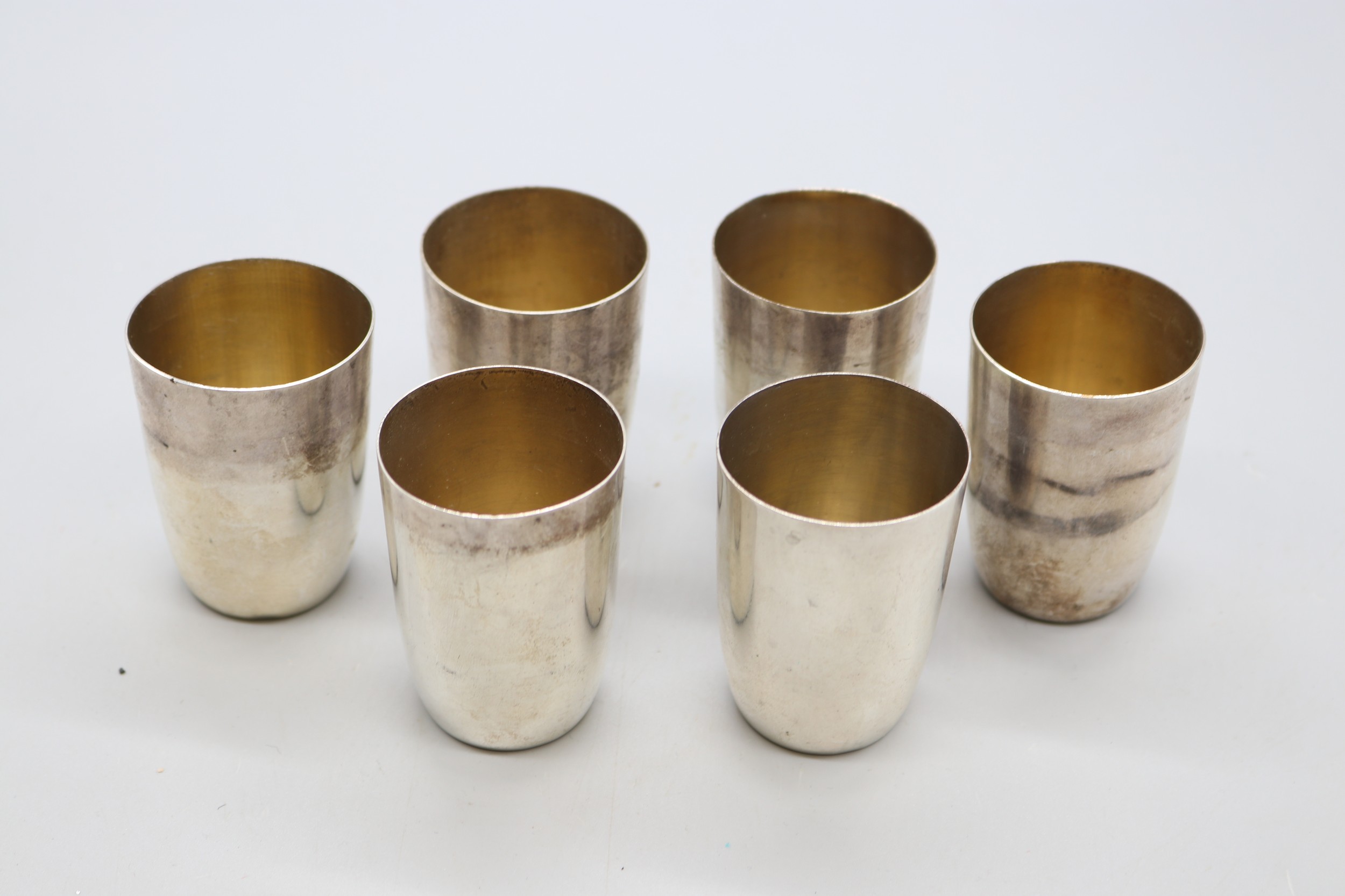 Set of 6 silver hallmarked E V Sheffield 1946 shot beakers (gross 6.9ozt)