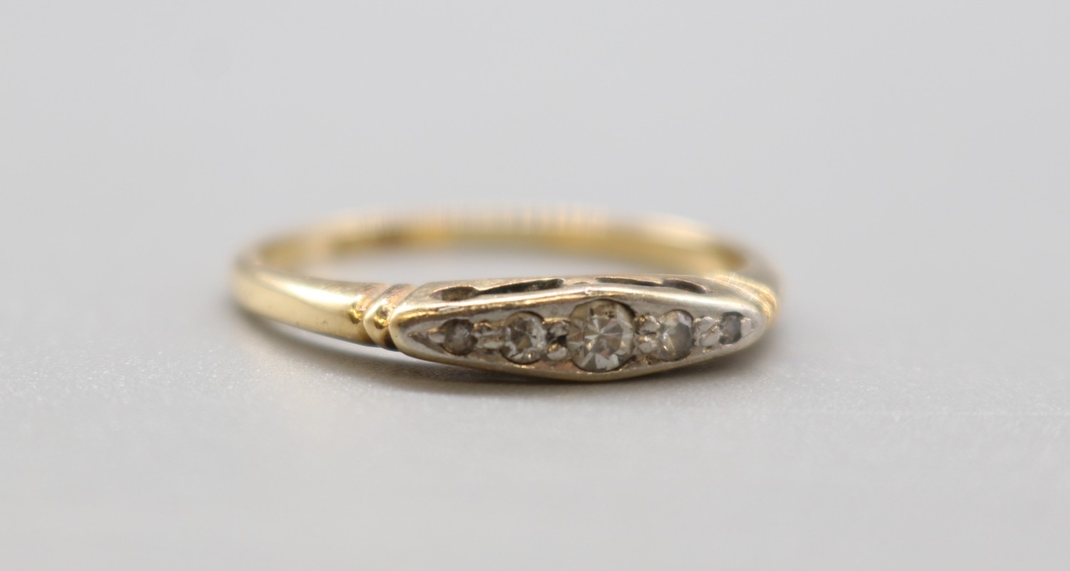 18ct five stone diamond ring, size N 1/2 (2.2g)