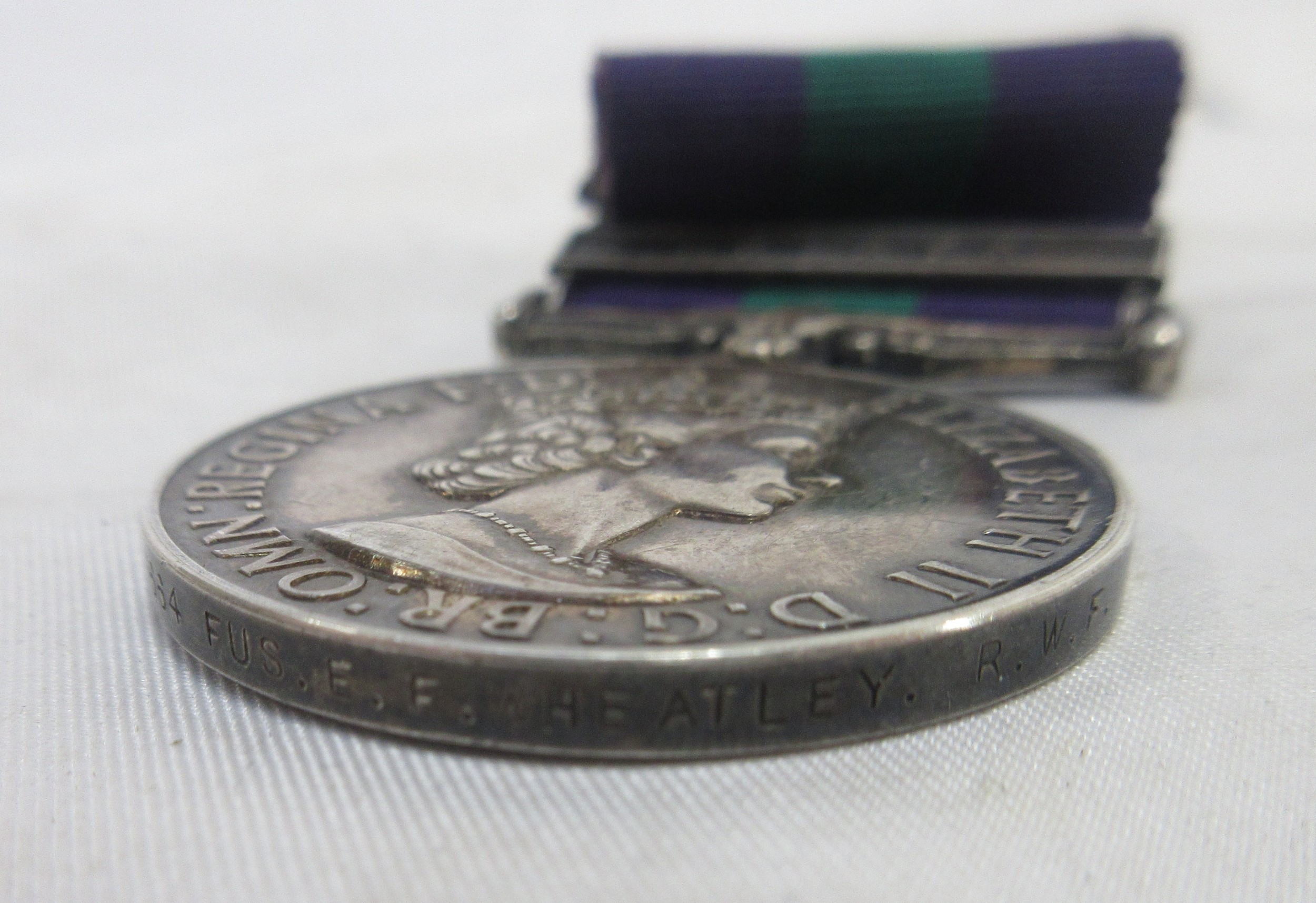 General Service Medal (Elizabeth II) with Malaya clasp To. 22929664 Fus. E. F. Wheatley. R.W.F