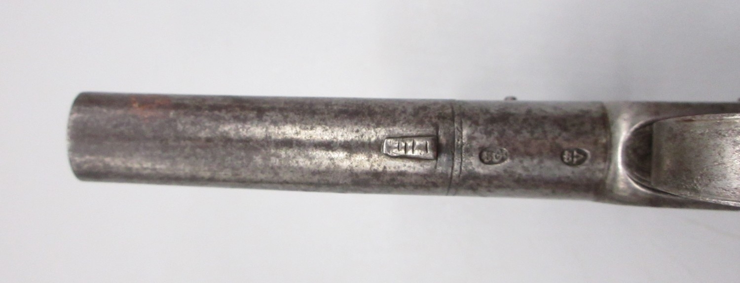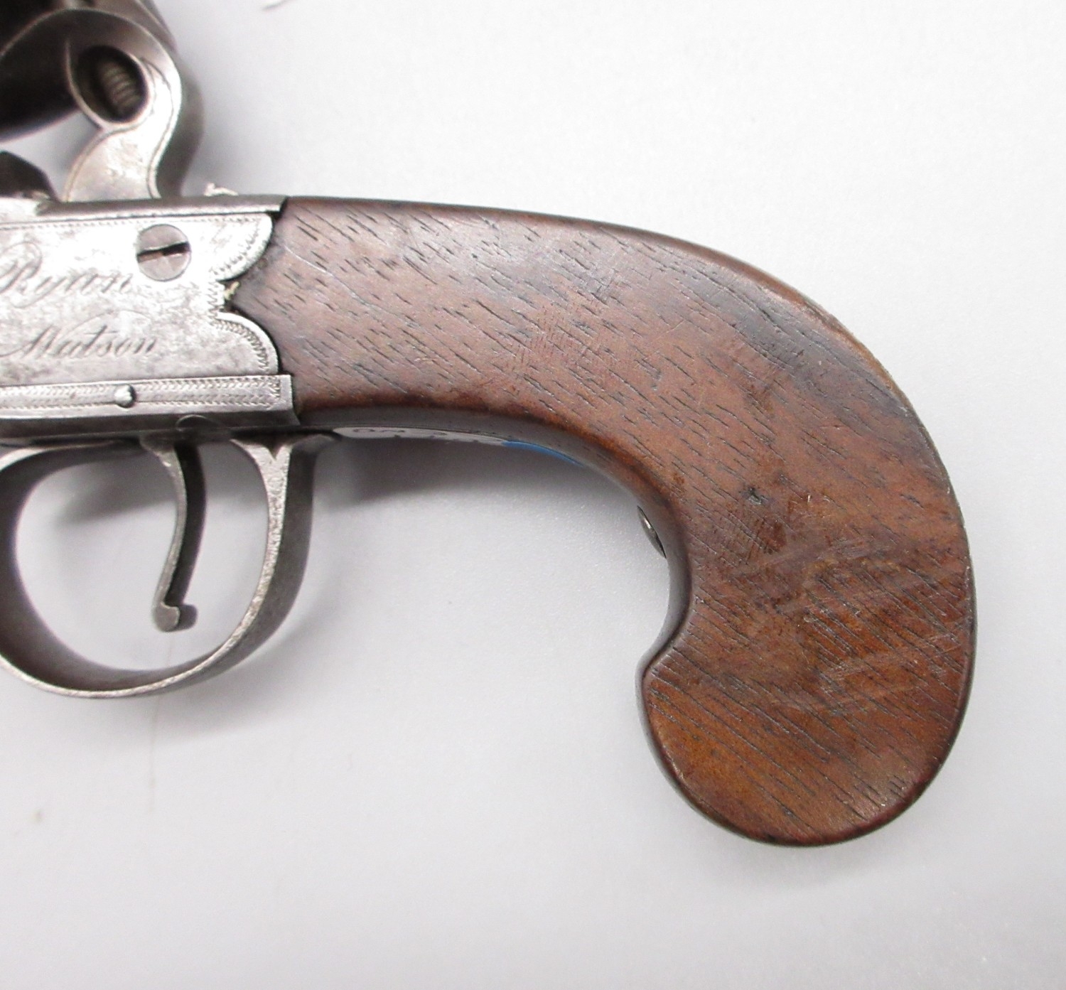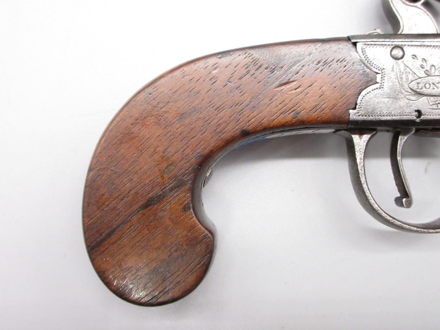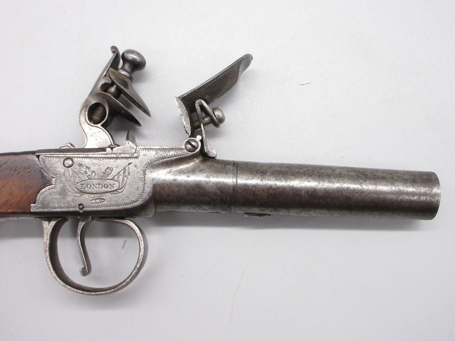 18th Century flintlock 54 bore pocket pistol by `Ryan & Watson London' 2.5" turn-off barrel, stamped proof marks, named lock, 18cm overall.
